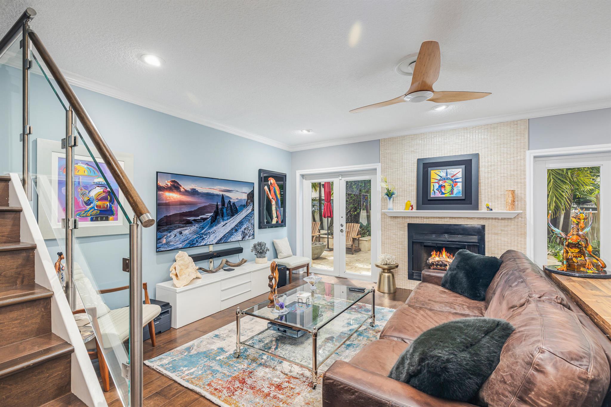 Truly One of a Kind -- Steps from Las Olas! Tucked away in an exclusive enclave of just 14 townhomes, this hidden gem offers arare blend of privacy and proximity, a serene retreat steps from the vibrant energy of Las Olas Boulevard.This residence stands apart as the only home in the community featuring an expansiveprivate backyard, creating a true outdoor sanctuary in the heart of Fort Lauderdale. Aversatile detached 12' x 6' air-conditioned flex room enhances the space and is perfectas an office, art studio, or entertaining lounge. Its window design makes it ideal forhosting gatherings and al-fresco dining Inside, discover sophisticated style and thoughtful craftsmanship: Mirage hardwoodfloors, crown molding, and plantation shutters