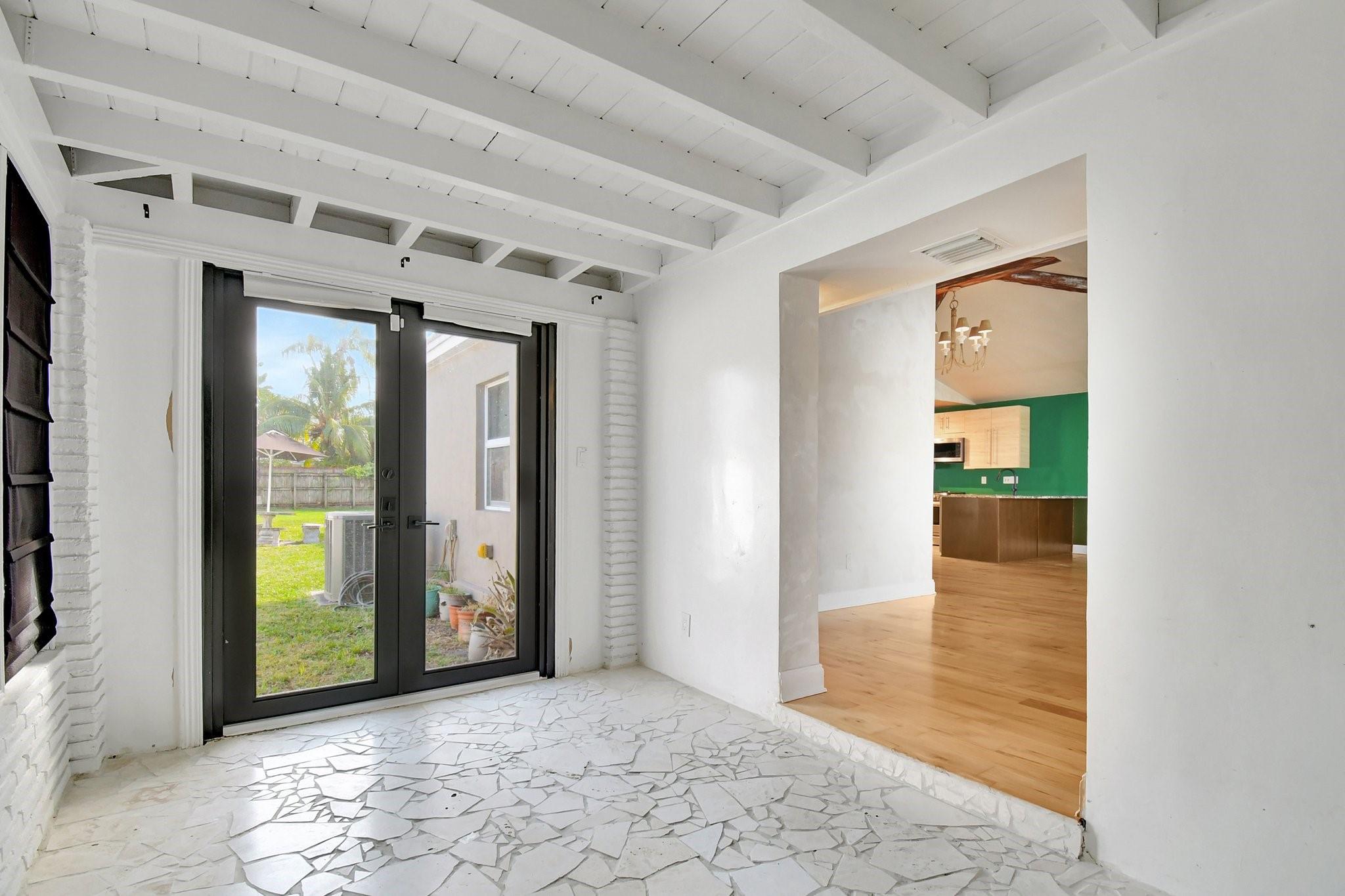 Welcome to this beautiful Open Concept 3/2+Bonus Room Split Floor plan Home located East of US1 in Hollywood Lakes area. This home has all the upgrades HIGH VAULTED CEILINGS w/Wood Beams, an open concept kitchen great for entertaining, granite countertops, GAS Stove, Viking Fridge, Birch Wood floors, Stone & Porcelain tiles, tankless water heater, XL Primary bedroom w/walk-in closet, Impact Windows & Impact French Doors & a Tile Roof. Enjoy SFL Living Dining & BBQ under the covered patio on oversized 8,200 SqFt LOT w/NEW WHITE PVC Fenced in backyard w/plenty of room to build your dream pool! Bike to famous Hollywood Beach w/its 2.5 Mile long Broadwalk, Minutes to private, public or Charter Schools, Downtown Hollywood, Gulfstream Park, Aventura Mall, Restaurants, MD offices, Hospitals...