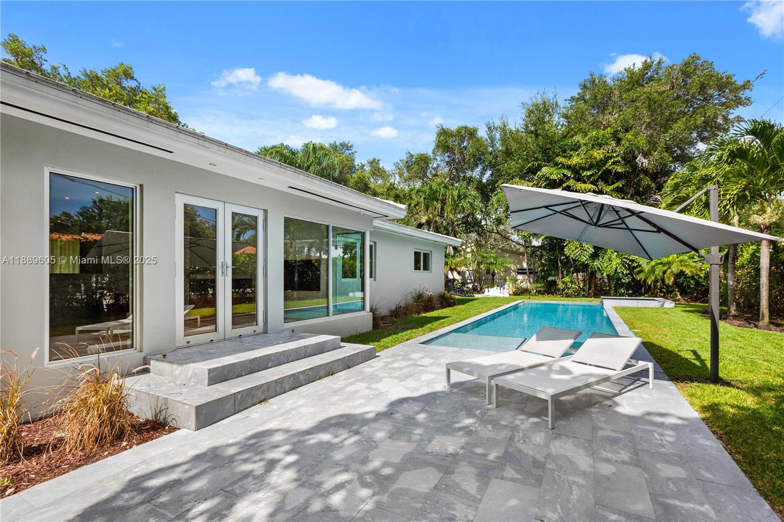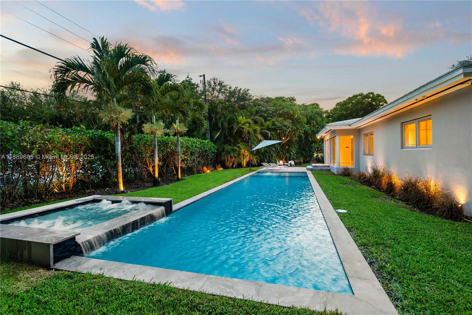 Beautifully updated & thoughtfully redesigned, this 3-bedroom, 2-bath home sits on a 14,000 sq ft corner lot in one of Coral Gables’ most desirable neighborhoods. Blending classic charm with modern sophistication, the home features refinished hardwood floors, a chef’s kitchen, designer European fixtures, and a bright, open-concept layout. Designed by a leading smart home, AV, and lighting specialist, it offers seamless integration of comfort, convenience, and security. Step outside to enjoy a stunning pool and hot tub, outdoor shower, and a lush, private yard ideal for entertaining. With impact windows and doors, European-style bathrooms, high-end finishes, and a two-car garage, this move-in-ready residence is the perfect blend of style and substance, smart, stylish, and built to impress.