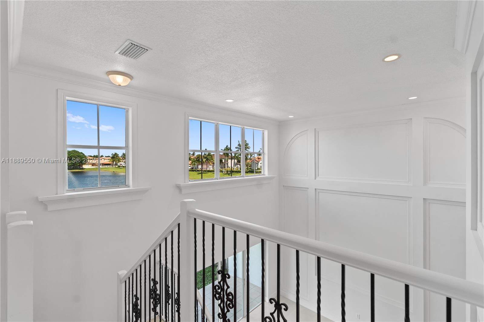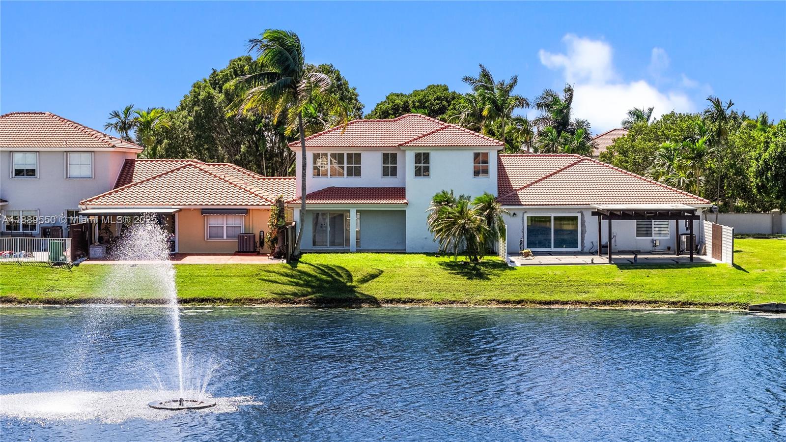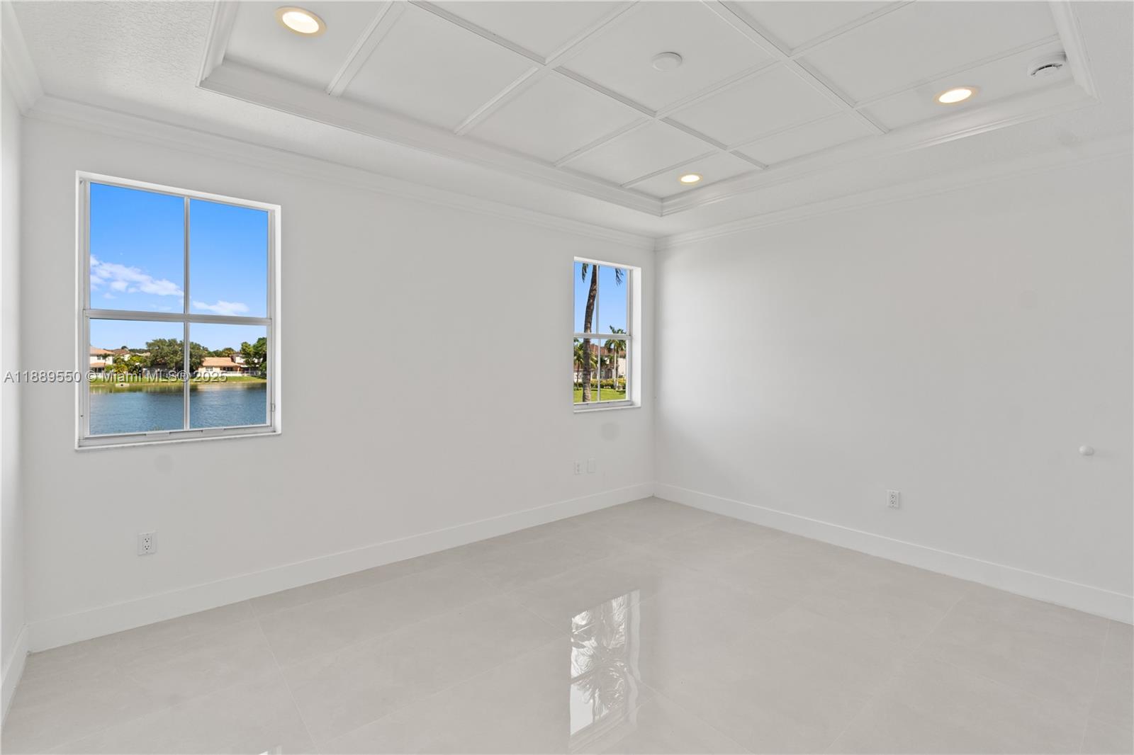 Welcome to this renovated lakefront residence in the gated community of Melrose Point at Park Lakes. This 4-bed, 3-bath home features soaring ceilings, expansive windows, and panoramic lake views. The open layout highlights a new designer kitchen with quartz counters, sleek cabinetry, and stainless steel appliances. Bathrooms include modern finishes, frameless glass showers, and custom vanities. A first-floor bedroom with full bath is ideal for guests. Upstairs, the primary suite offers a spa-inspired bath and serene water views. Additional features include porcelain tile flooring, wood accents, and a 2-car garage with laundry area. Private patio overlooking the lake and fountain — perfect for entertaining or sunsets. Community amenities include pool, recreation facilities, and security.