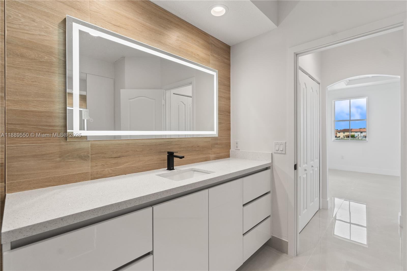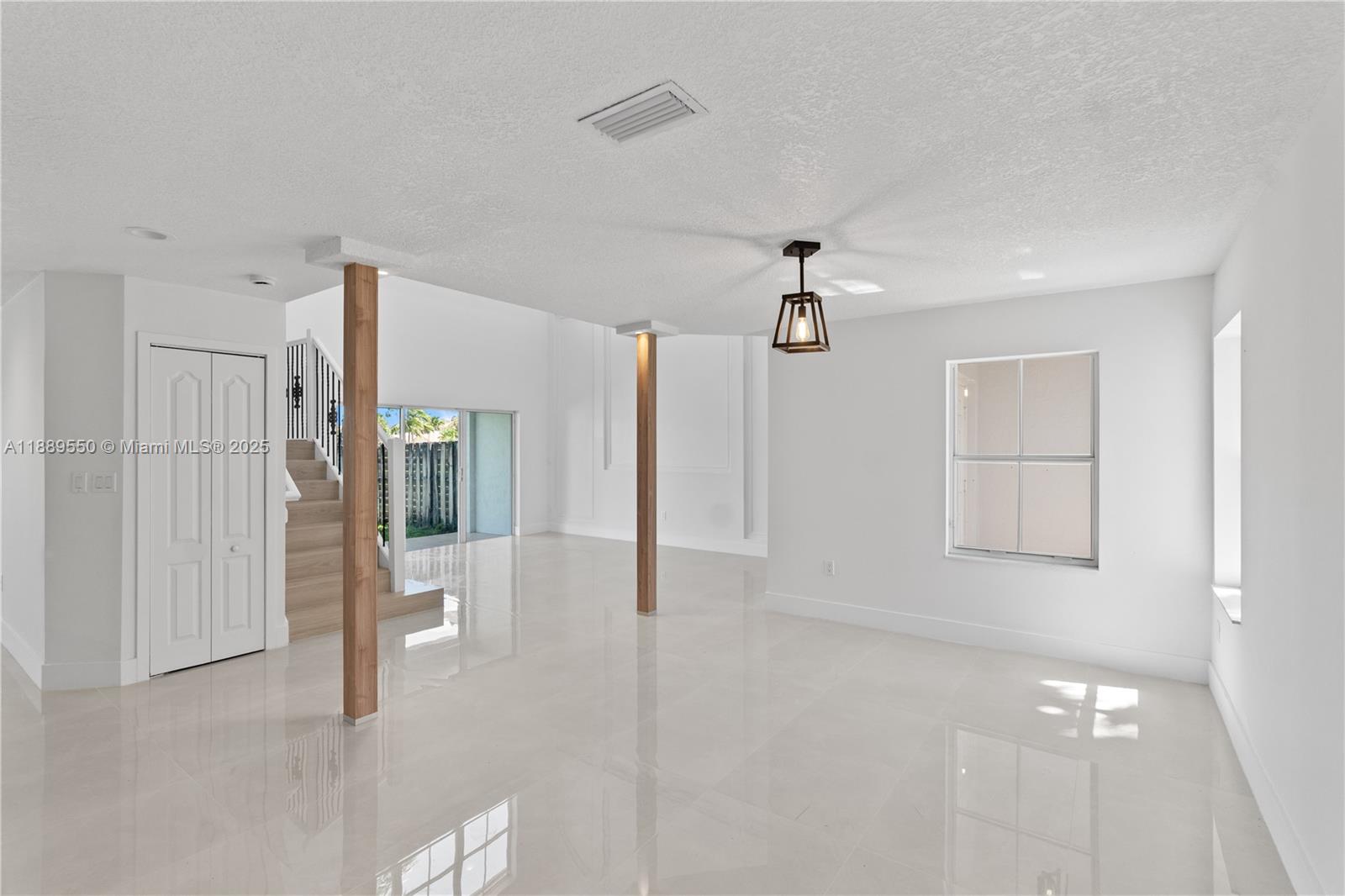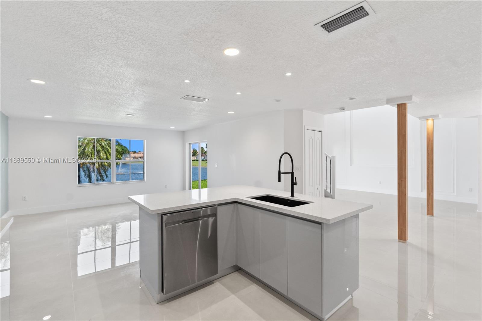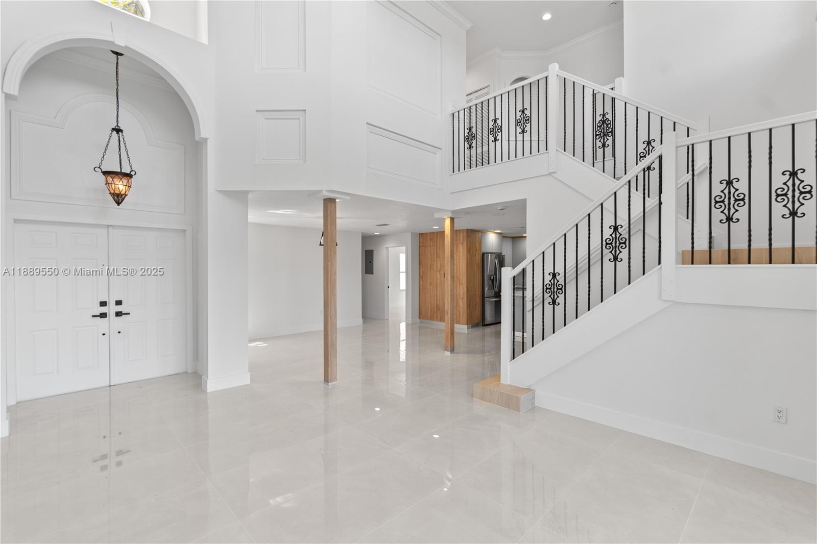 Welcome to this renovated lakefront residence in the gated community of Melrose Point at Park Lakes. This 4-bed, 3-bath home features soaring ceilings, expansive windows, and panoramic lake views. The open layout highlights a new designer kitchen with quartz counters, sleek cabinetry, and stainless steel appliances. Bathrooms include modern finishes, frameless glass showers, and custom vanities. A first-floor bedroom with full bath is ideal for guests. Upstairs, the primary suite offers a spa-inspired bath and serene water views. Additional features include porcelain tile flooring, wood accents, and a 2-car garage with laundry area. Private patio overlooking the lake and fountain — perfect for entertaining or sunsets. Community amenities include pool, recreation facilities, and security.