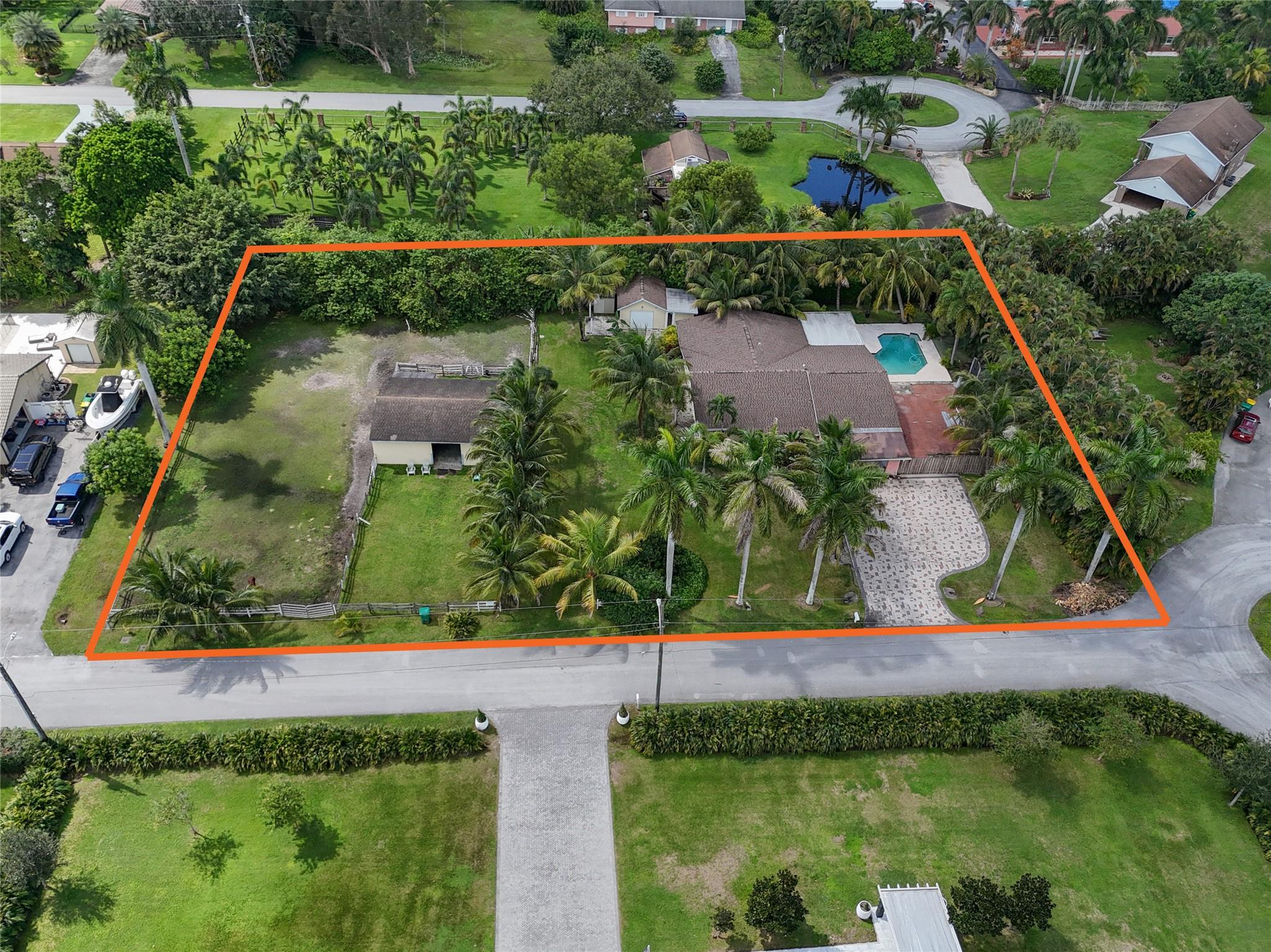 Welcome to Plantation Acres! This updated 3 bed, 3 bath home sits on a 35,279 SF lot and offers modern finishes with resort-style outdoor living. Inside you’ll find porcelain tile throughout, a newer kitchen with brand-new stainless steel appliances, impact windows/doors, and a new roof (2022). The backyard is built for entertaining with pool, outdoor shower, and full summer kitchen. Horse enthusiasts will love the stall and paddock. Additional features include a 2-car garage and stamped asphalt driveway with room for 5+ cars with 4" PVC conduit under it for additional customization. An additional detached 1.5 car garage is enabled to use as office or workshop with it's own electrical panel and AC unit. Conveniently located near top schools, shopping, dining, and highways.