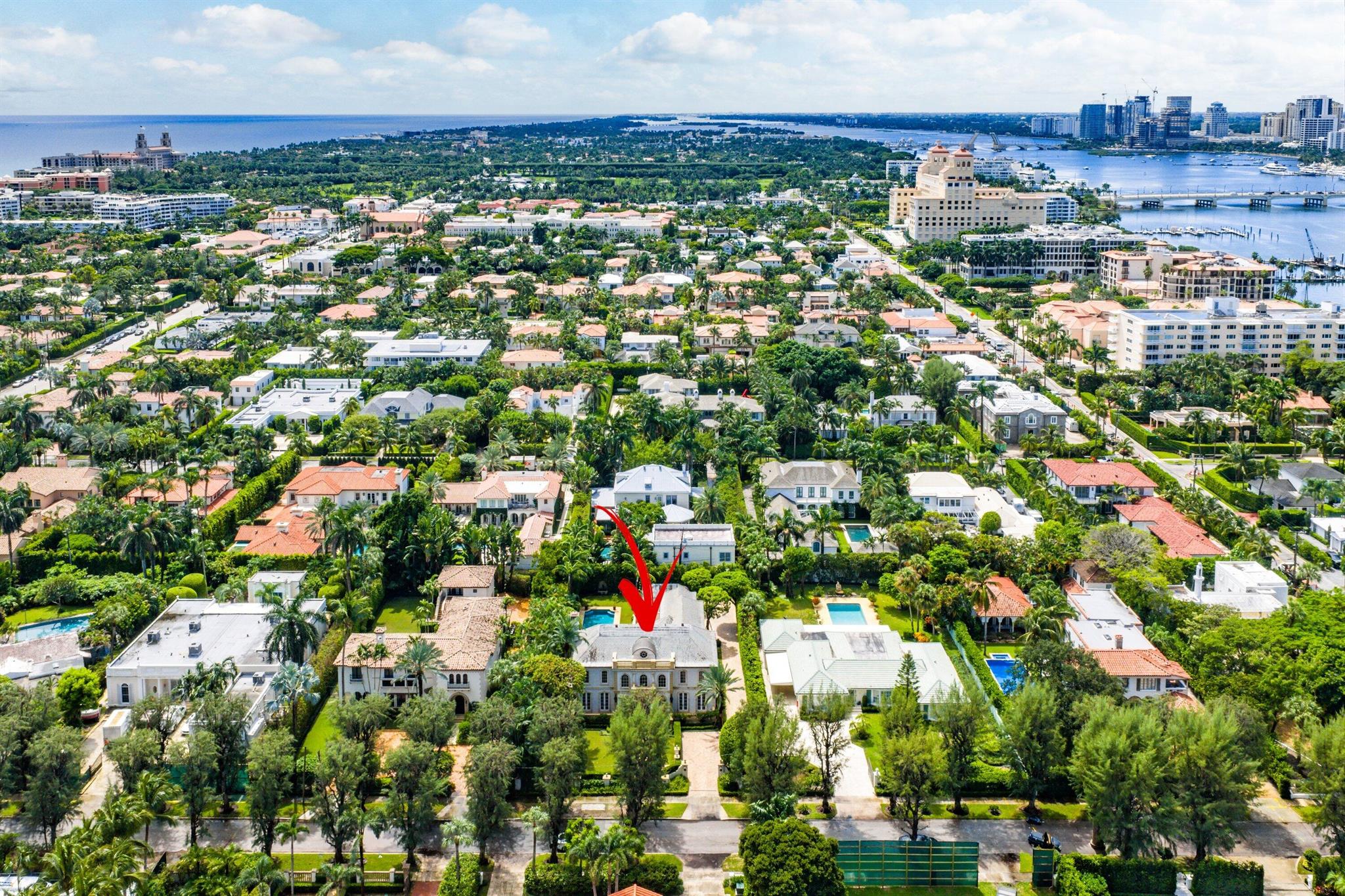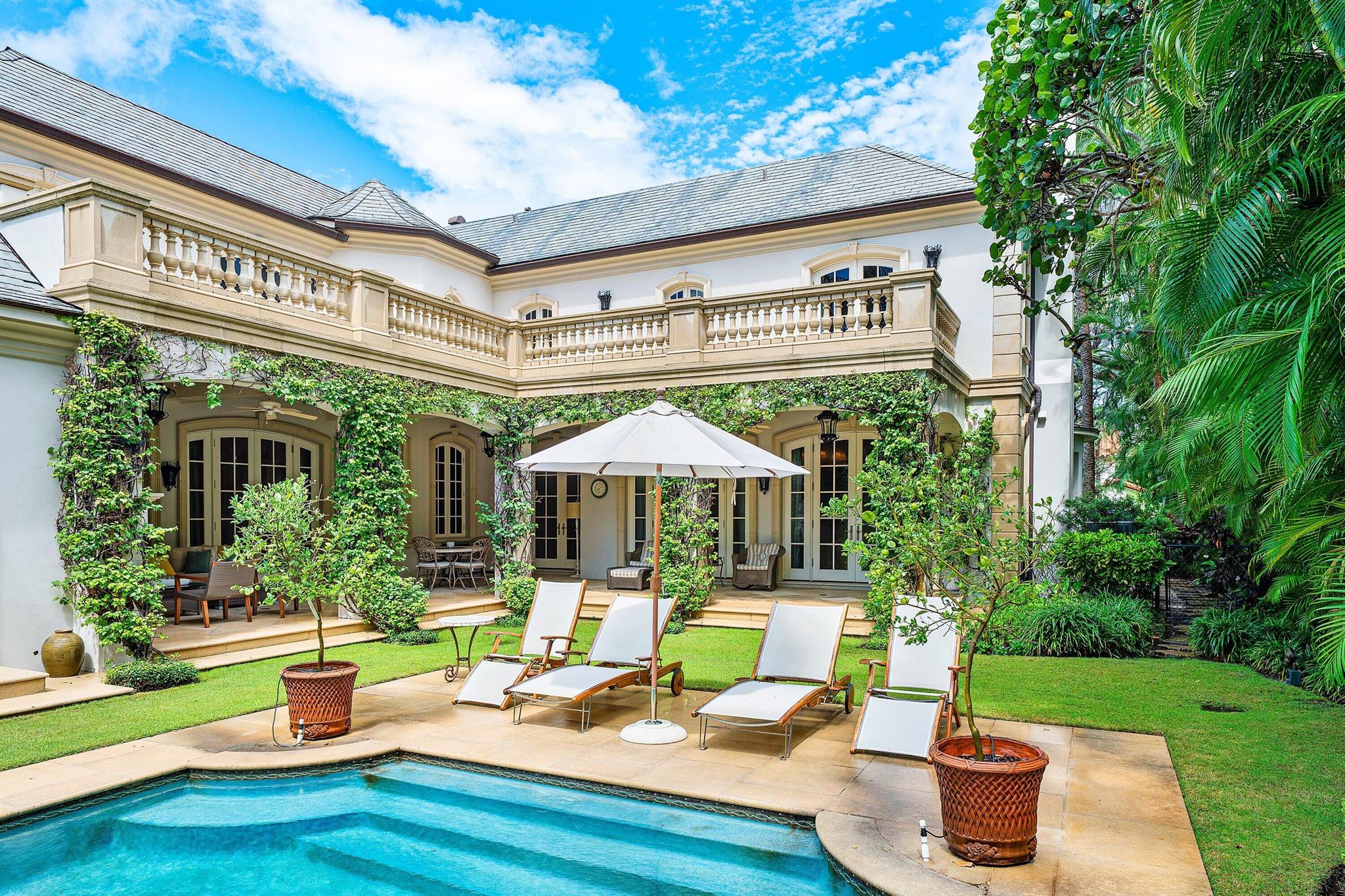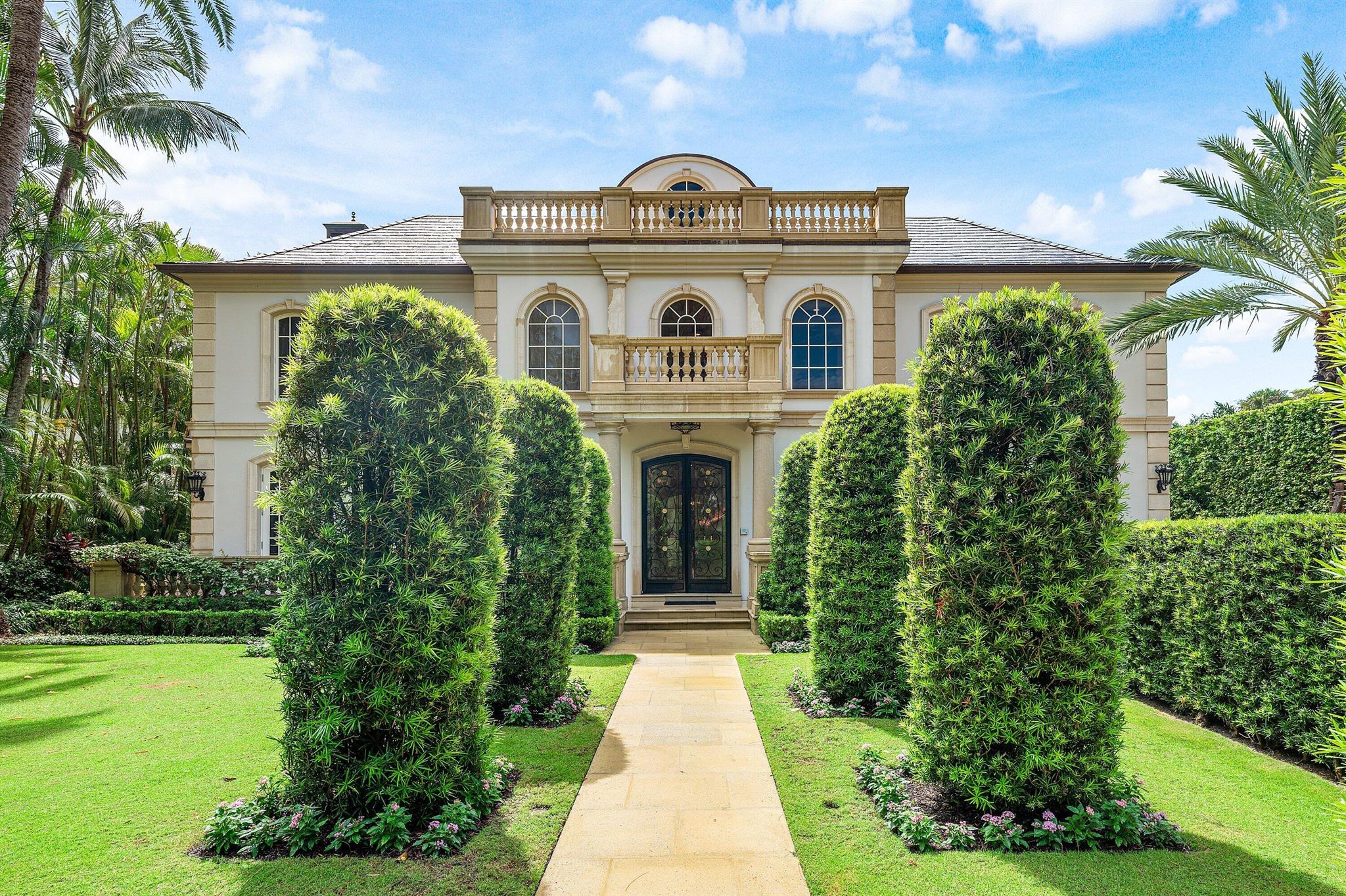 This extraordinary estate at 242 Wells Road combines classic French Provincial architecture with timeless elegance, offering an unparalleled lifestyle on one of Palm Beach's most prestigious streets. This magnificent 7,460 total sq. ft. French Provincial masterpiece is nestled on a sprawling 19,500 sq. ft. lot in the heart of Palm Beach. This stately manor, with its steep-pitched slate roof, symmetrical facade, and stone surrounds, exudes Old World charm and impeccable craftsmanship. The home's architectural grandeur is enhanced by graceful balustrades and meticulously sculptured landscaping, creating a serene and sophisticated retreat. Step inside to find luxurious interiors adorned with gleaming hardwood and marble floors
