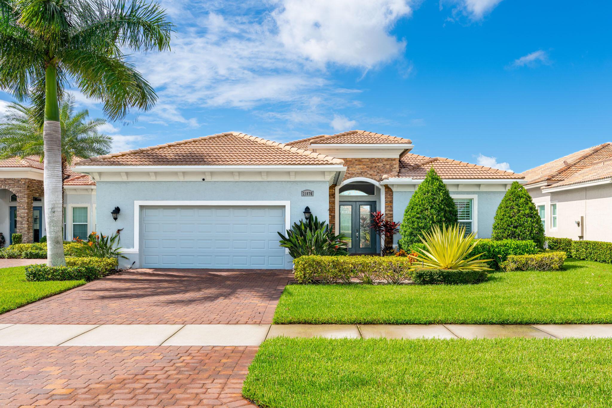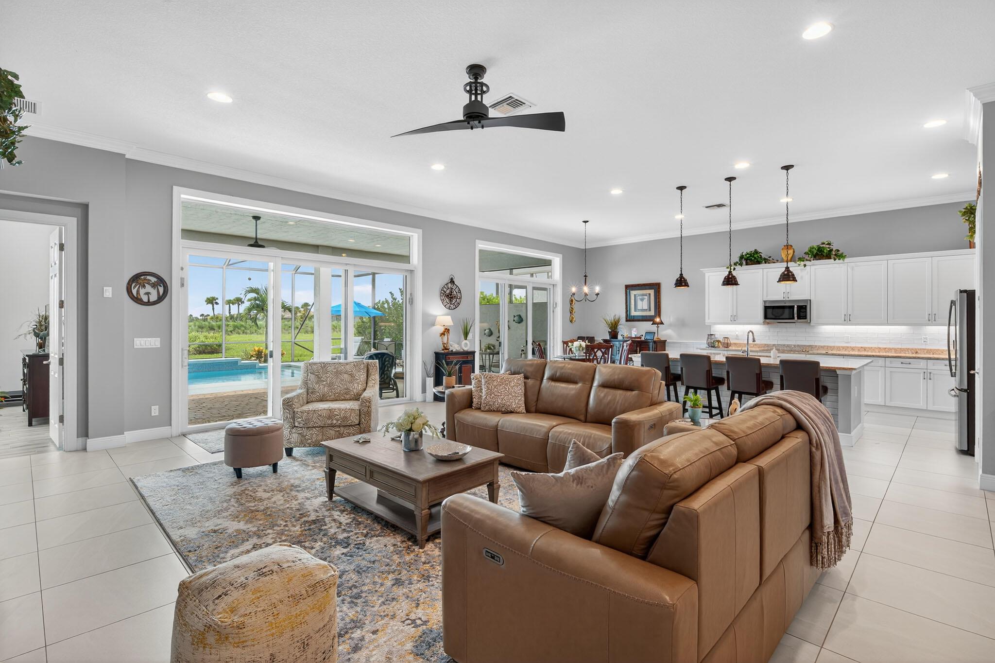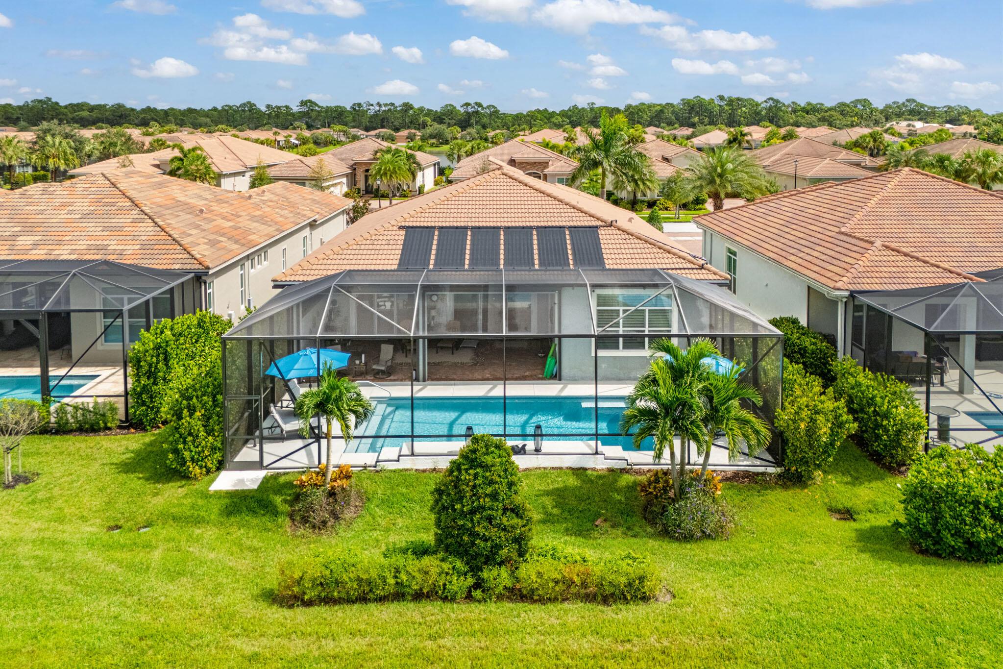Enjoy luxury living in this beautifully upgraded 3,000sft home, located in prestigious PGA Verano golf community. Step inside to discover a bright open floor plan fully tiled throughout, enhanced by crown molding and custom wall moldings in the dining room and den. Plantation shutters, upgraded fans, and designer light fixtures add a refined touch throughout the home. The spacious open-concept kitchen features a massive quartz island, sleek white cabinetry, wall oven, and stainless steel appliances--a chef's dream and an entertainer's delight. Enjoy outdoor living year-round with the screened-in pool with solar-heat and electric heat backup! The expansive lanai affords privacy complete with electric-powered storm screens for added weather protection. This property backs up to a wide canal