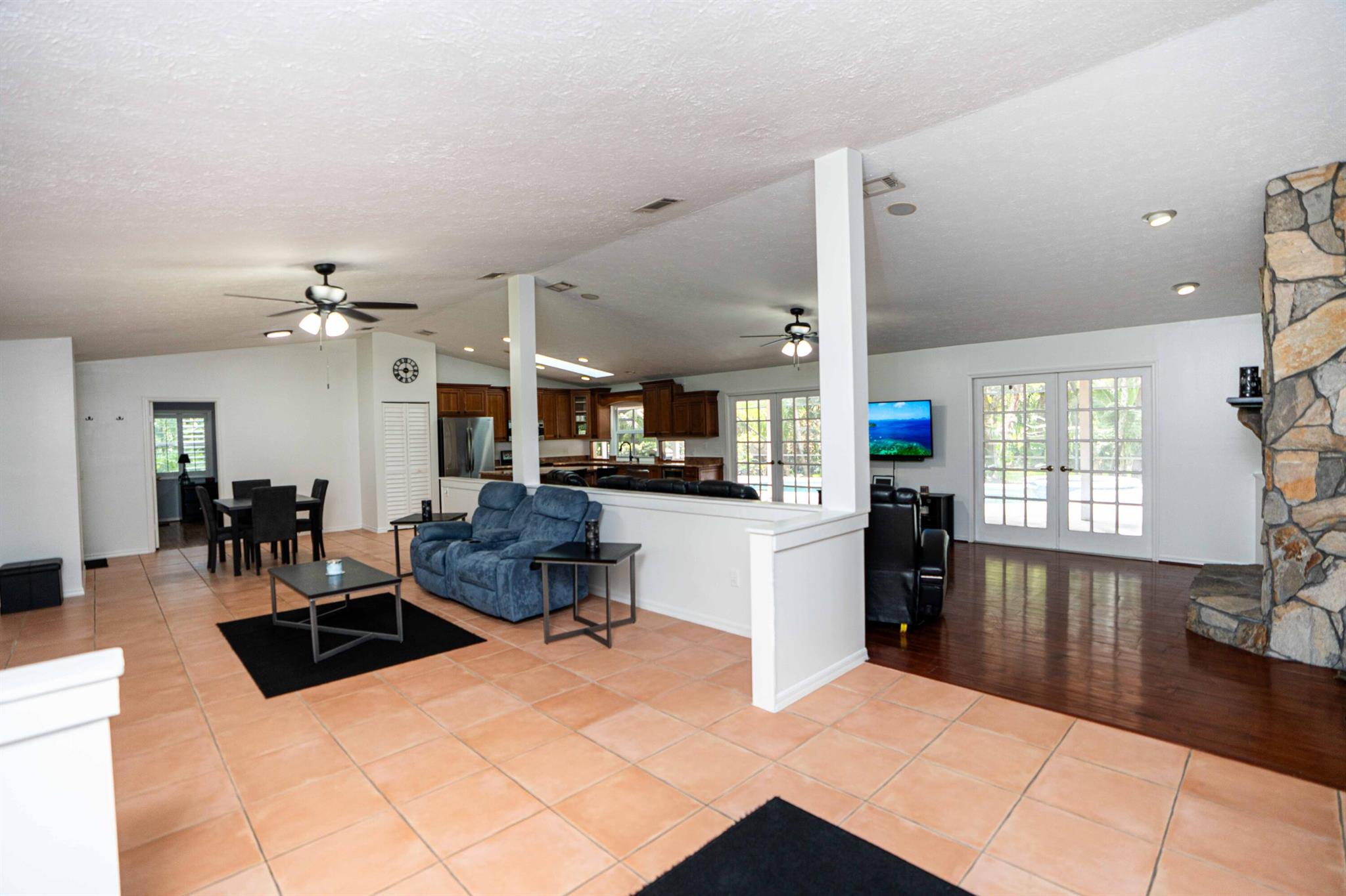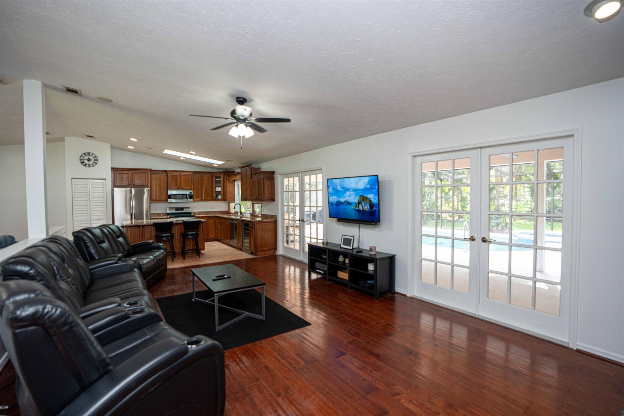 Welcome to this showstopping 3 bedroom, 2 bathroom, 2-car garage pool home in the highly desirable Coral Lakes community of Stuart. Nestled on over an acre of land, this home blends elegance, comfort, and Florida lifestyle living.From the moment you step inside, you'll be impressed by the open floor plan that draws your eye straight through the French doors to the sparkling pool and patio area. The updated interior boasts stylish finishes, warm natural light, and plenty of space to entertain. A cozy indoor fireplace adds charm, while the outdoor stone gazebo with its own working fireplace creates a perfect spot for relaxation on those cold winter nights. The expansive yard is adorned with fruit trees and plenty of room to relax or garden, giving you your own private oasis.
