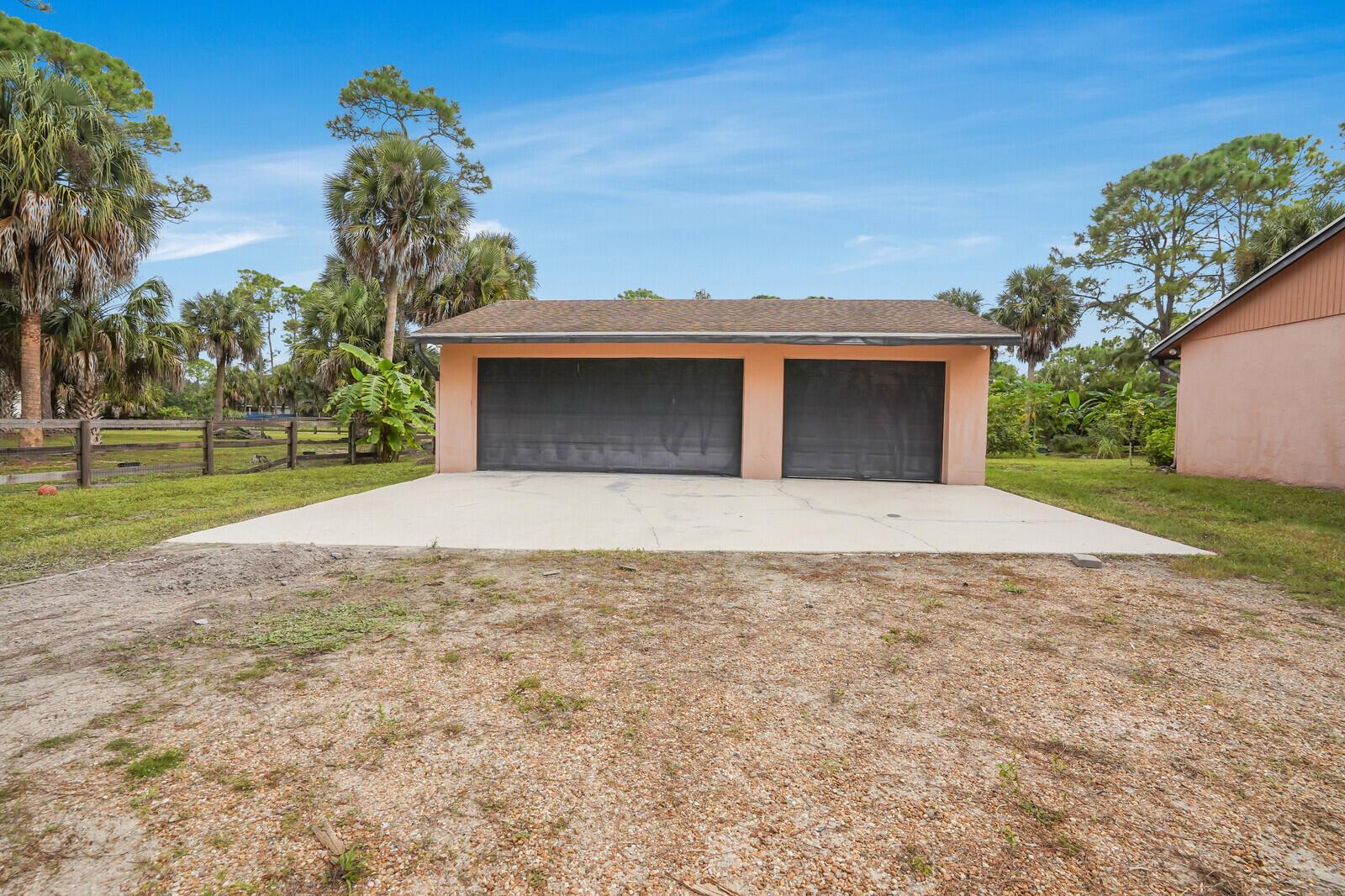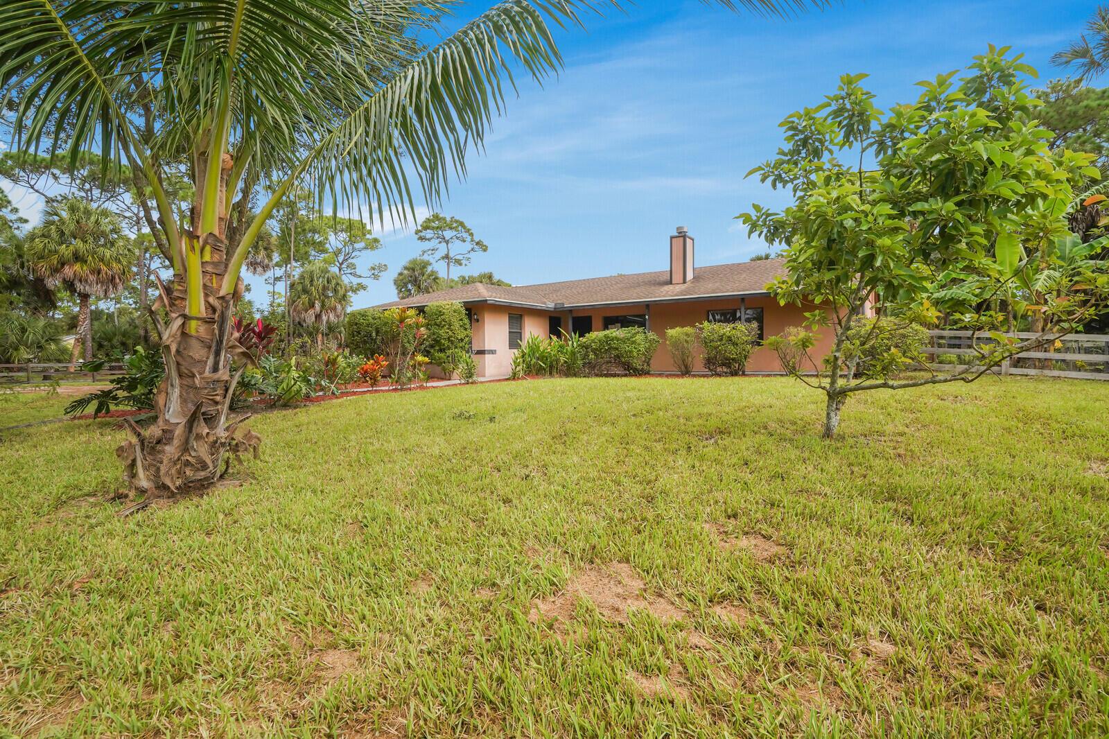 Welcome to your dream home in the heart of Loxahatchee! This spacious 4-bedroom, 3-bathroom ranch-style single-family home offers 1,803 sq ft of comfortable living space on a sprawling 2.82-acre fully fenced corner lot bordering a large canal--perfect for privacy, space, and serene views. The property features a versatile in-law suite complete with its own kitchenette and separate entrance, ideal for guest, family or even rental potential. A large 3 car DETACHED GARAGE/WORKSHOP provides ample space for hobbies, vehicles, or a home business. Equestrians and hobby farmers will love the large 4-STALL BARN and tack room, while the lush yard is enhanced with old-growth landscaping and mature fruit trees, creating a peaceful, park-like setting.