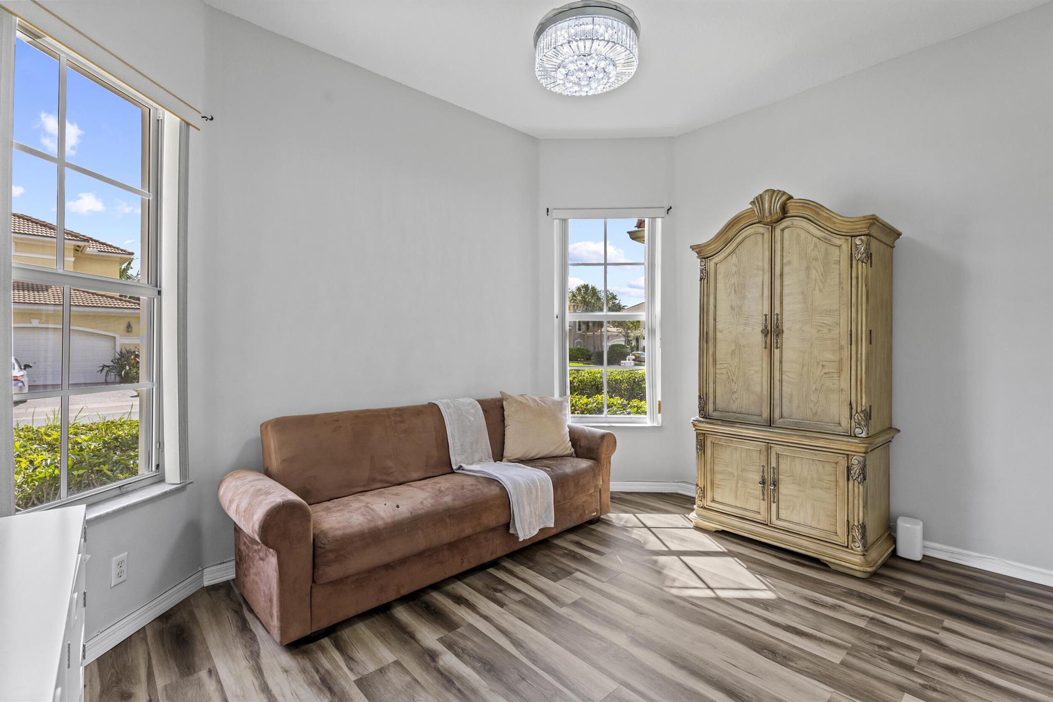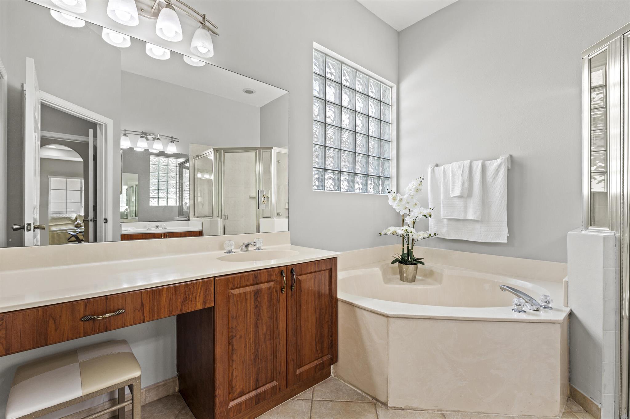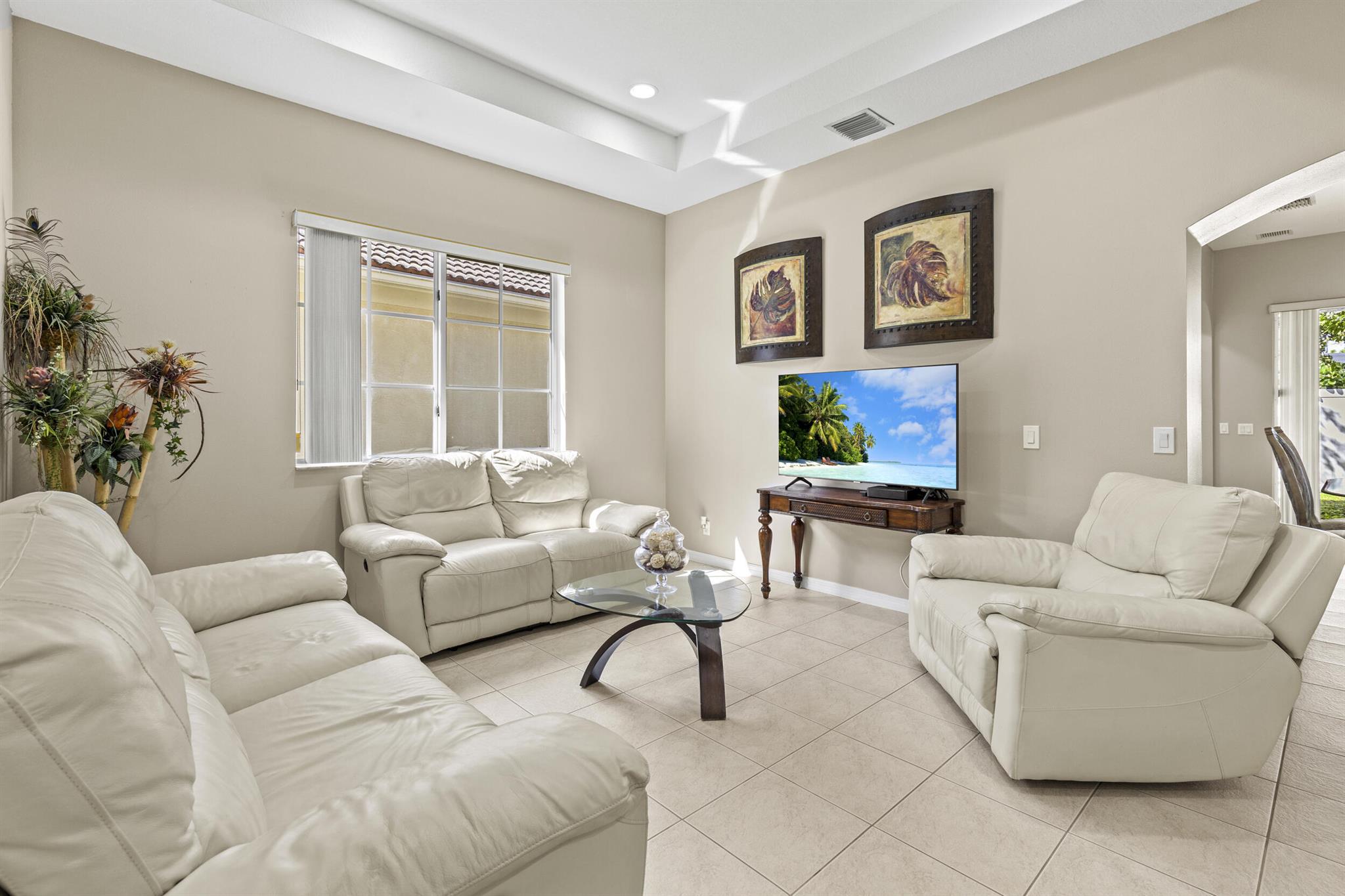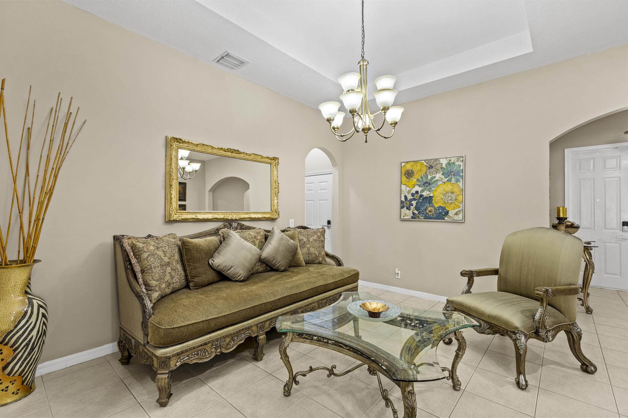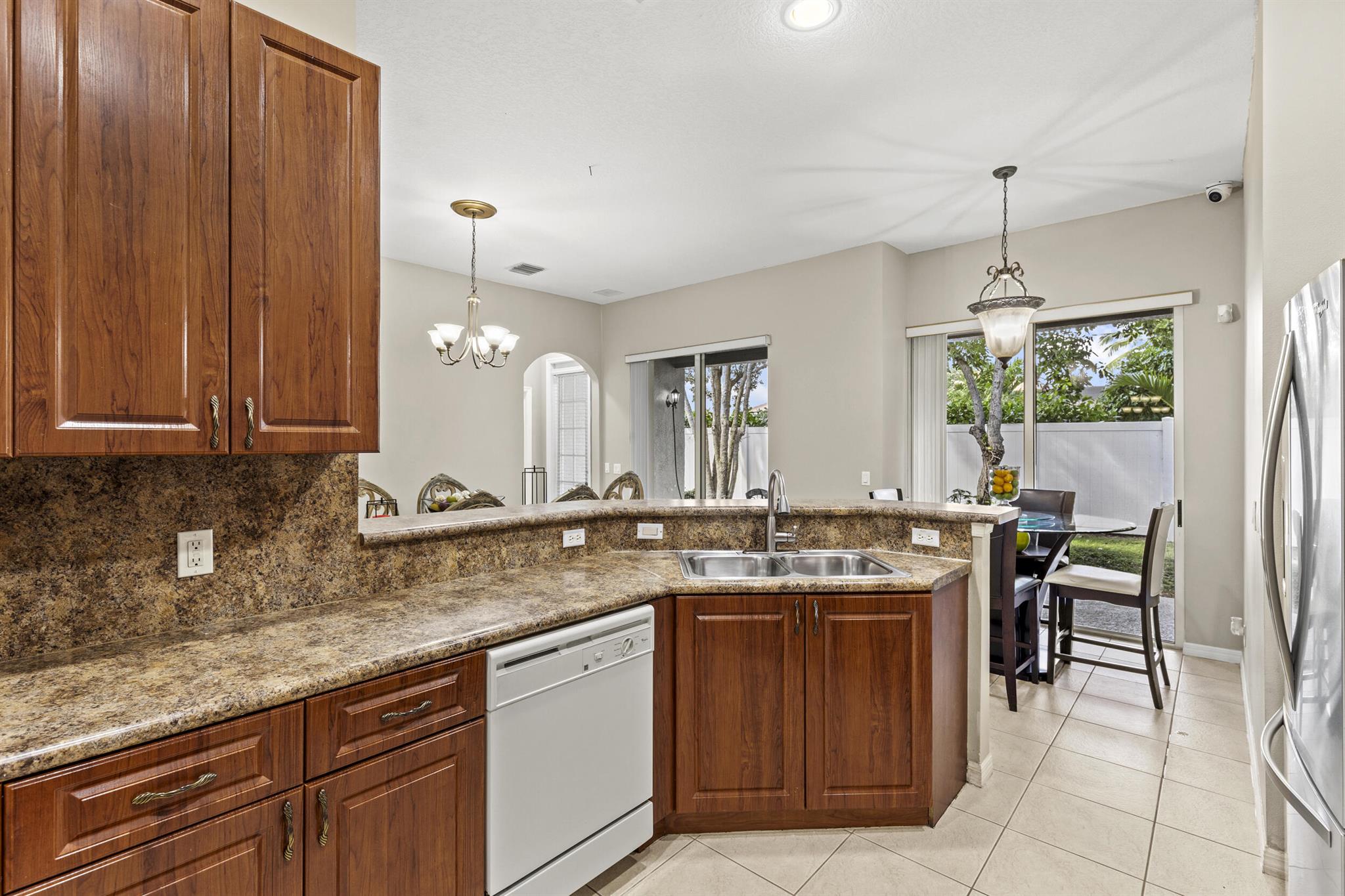 Immaculate move in condition 4 bedroom 3 bath one story home. Large open and flexible living areas plus an open eat in kitchen with a breakfast bar. 3 way split bedroom plan. High ceilings throughout. Primary bedroom has 2 walk in closets, a tray ceiling, plus access to the covered patio. Primary bathroom has a large soaking tub, separate shower, double sinks and a linen closet. Inside utility room with full size washer and dryer. Double door front entry into a spacious foyer. Paver driveway and a 2 car garage with high ceilings for lots of storage. Sidewalks throughout this guard gated neighborhood.Lots of activities at the community clubhouse for all ages. Tennis, pickleball, pool, fitness, playground, ping pong, billiards, cards, banquet hall with a kitchen and management on site.