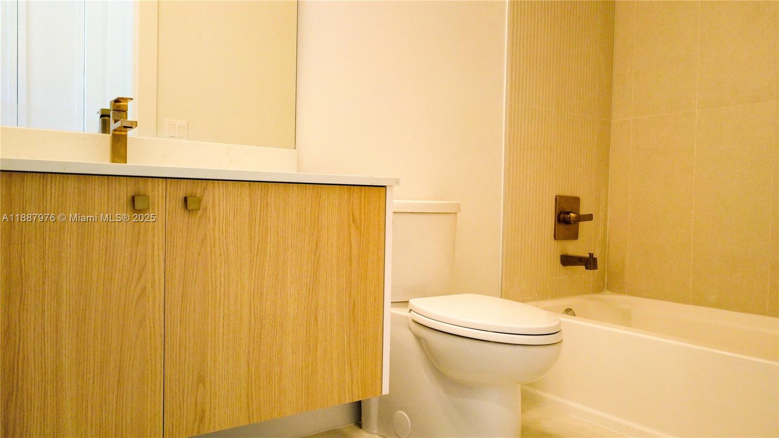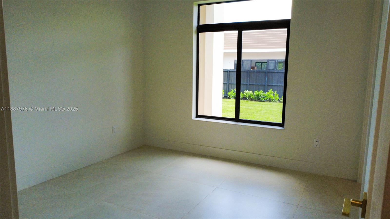 Modern CBS luxury new Construction home with flat TPO roof, hurricane-impact door/ windows, and in-law quarters. Spacious Lot with 17,025 sq ft modern sealed polished driveway with turf, double car garage, landscaped yard, sprinkler, and front /rear terrace/ porch. Inside, high 11' ceiling, porcelain flooring throughout the property, panel wood interior doors, recessed lighting, two tankless water heaters, two a/c units, and designed lamps. Chef's kitchen with modern wood cabinets to the ceiling, quartz counters with a waterfall island, stainless steel ceramic cooktop slide-in range, drawer microwave, hood, dishwasher, and energy-efficient smart refrigerator. Bathrooms with wood cabinets and quartz countertops. Main suite with a large walk-in closet. A/C laundry with washer/dryer.