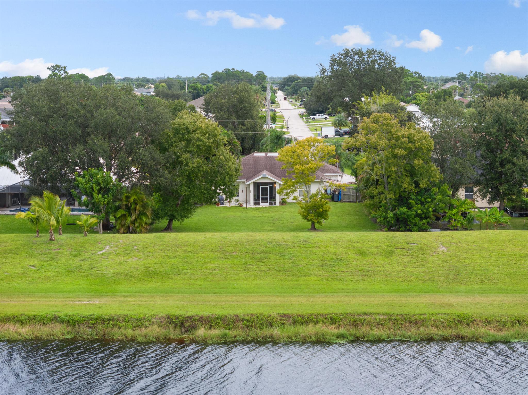 Looking for privacy and a larger lot? This 3-bedroom, 2-bath canal home offers an open floor plan with hardwood floors & an updated kitchen featuring granite counters. Spacious primary bedroom includes double walk in closets, the split floor plan allows for extra privacy from the other 2 bedrooms. A screened patio opens to an oversized yard with access to the C-23 canal, perfect for fishing or kayaking. Recent updates include a 2019 roof and newer water heater. NO HOA- bring your toys & enjoy flexibility and peace of mind. Located off Becker Rd with and close to Tradition's shopping &, dining new . New hospital located down the street plus easy access to I-95 and the Turnpike for easy commuting. Just 25 minutes to the beach, this home combines comfort, lifestyle, and accessibility.