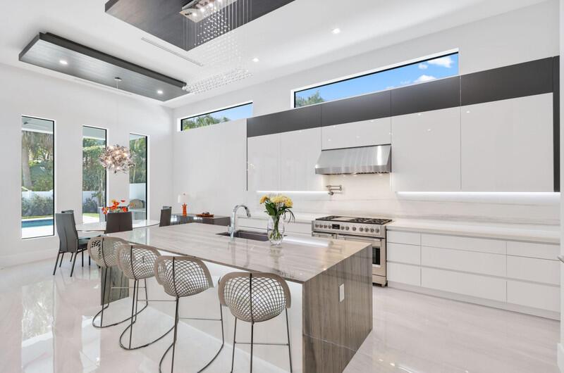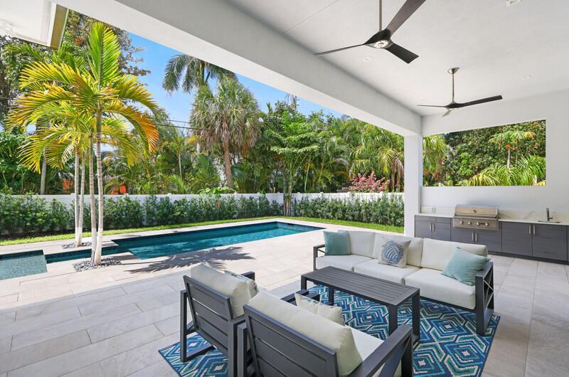 Ultra-Modern East Boca Raton Masterpiece - Steps to the Beach an steps from Mizner! This was built in 2022, designer two-story home delivers modern luxury just minutes from Boca's boutique shops, fine dining, & A-rated schools. Clean lines & elegant finishes define the open layout, w/soaring ceilings, impact glass, & seamless indoor-outdoor flow. The chef's kitchen boasts premium appliances, custom cabinetry, & a waterfall island-perfect for entertaining. The serene primary suite offers a spa-style bath w/soaking tub, rain shower, & luxe details. Outside, unwind in a private backyard oasis with a sleek pool, integrated spa, & lush tropical foliage. The covered lanai features a built-in BBQ & outdoor kitchen, ideal for year-round enjoyment. Unbeatable location & no HOA