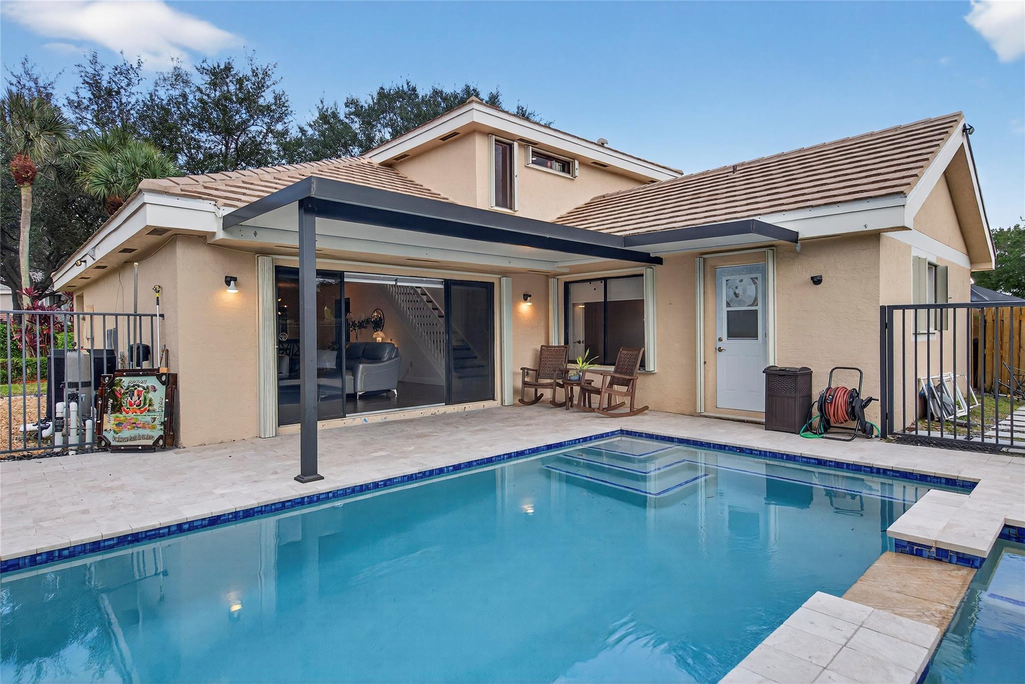 Well maintained, turn-key 4 bedrooms, 2.5 bathrooms, 2 car garage home; with one of the larger lots in desirable Cross Creek II community in Plantation. This beautiful home, located in a quiet cul-de-sac, offers salt water heated pool, new pump, with modern upgrades, installed in 2022. Fully fenced pool area framed with travertine patio. Primary bedroom on 1st floor, kitchen with stainless-steel appliances, washer and dryer, tons of natural light, accordion shutters through out the entire house, very spacious outdoor for entertaining and relaxing morning and afternoons, paver driveway. low HOA. Roof 2017. Close to parks, Sawgrass Mall, restaurants, groceries, major highways. A must see!!!