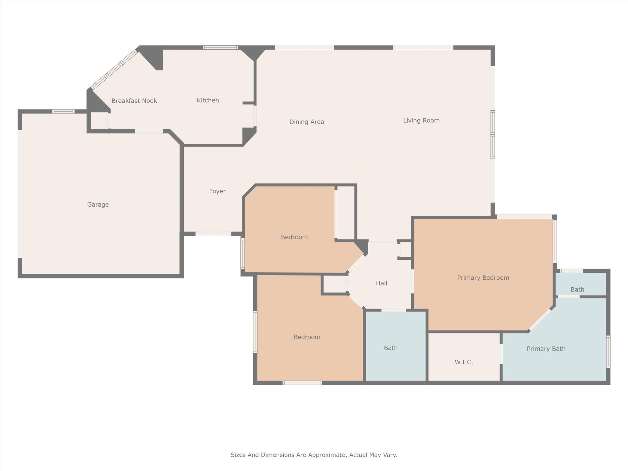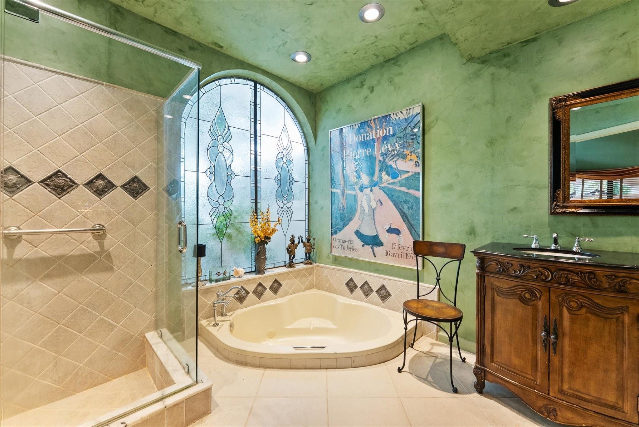 • Интерьер:BedroomOnMainLevel, BreakfastArea, EntranceFoyer, EatInKitchen, FirstFloorEntry, GardenTubRomanTub, LivingDiningRoom, MainLevelPrimary, SeparateShower, StackedBedrooms, VaultedCeilings, WalkInClosets