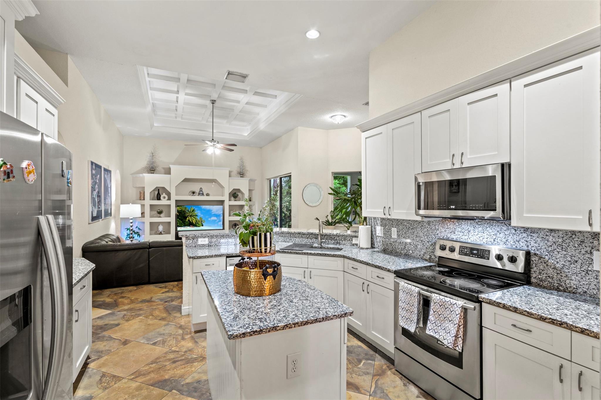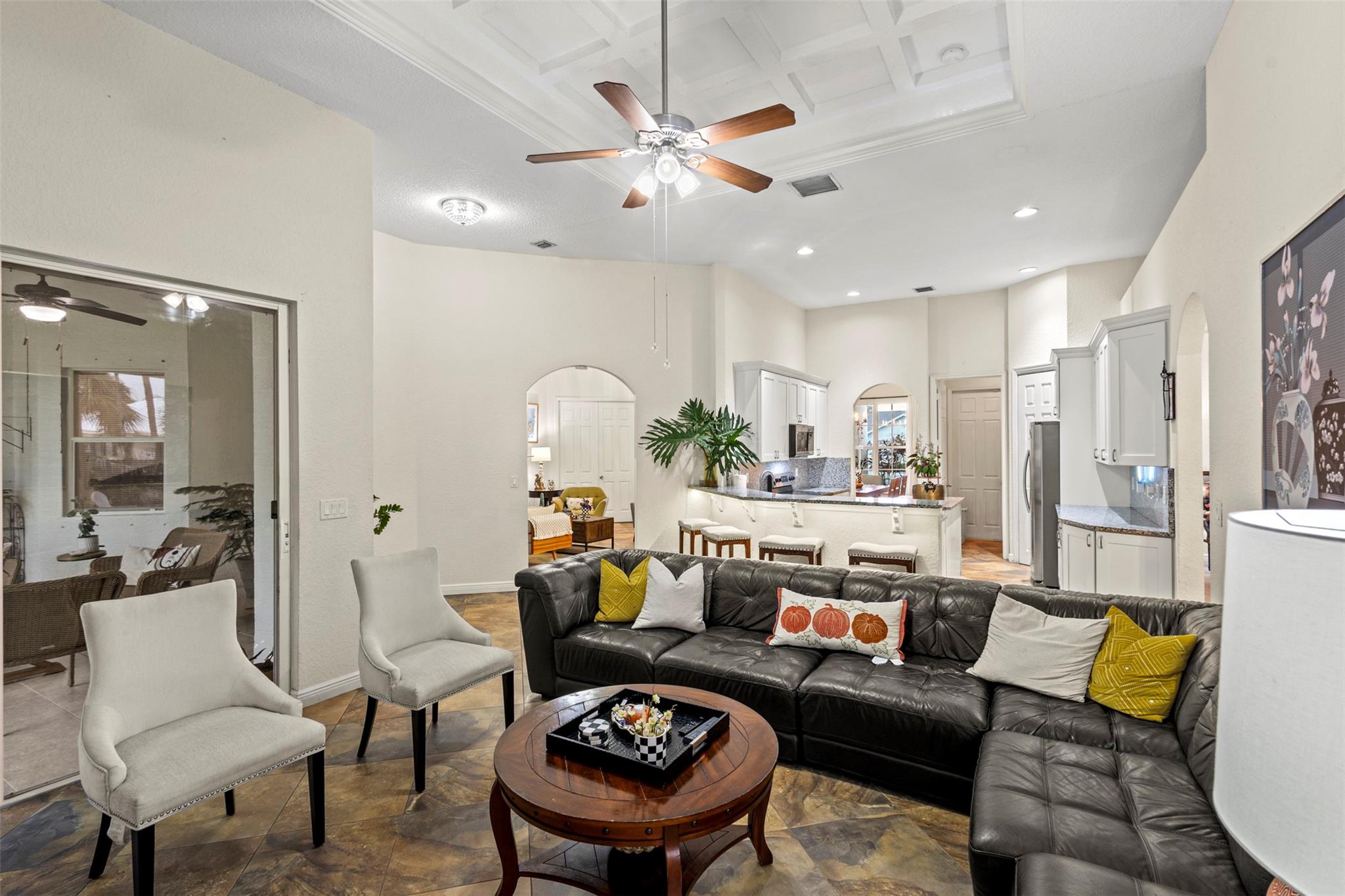 Step into this elegant Port St. Lucie beauty that perfectly blends custom design, warmth, and functionality. Featuring soaring ceilings, detailed architecture, and a bright open layout, this home impresses from the moment you walk in. The living area showcases a tray ceiling, custom lighting, and a striking fireplace, while the formal dining room offers the perfect setting for gatherings. The kitchen flows seamlessly to the living areas, making entertaining effortless. Every corner feels thoughtfully designed—from the peaceful primary suite to the private backyard retreat surrounded by lush landscaping. With a spacious driveway and head-turning curb appeal, this home is truly move-in ready. Motivated seller—bring all offers! Quick closing preferred.