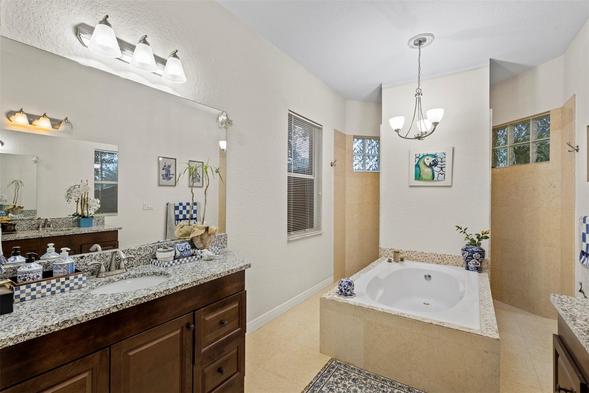 • Интерьер:BedroomOnMainLevel, DualSinks, EntranceFoyer, MainLevelPrimary, MultiplePrimarySuites, SeparateShower, TubShower, VaultedCeilings, WalkInClosets