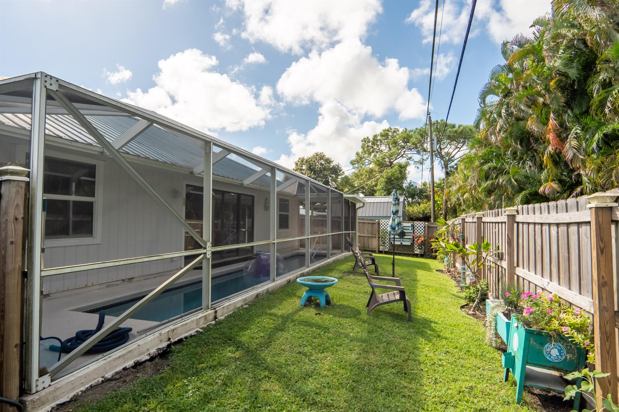 3 bedroom 2 bathroom remodeled home in Palm City on a quiet street. No HOA and no vehicle restrictions. Walking distance to Palm City Elementary. Fenced backyard and screened patio with lap pool. Tile throughout the house. Impact windows except the slider. This home offers city water and septic. The A/C was replaced in 2020.