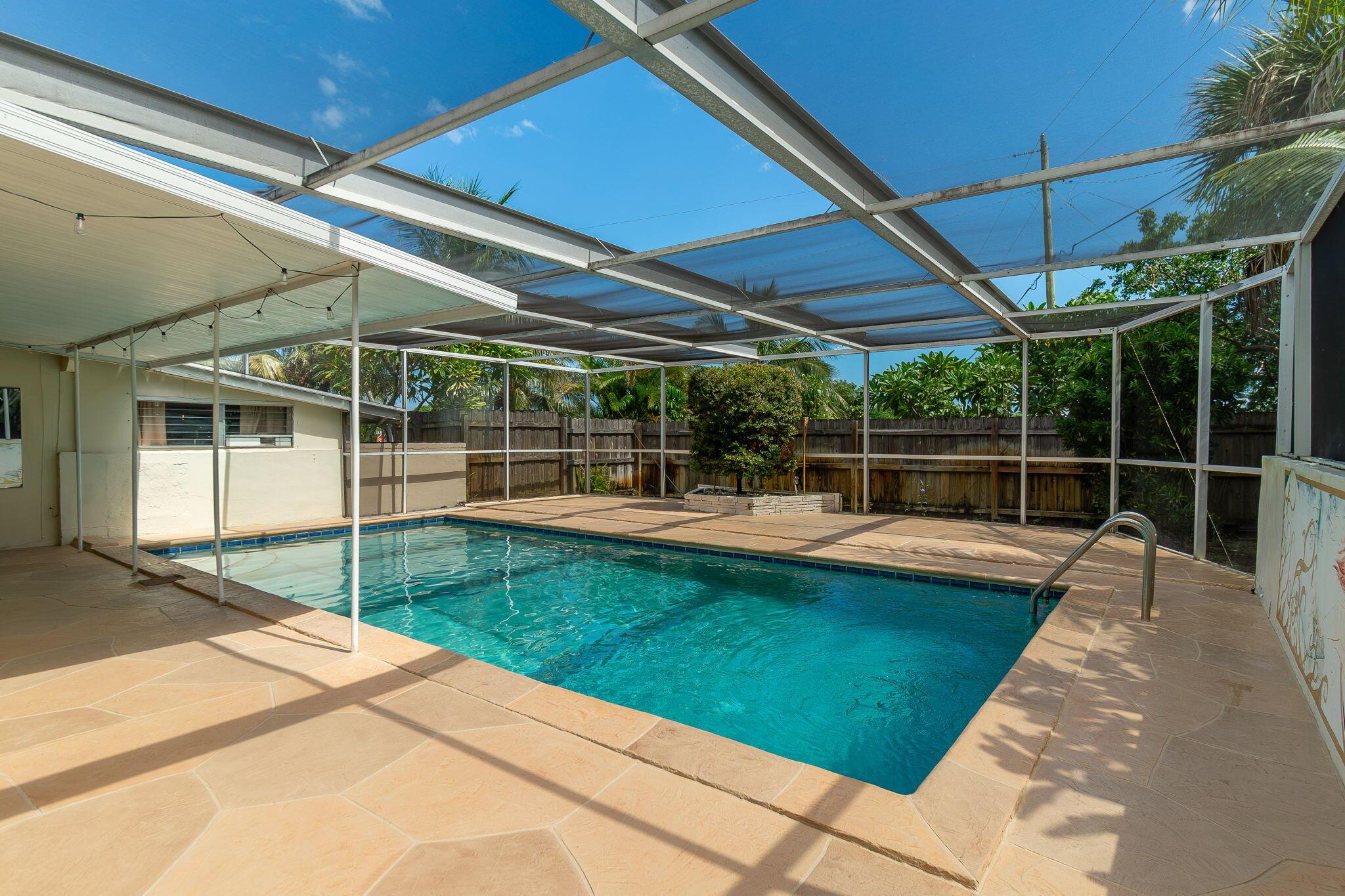 This one-of-a-kind Lantana beach bungalow offers a perfect blend of charm and versatility. The main home features 2 bedrooms and 1 bath with an updated kitchen and bathroom, providing modern comfort and style. The newly refinished pool with full screen enclosure, fenced backyard, and corner lot with ample parking make it ideal for Florida living. A separate 1-bedroom, 1-bath apartment serves perfectly as a guest suite, mother-in-law quarters, or rental unit. Just five minutes from the beach, Intracoastal, and I-95, this property offers convenience, income potential, and true coastal living. Seller is highly motivated--don't miss this rare opportunity! No HOA!