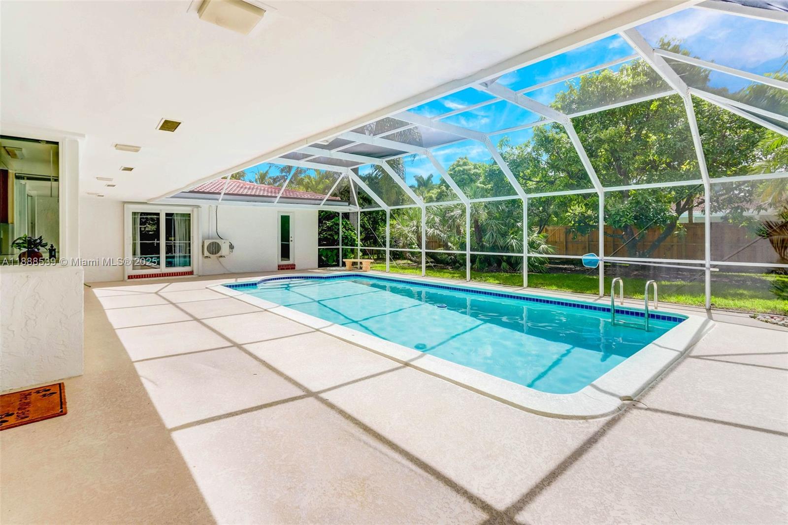 Incredible Falls area home is nicely situated on a quiet corner lot. Buyers will love this neighborhood away from the busier streets and off the beaten path. Impact windows throughout. Spanish tile roof and arched detailed entry into a courtyard give the house a hacienda feel. The foyer follows up with a softly rounded arched entry into the living room. The flowing layout and generously-sized bedrooms offer a comfortable lifestyle. Sunny eat-in kitchen overlooks the pool as well as the family room. The spacious primary bedroom offers patio access, walk-in closet, and cabana bath. Great outdoor space with covered patio, pool, and garden. A perfect opportunity to live in The Falls Area!