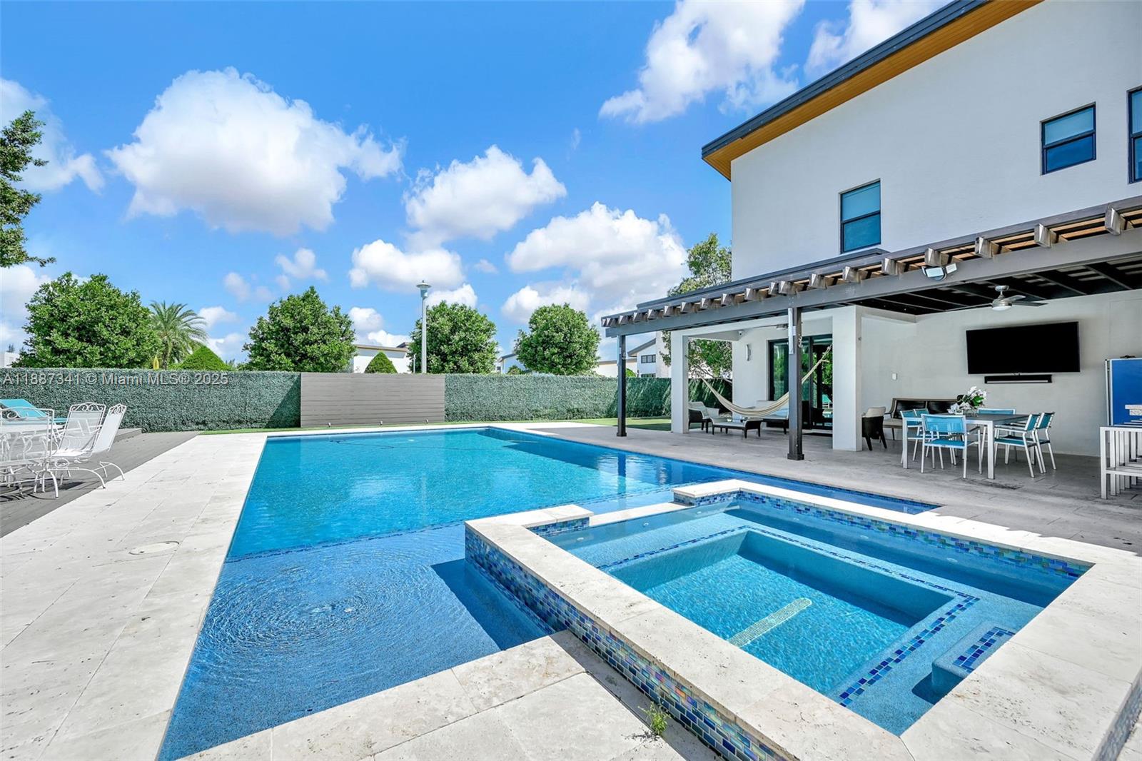 Move-in ready two-story Mediterranean House with Private Pool in Pinnacle Park Central, set on one of the community’s largest lots (7,922 Sqft). Built in 2017, it offers 4 beds, 3.5 baths, 2,966 SF per appraisal under A/C and a 2-car garage. Entertainer’s backyard with summer kitchen and spacious patio. Interior features porcelain/ceramic/wood flooring, modern kitchen, quality upgrades and well-maintained finishes throughout. Gated community with 24-hr security, clubhouse, fitness center and resort-style amenities. Prime Doral location near top schools, highways, shopping and dining. A rare opportunity with immediate occupancy available—perfect for families seeking comfort and elegance or investors looking for strong demand in a thriving area.