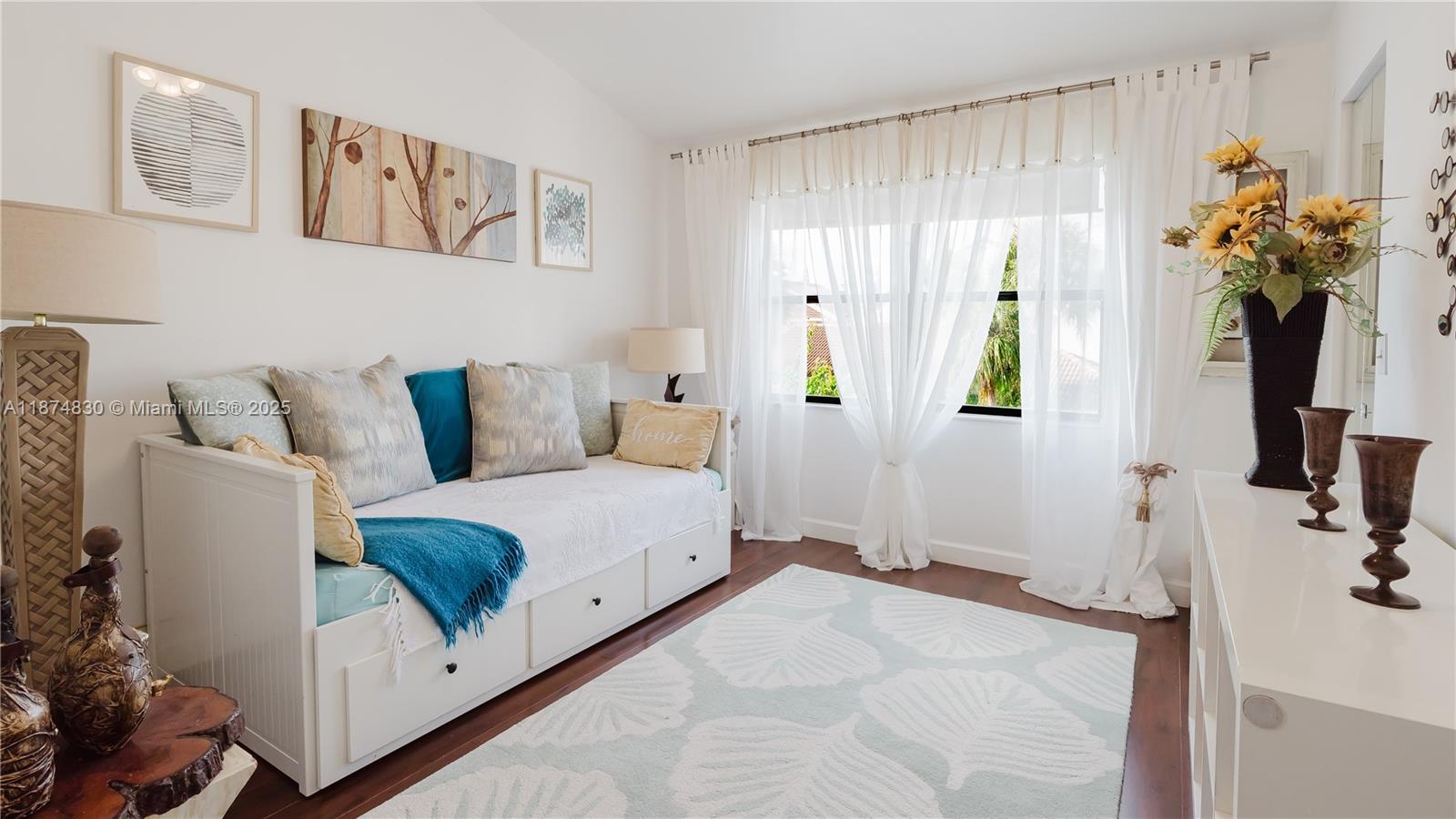 Modern, FURNISHED townhouse with a garage offers 3 bed, 2.5 bath. Situated in the prime location of Aventura with private access to waterways marina and walkway. 24/7 manned security gate and patrol. Parking permissible for 3 vehicles plus guest parking. Walking distance to school, places of worship, kosher supermarket, Whole Foods, Target, gym, post office, shops. 3-mile walking/biking exercise trail, restaurants and Aventura mall are also within walking distance. Heated infinity community pool. Beautiful floral courtyard along with screened in backyard patio as well a second floor balcony in the master bedroom with beautiful garden views. Unit may be sold unfurnished if desired. Community has full reserves.