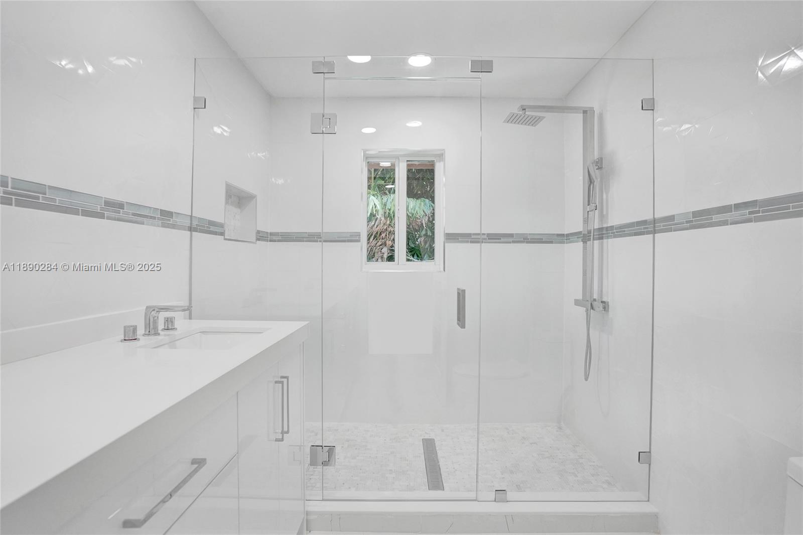 Fully remodeled home with luxury finishes. Modern kitchen with new LG appliances, built-in oven/microwave combo, cooktop, range hood, and quartz countertops. Open layout with porcelain floors, double-height ceilings, LED lighting, and modern stairs with metal, wood, and glass design. All bedrooms feature new closets; the master suite includes a walk-in closet and a jacuzzi bathroom. Renovated pool, new landscaping, paver driveway, new washer & dryer. Impact windows/doors. Plenty of parking space for multiple vehicles. Surrounded by lush vegetation in an exclusive and secure neighborhood.