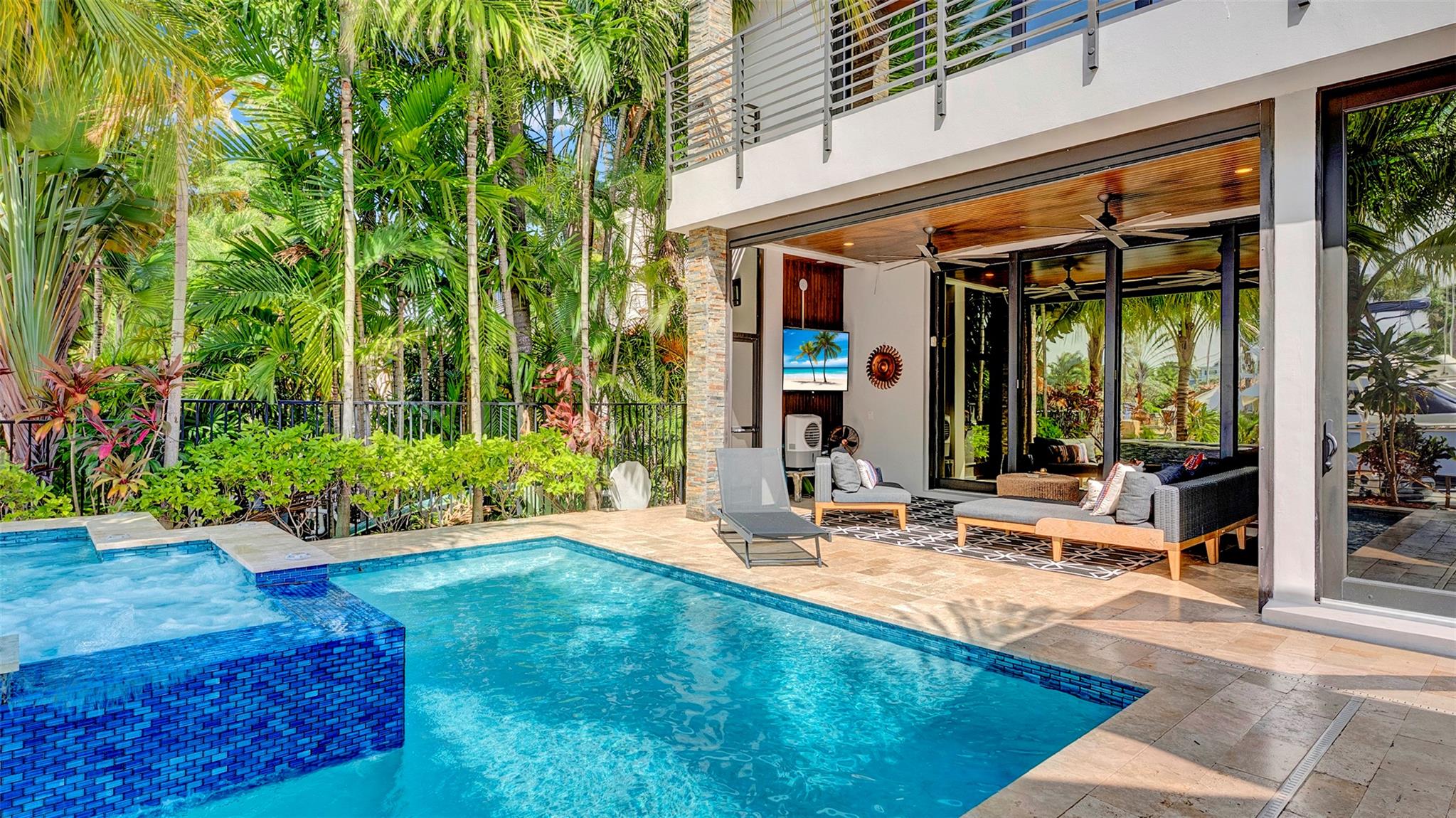 Not your average home on the Las Olas Isles, behind the gates this custom 4-bed, 4.5-bath home spans 4,539 Sqft. Meticulous attention to detail and modern elegance helps define this home, which comes equipped with high-impact windows, 12 camera surveillance system, 48x48 porcelain tiles, quartz counters, 8.5 Tons of AC systems, low E windows with bronze tint a floating staircase over a 170-bottle wine cellar, a bar for entertaining, the kitchen has a huge island, 6 burner gas range that overlooks the family room that flows outside through the 11’ pocket sliders to a screened Lani. Outside you can entertain with your pizza oven & grill, pool and jacuzzi, the 50’ dock is well equipped with 30/50 amp. smart illumination by Lutron & Dals. Live luxuriously in this exquisite Idlewyld residence.