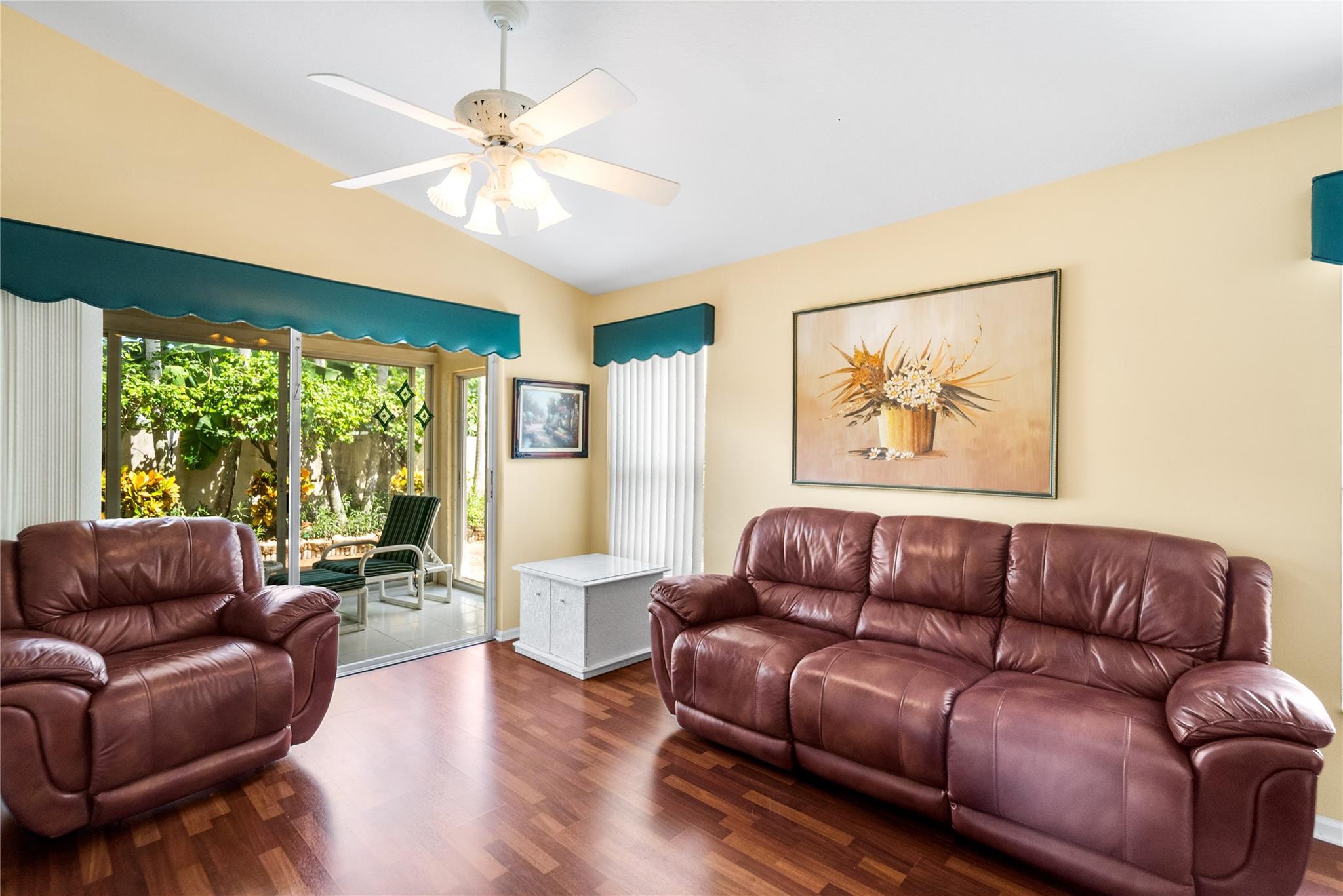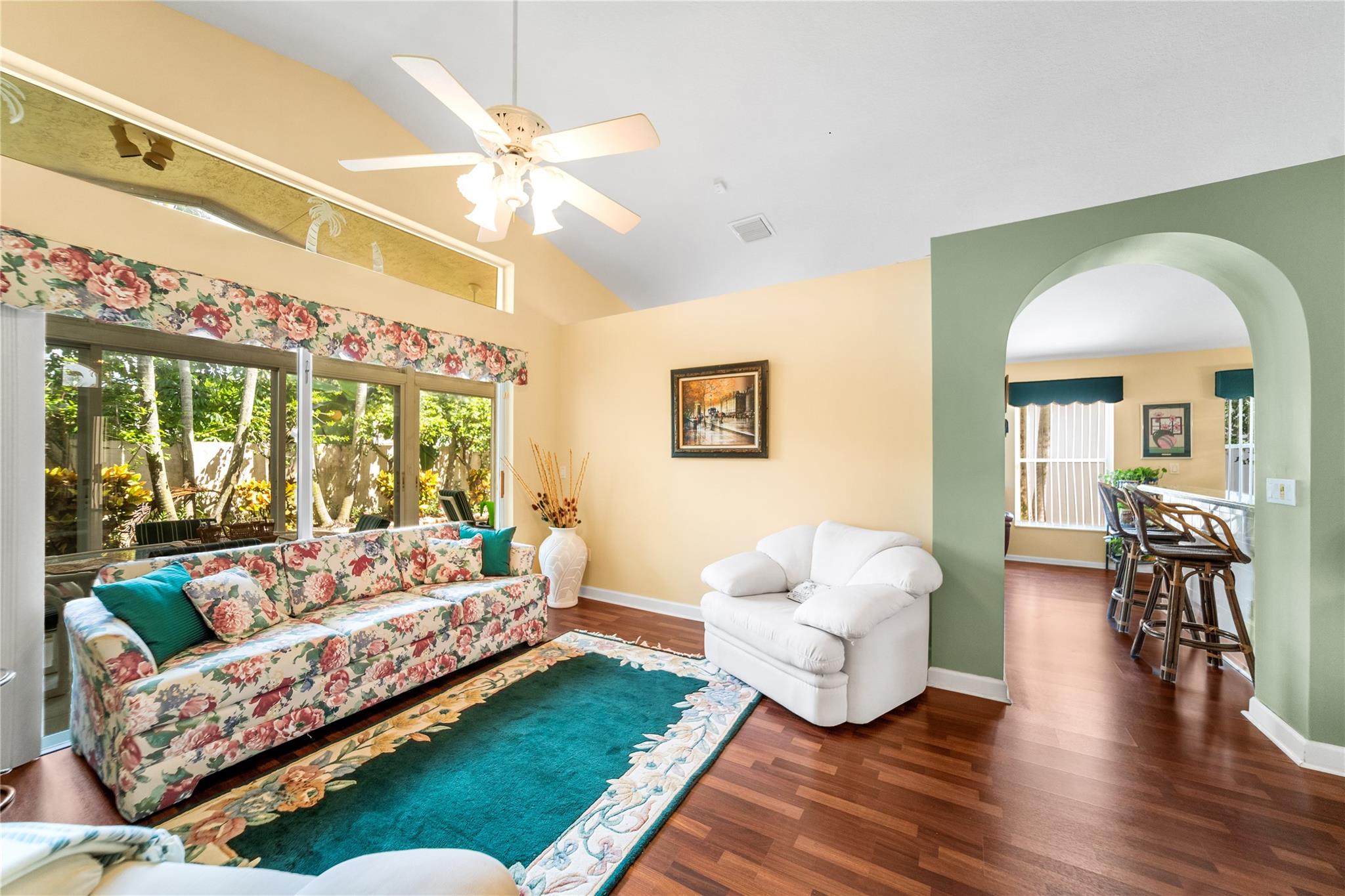 Step Into This Beautifully Maintained 3 Bedroom, 2 Bathroom Home Located In A Desirable Gated Community In Boca Raton. Featuring Vaulted Ceilings And An Open Layout, This Home Is Filled With Natural Light Throughout. The Updated Kitchen Opens To A Spacious Living And Dining Area, Perfect For Entertaining. The Primary Suite Offers A Luxurious Bathroom With A Separate Shower, Soaking Tub, And Double Vanities. Enjoy The Comfort Of An Enclosed, Air-Conditioned Patio, Plus A Two-Car Garage, Laundry Room, And Accordion Shutters For Peace Of Mind. HOA Provides Resort-Style Amenities Including A Pool With Hot Tub, Tennis Courts, And Landscaping Services.