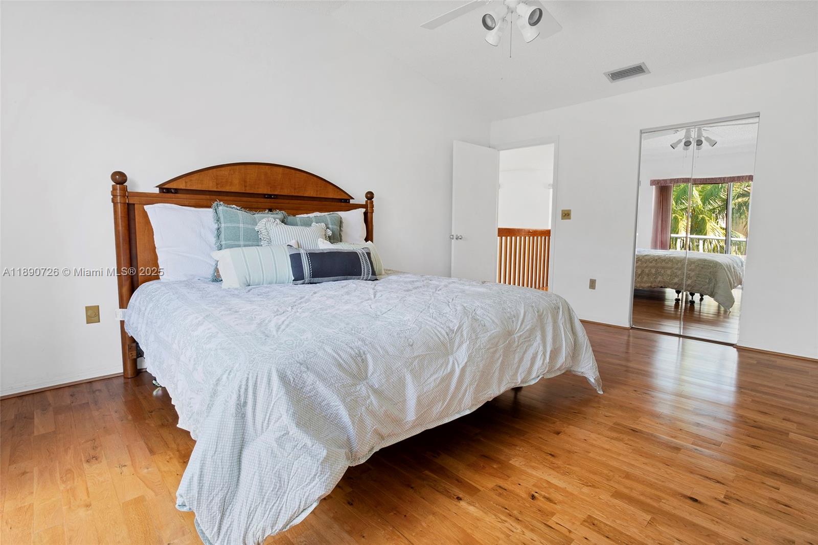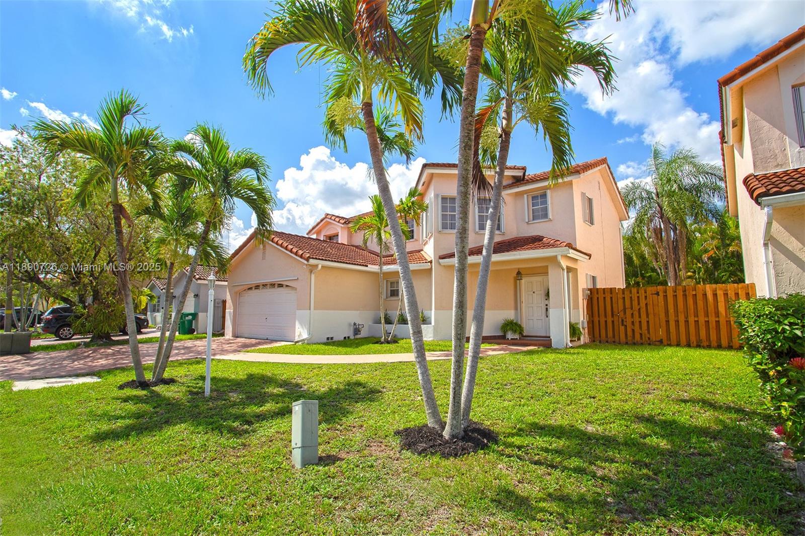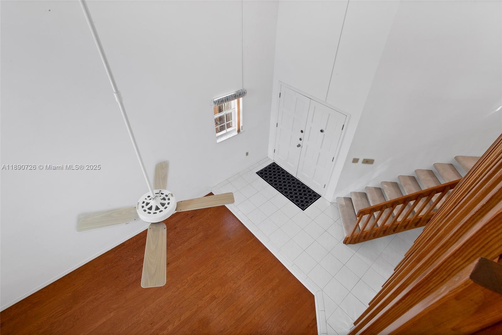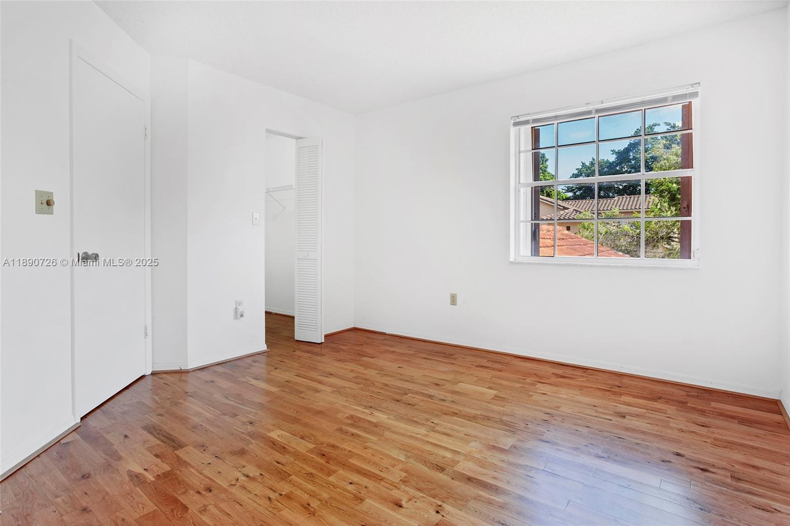 Step through the front door into a soaring, voluminous ceiling and grand arched window that invites natural light to pour in, creating an instant sense of spaciousness. French doors and sliders open to a private pool and patio - ideal for entertaining. Storage abounds: 2 walk-in closets in two bedrooms and 1 wall-to-wall closet in the third. The primary suite has a private balcony. Additional features include a laundry room with a sink, a 2-car garage, a Roman tub, wood floors in the upstairs & living room, and hurricane shutters for all windows & doors, including the garage. All on a quiet street with friendly neighbors in a family-friendly community. Great schools, restaurants & shopping nearby.