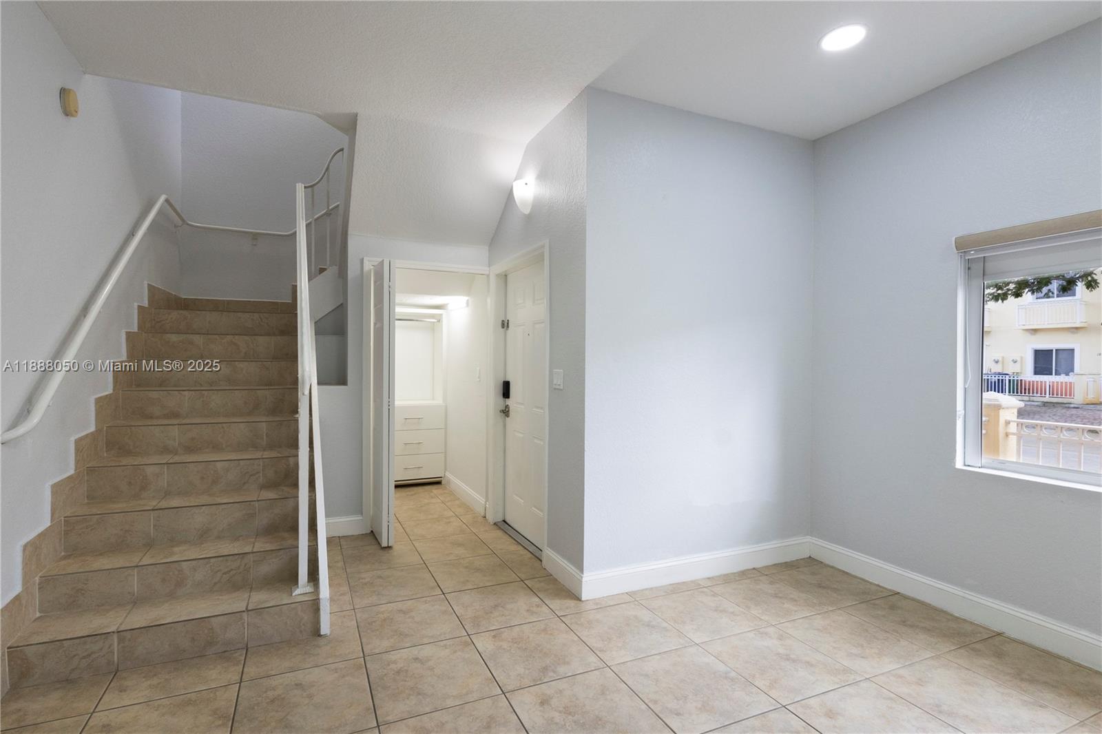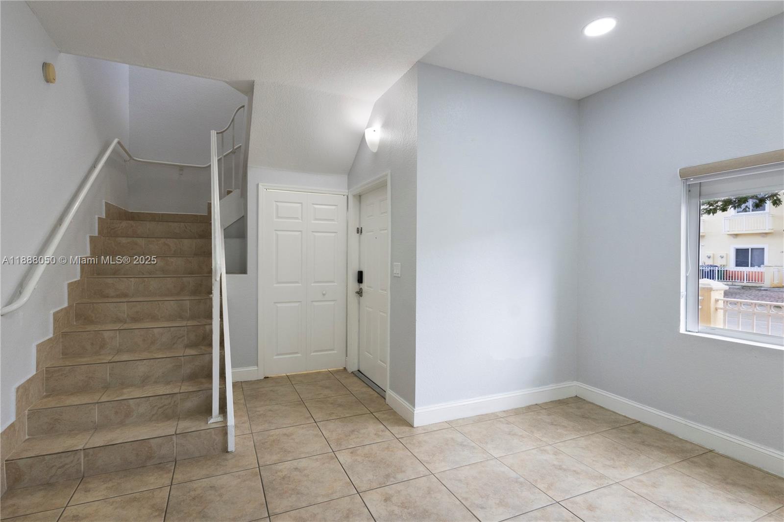 Huge, turnkey townhouse with patio and two parking spaces. The ground floor has a living room and a dining room, a bright and open kitchen with stainless steel appliances, and a fully equipped laundry room. Also, a half bathroom for your convenience. The second floor has a master bedroom with its own master bathroom, and the second bedroom with a full bathroom. The seller designed, created, and customized closets all around the property. Plenty of lights, each room has its own windows and double shades. New central AC and water heater. Ready to move in. This is a friendly community with a pool, clubhouse, and security guard on site every night. Perfect for a homestead or investment.