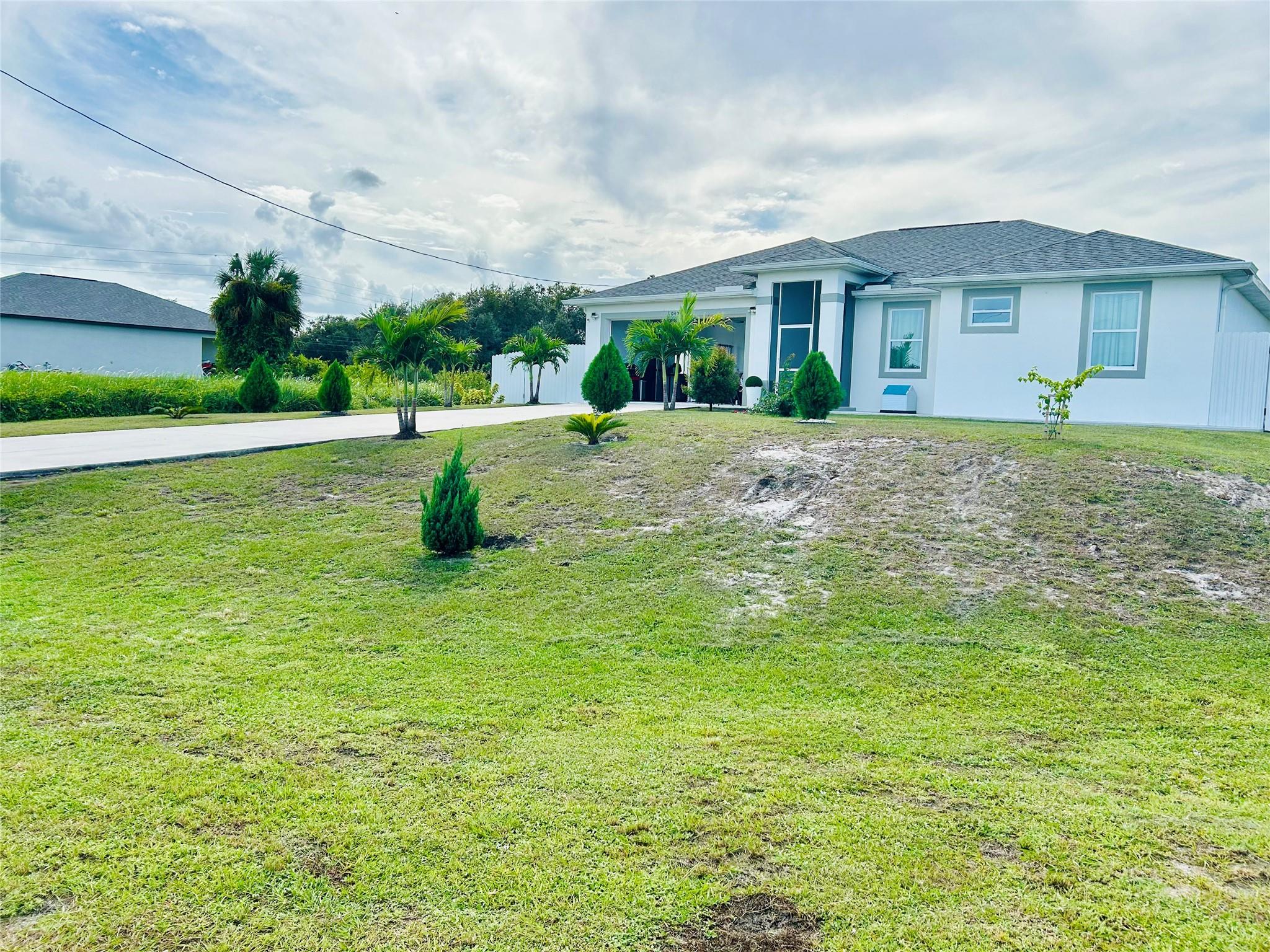 Priced to sell! New Construction!*** This stunning modern home features three spacious bedrooms and two beautifully designed bathrooms, perfect for a family or those who love to entertain. With vaulted volume ceilings throughout, the open layout creates a light and airy atmosphere that instantly feels welcoming. Impact doors and windows, ensuring safety and energy efficiency. The two-car garage, beautifully landscaped backyard, covered patio, driveway adds to the home’s curb appeal, lush fruit trees. Enjoy the serene entranceway covered by a screen, giving you a peaceful spot to unwind.*** Beautiful tiles surround the property. Model-home feel with attention to detail at every corner. Don't miss out on this gem—schedule your viewing today! Your dream home is waiting for you!