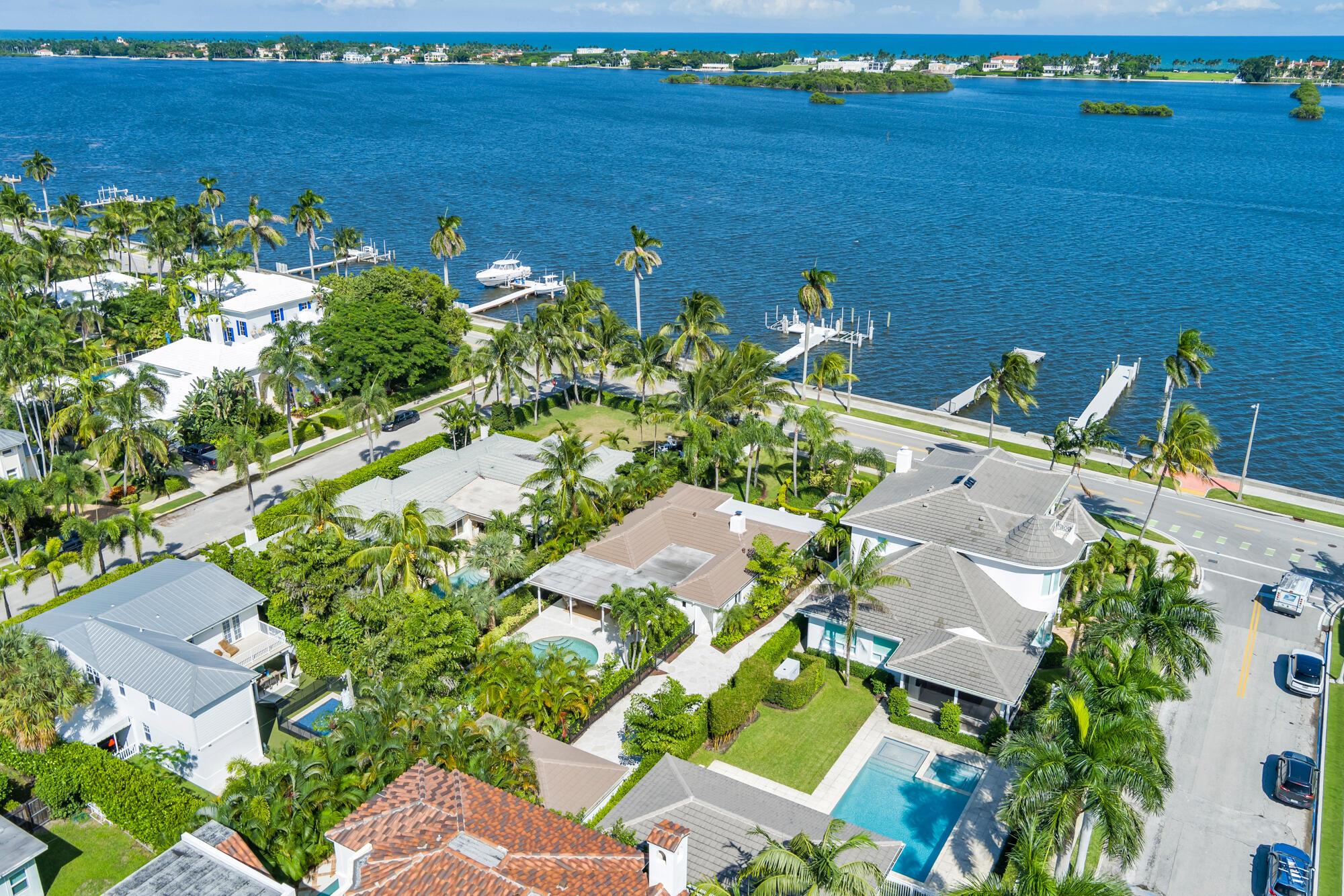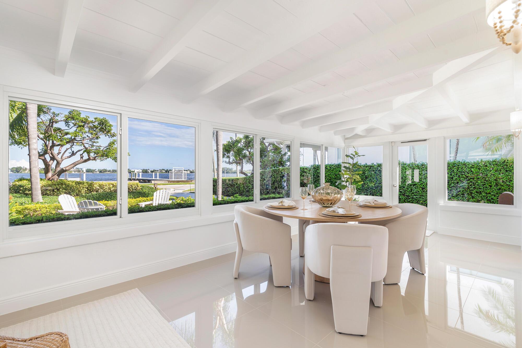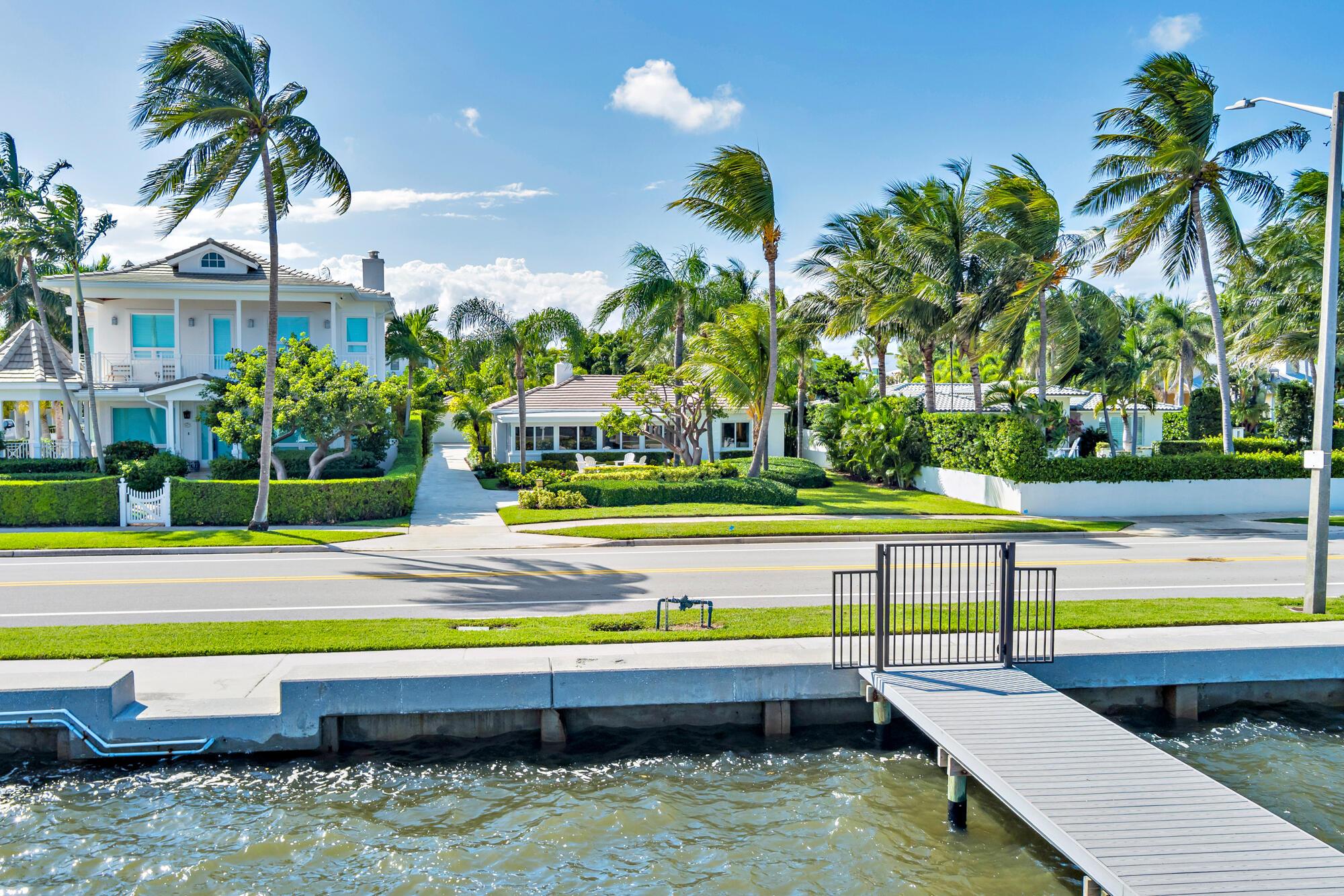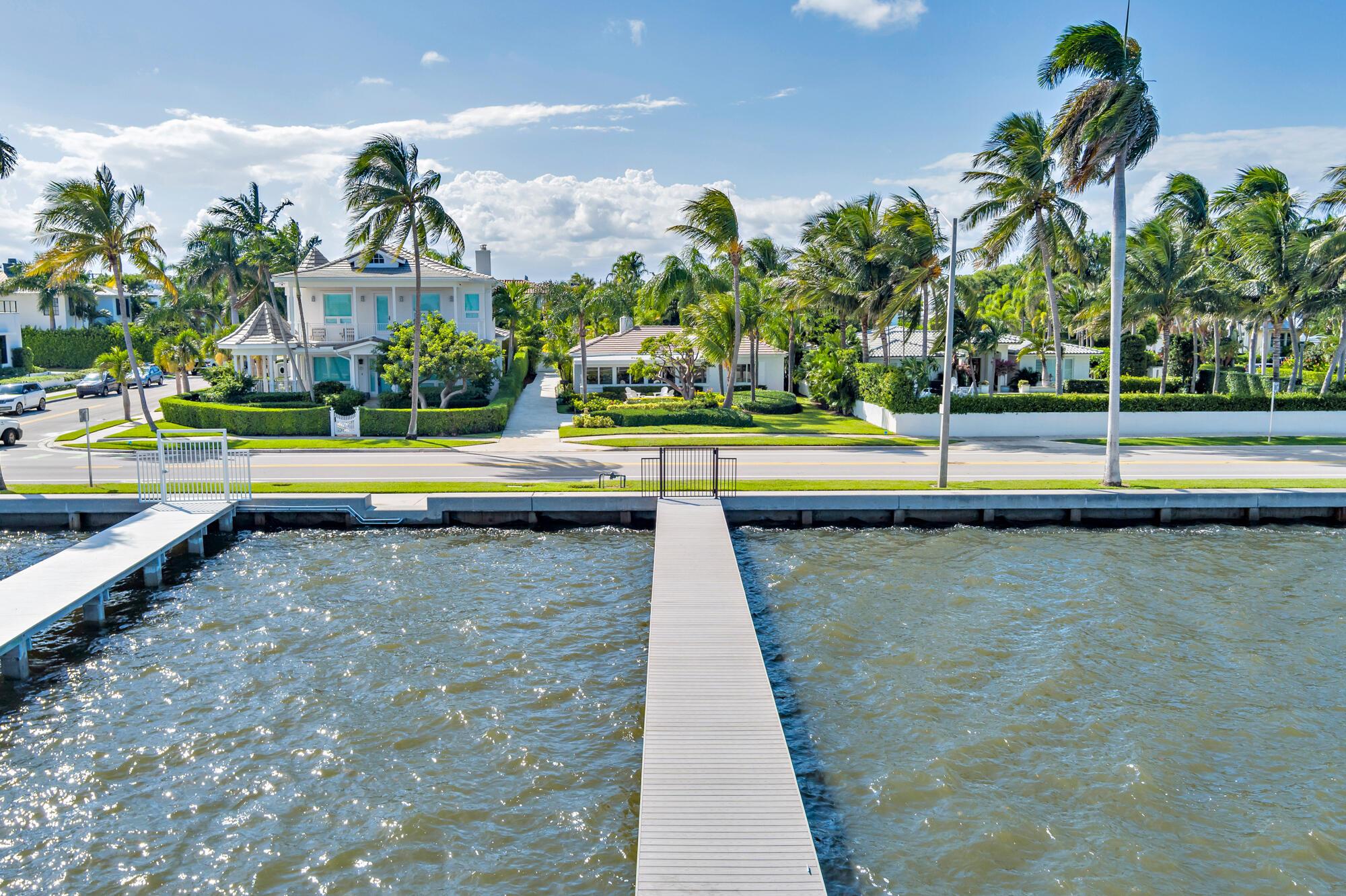 OWNER FINANCING AVAILABLE. Step into waterfront living at its finest with this pristine Flagler Drive waterfront home. Enjoy breathtaking Intracoastal views and over 62 feet of waterfront on this approx 9800 sqft lot. A 100-foot private dock makes this a boater's dream--just bring your boat and start cruising. Inside the main house you'll find 3 bedrooms, 2.5 baths, plus a bonus 1/1 separate guest accommodations, all wrapped in full hurricane impact windows and doors. Clean architectural lines are balanced with custom millwork and molding, giving the home a timeless elegance. The newer roof, new HVAC, new appliances and thoughtful updates make this residence completely turnkey. Surrounded by lush, tropical landscaping, and a resort style heated pool and covered loggia, this