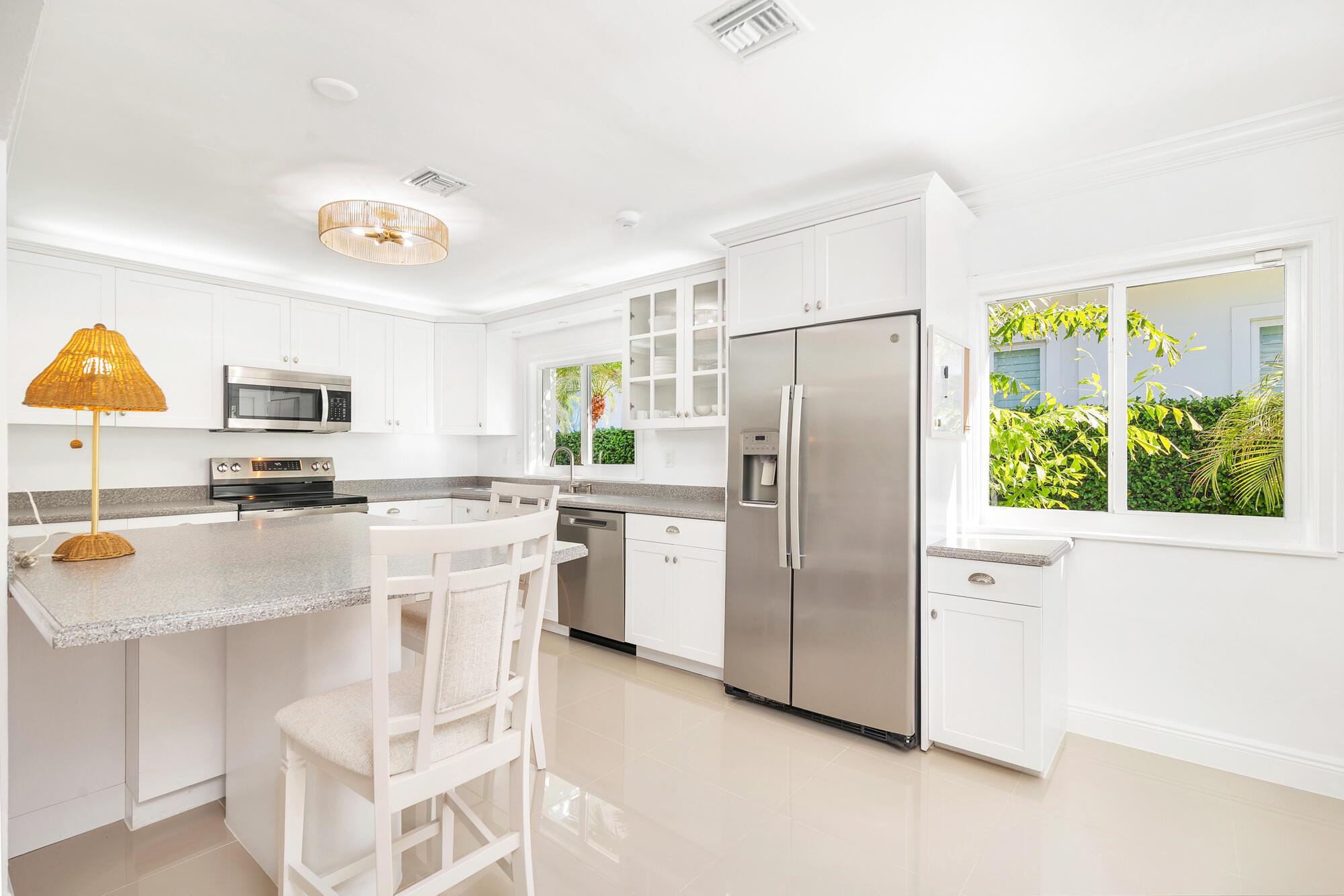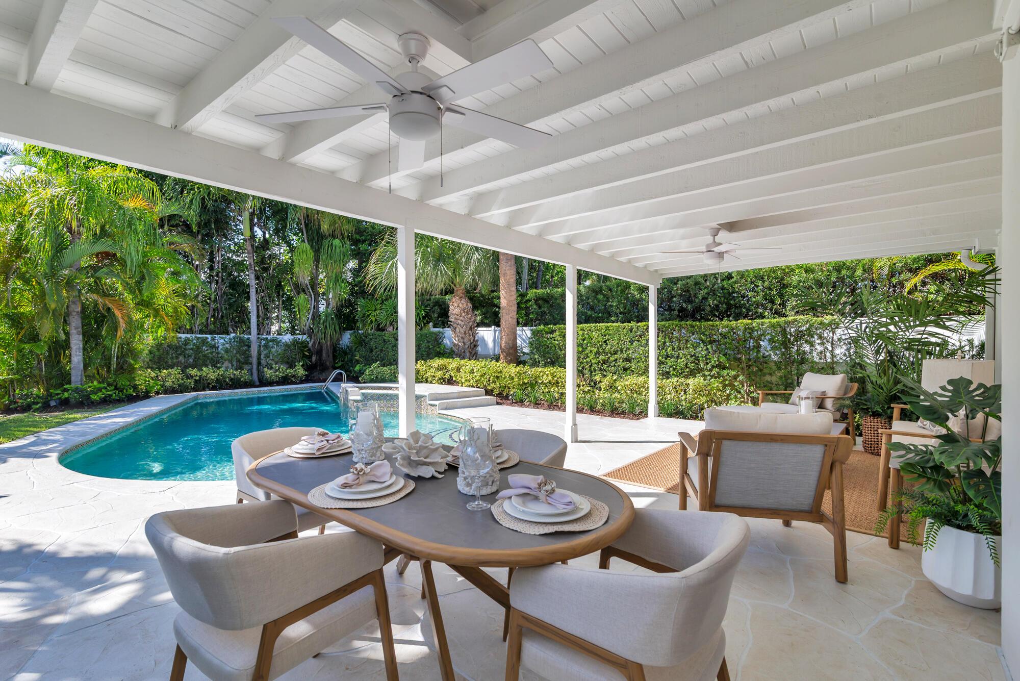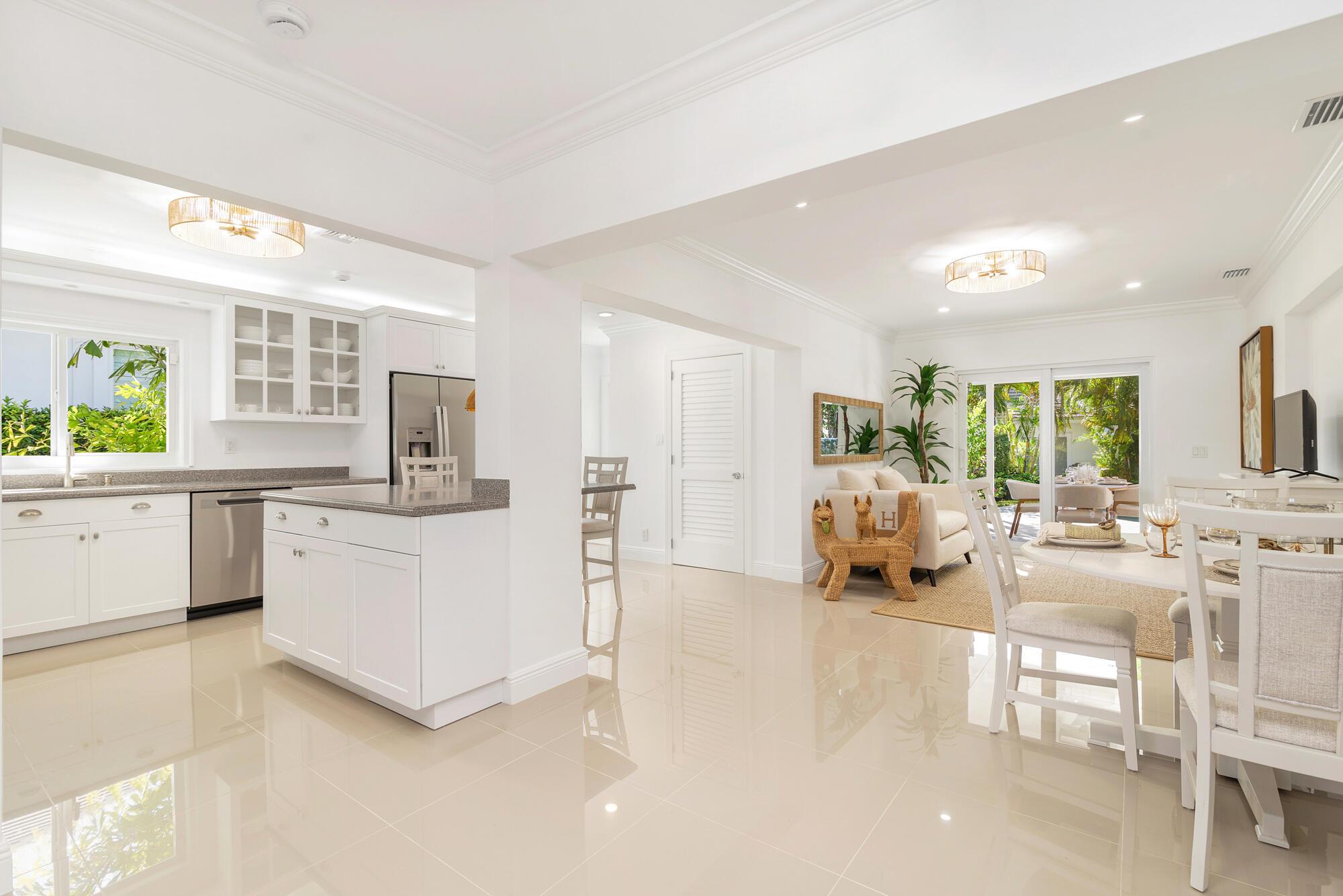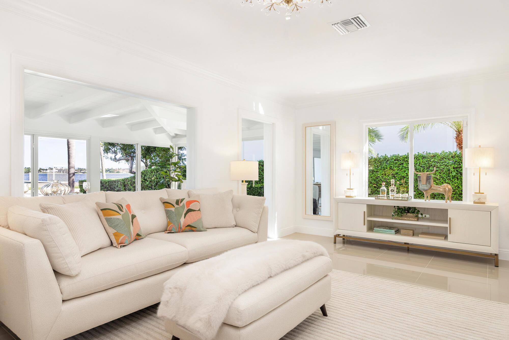 OWNER FINANCING AVAILABLE. Step into waterfront living at its finest with this pristine Flagler Drive waterfront home. Enjoy breathtaking Intracoastal views and over 62 feet of waterfront on this approx 9800 sqft lot. A 100-foot private dock makes this a boater's dream--just bring your boat and start cruising. Inside the main house you'll find 3 bedrooms, 2.5 baths, plus a bonus 1/1 separate guest accommodations, all wrapped in full hurricane impact windows and doors. Clean architectural lines are balanced with custom millwork and molding, giving the home a timeless elegance. The newer roof, new HVAC, new appliances and thoughtful updates make this residence completely turnkey. Surrounded by lush, tropical landscaping, and a resort style heated pool and covered loggia, this