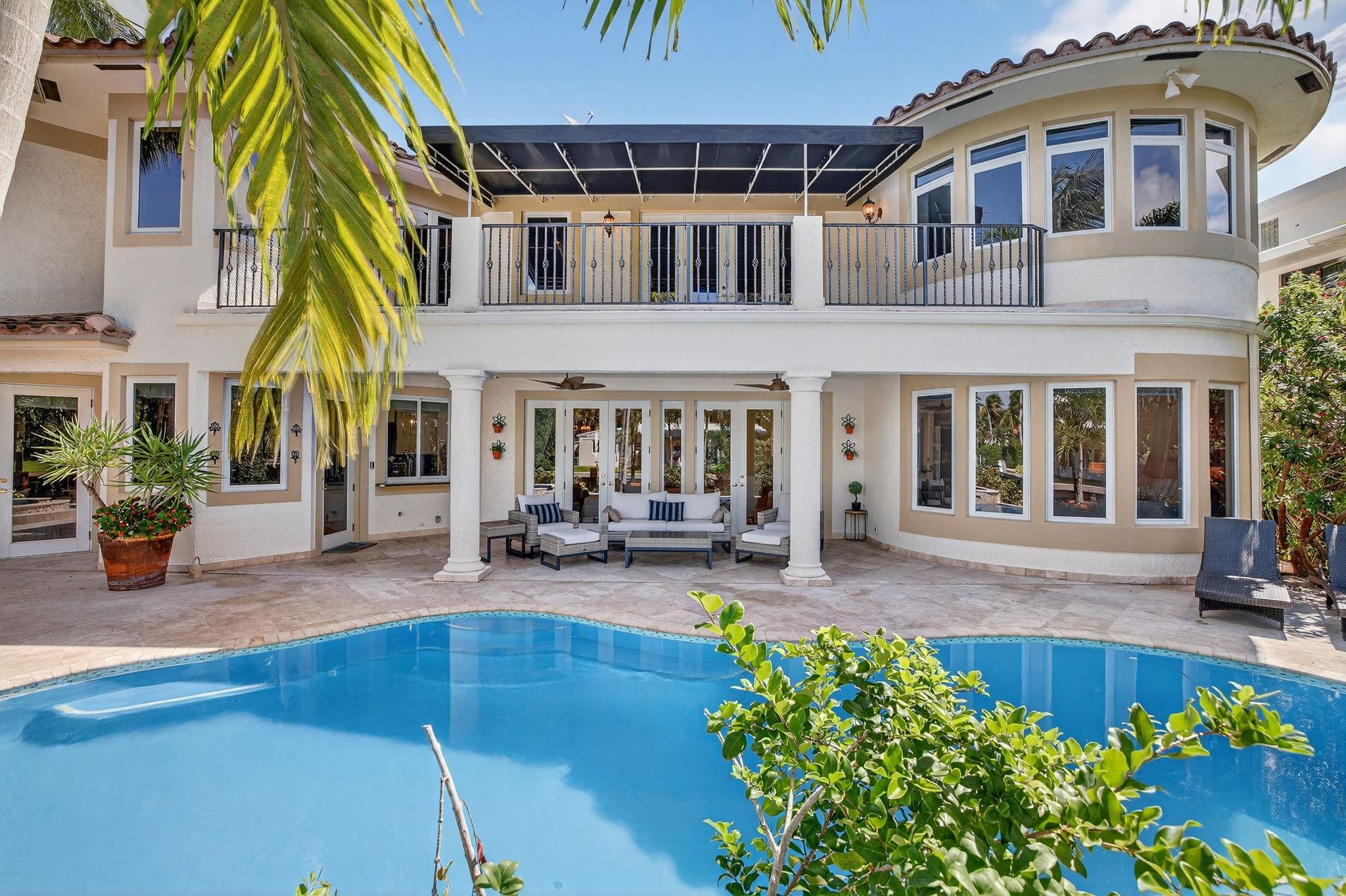 Offered below $300k of October appraised value! 100 ft deep water, walled & gated, island inspired & furnished residence has much to offer. The floor plan is exceptionally flexible with abundant natural light & great entertaining space. Enjoy 2 ground floor bedroom suites. Perfect for entertaining large kitchen/living room, adjoining formal dining room, wine cellar, formal living room with fireplace. Rotunda bar/club room or potential office. 3 bedroom suites upstairs include an extremely expansive primary suite, with private office, gym or third office, separate baths connected with honeymoon shower & large closets. Balcony access. Delightful pool area with cabana bathroom. 3 garage bays & additional guest parking driveway, all walled & gated. Private security also available on this Isle.