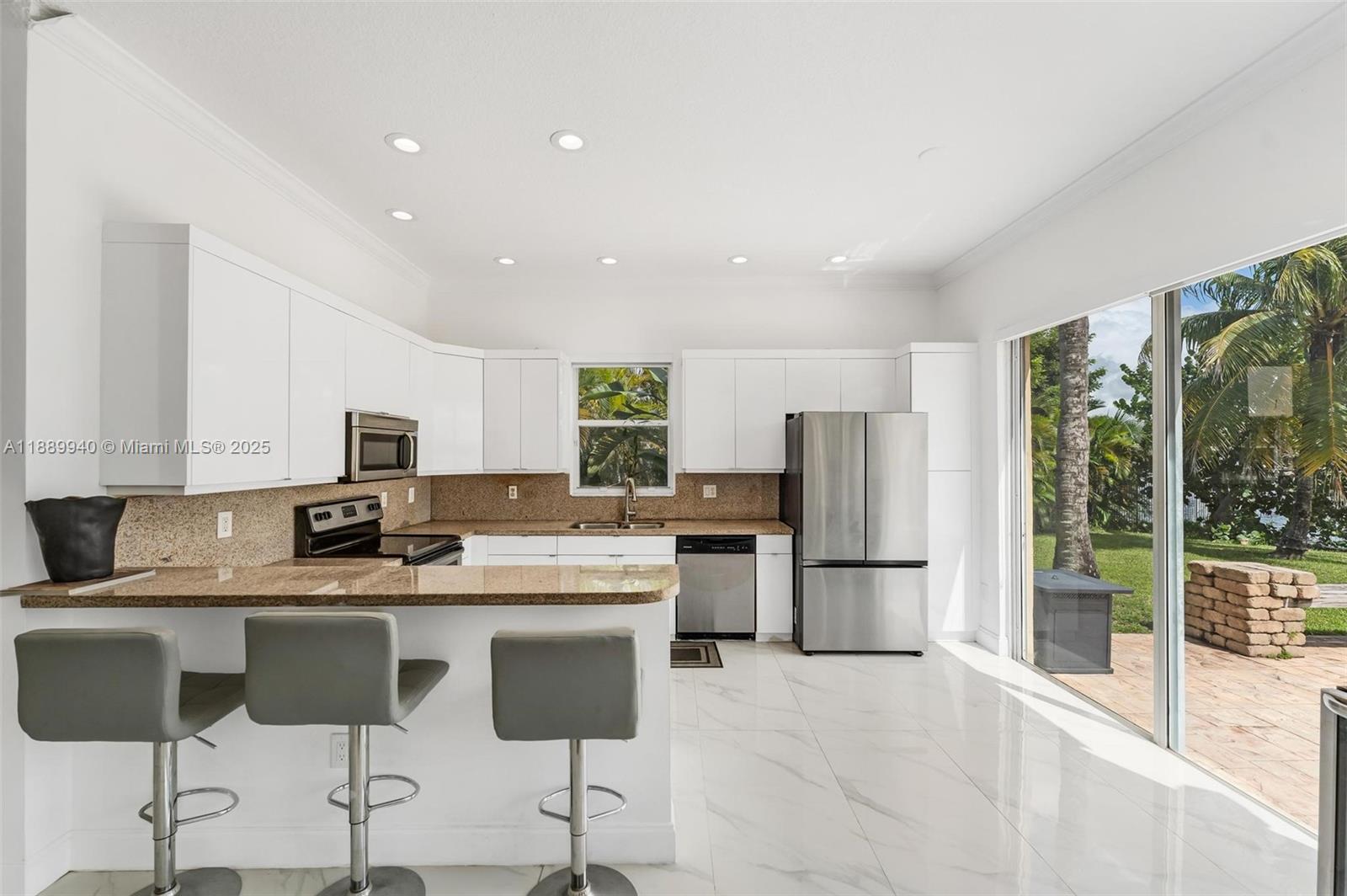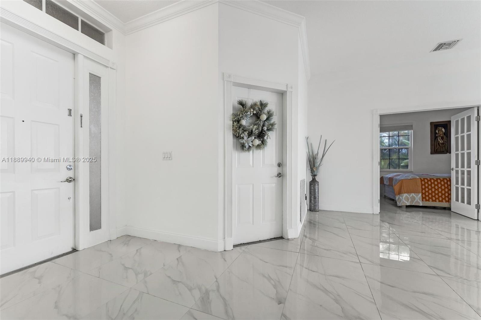Welcome to this stunning, 3-bed, 2-bath residence on an oversized lot in the prestigious, gated community of Riviera Isles. Tucked away on a cul-de-sac, this home offers privacy, elegance, and panoramic lake views. Includes a den perfect for a home office, guest suite or turn into a 4th bedroom. The spacious, fully fenced backyard with 133 linear feet of lake frontage offers ample room for a pool, outdoor kitchen, or even a cabana house.