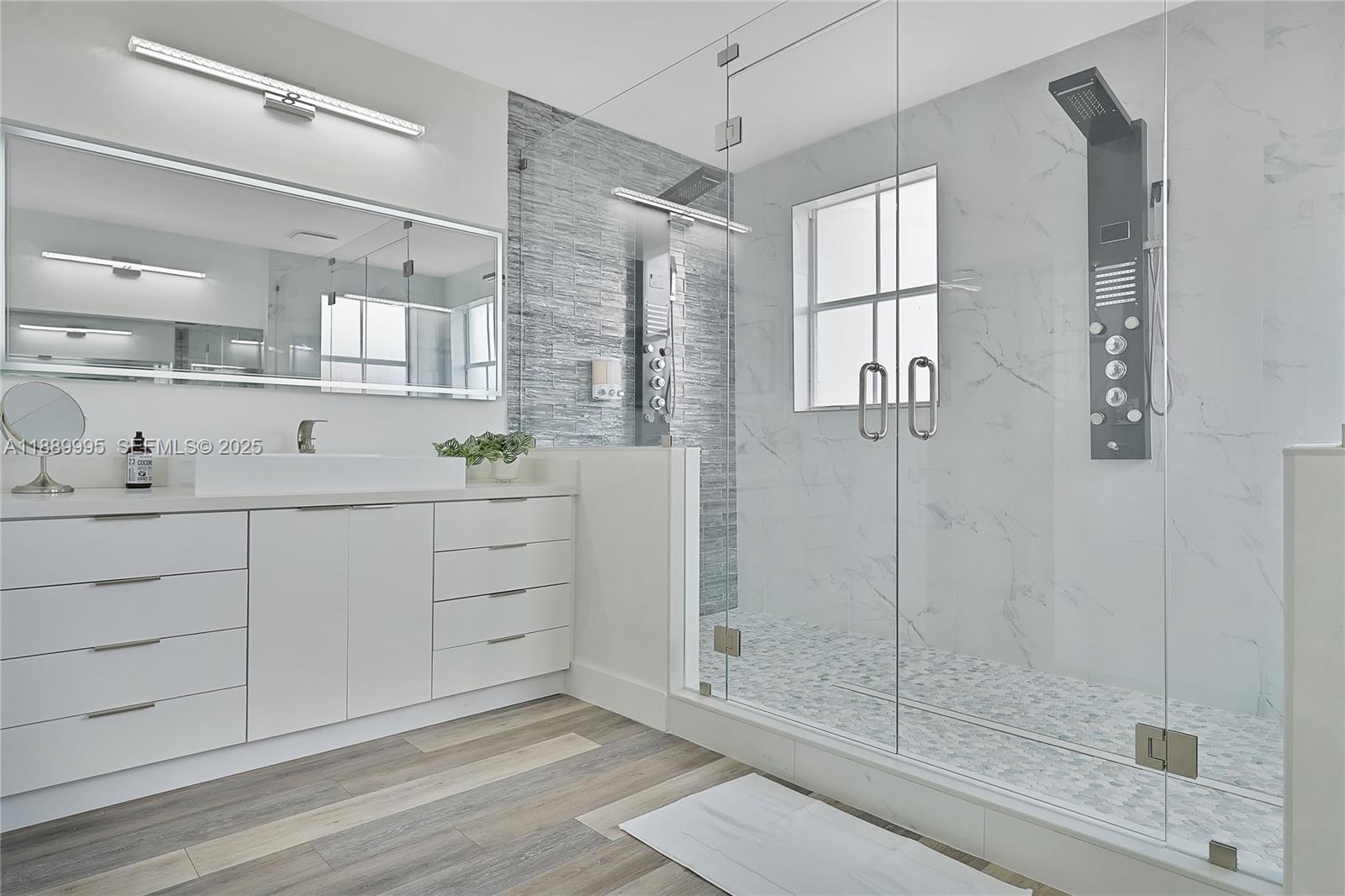 Exquisite 5-bedroom, 5-bath home with a spacious open-concept living area filled with natural light. Gourmet chef’s kitchen features stainless steel appliances, abundant cabinet space, and a large eat-in island. The primary suite offers a private balcony, and the spa-like primary bathroom includes a dual-head shower. Additional highlights include a two-car garage, laundry room, and ample parking. The backyard oasis features a sparkling saltwater heated pool.Ideally located near major highways, shopping, and dining. No HOA—move-in ready luxury residence.