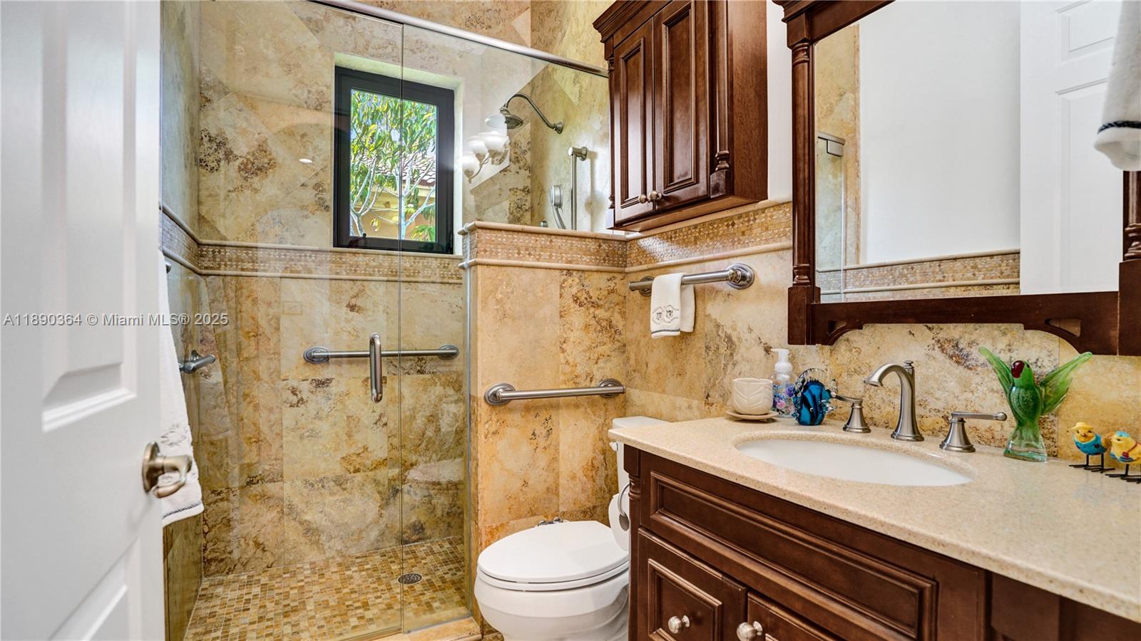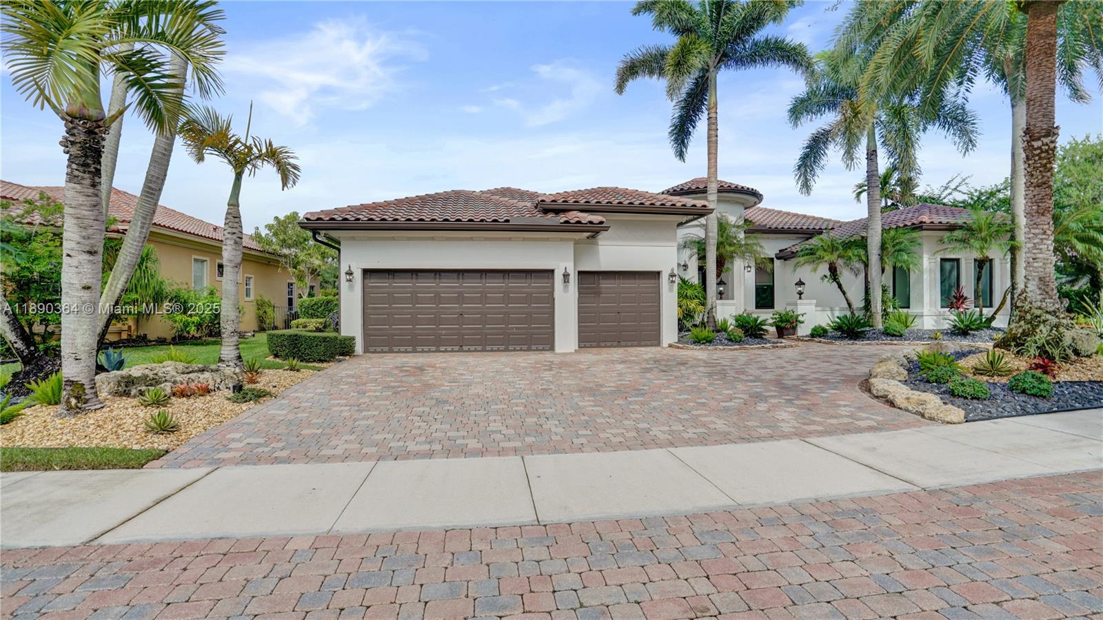 This single-level 6 bedroom, 4 bathroom house offers impressive features: volume ceilings & wood grain tile floors throughout, complemented by luxurious marble floors. The property features a new roof and new impact windows & doors. The paver driveway leads to the tranquil lakefront setting & large pool with a waterfall. Outdoor living is enhanced by the built in BBQ grill and inlaid tile counter & table for al fresco entertaining.The primary bedroom suite is a true retreat, with sitting area, a spa-like bathroom & walk-in closets. The home also includes in-law quarters, catering to multi-generational living. The kitchen is equipped with LG appliances, including a beverage refrigerator, ensuring convenience and functionality. The 3 car with golf cart garage provides ample storage.