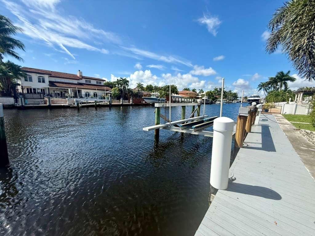 Lowest priced deep water/pool home listing in east Fort Lauderdale. Bermuda Riviera is the ideal community with semi-private gated entry and walking distance to the Beach and shopping. This home is located on an extra wide canal and on a very private street with 85' of waterfront and a 12,000 lb. remote control boat lift on a full length newer dock. with a split bedroom plan, separate family room, an open updated kitchen with granite counters, newer A/C and a large 2-car garage, this is a good family home with Bayview Elementary School as a great addition. This is very easy to show