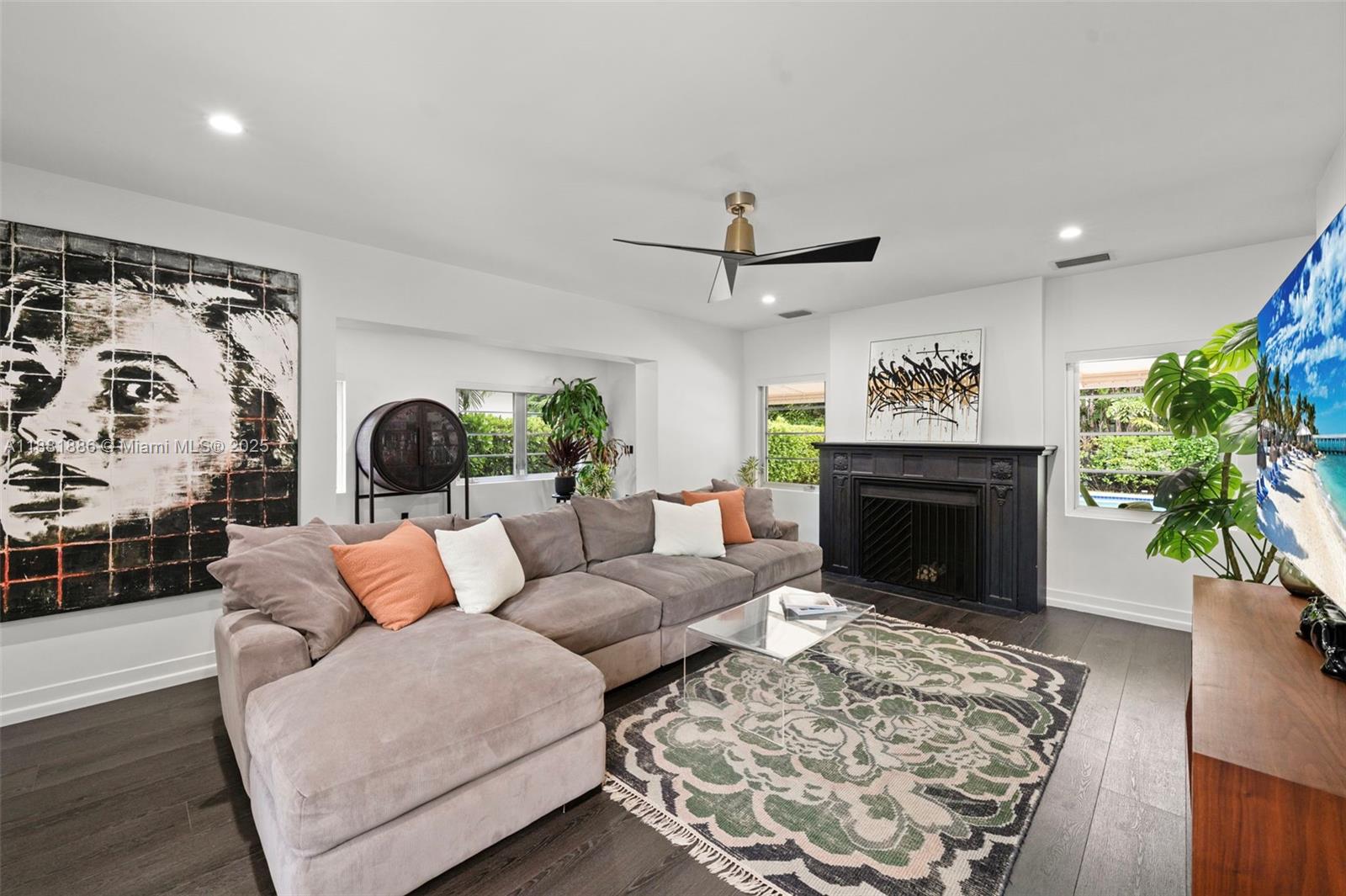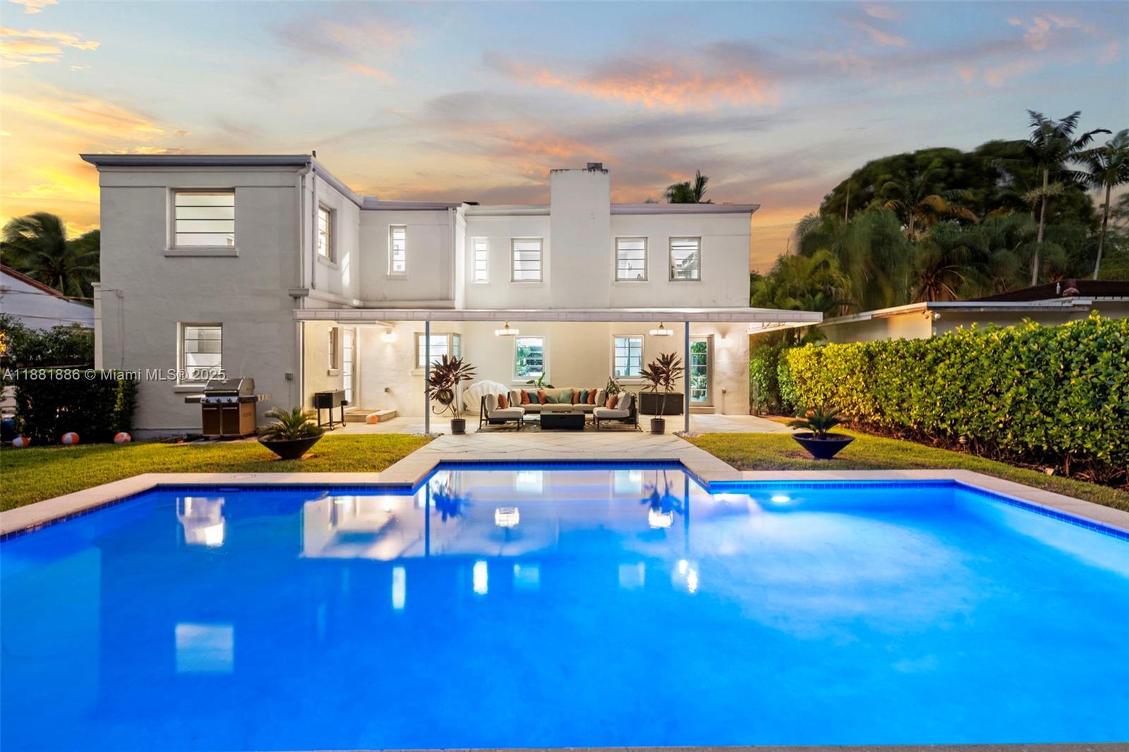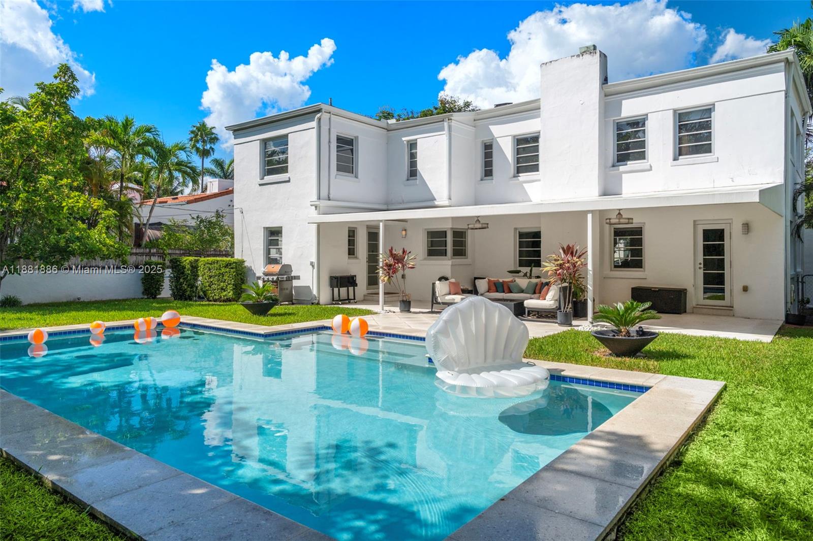 Remarkably renovated immaculate Art Deco home in the heart of one of Miami’s best neighborhoods, guard-gated Morningside. Original character meets contemporary living w/ family friendly flow-through floor plan featuring renovated eat-in kitchen, separate laundry & 3 bedrooms all upstairs. Spacious & bright primary suite offers convertible office space / den / nursery & access to oversized terrace. Enjoy new floors, new front door, & all impact glass throughout w/ gorgeous fireplace adorning the living room, hedge-lined backyard, oversized heated pool, covered patio & 2-car garage. Located on one of the best streets in Morningside, just a block away from Biscayne Bay & Morningside Park - 40+ acres of green space w/ boat ramp, tennis & basketball courts, playground & stunning bay views.