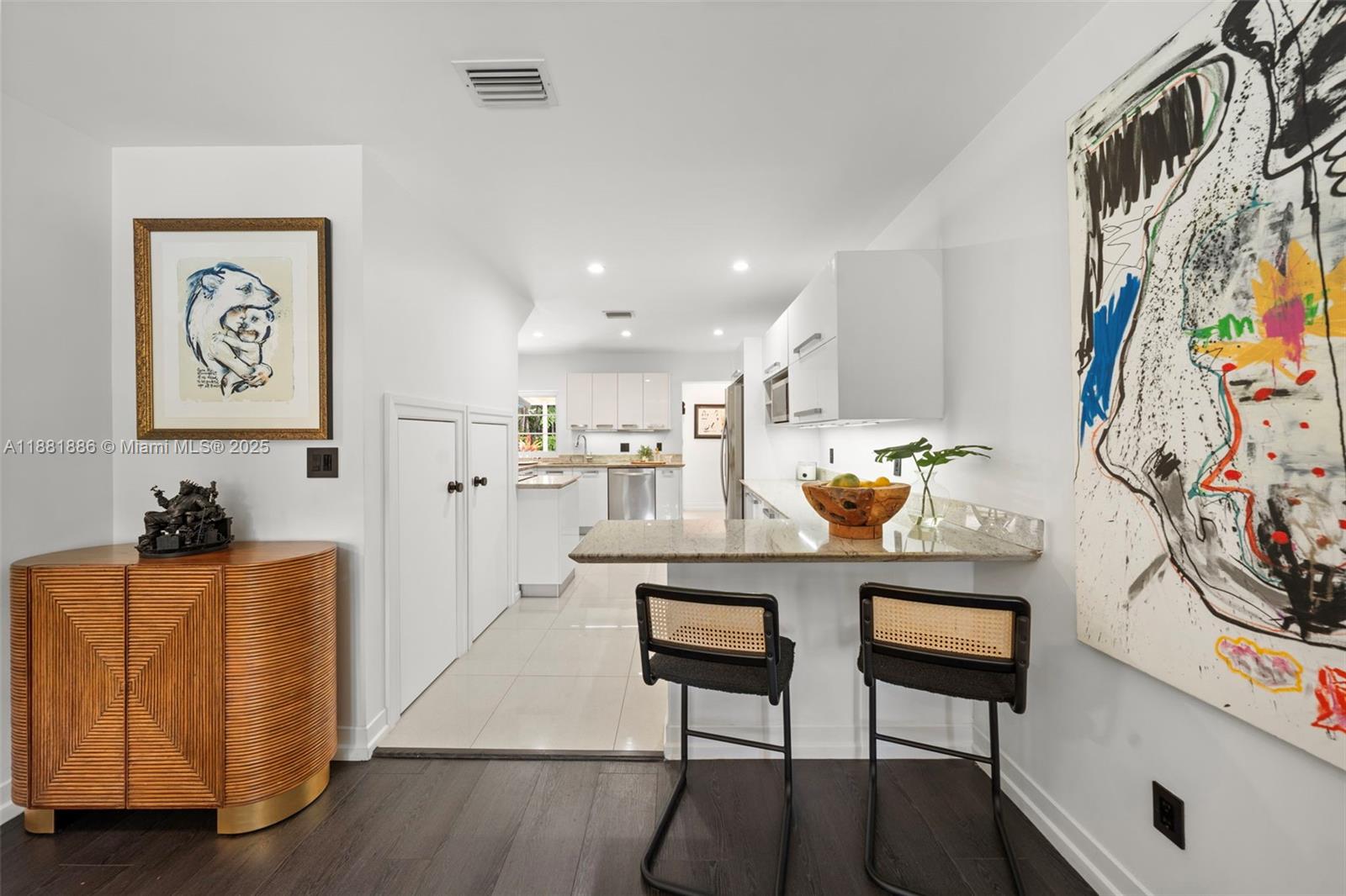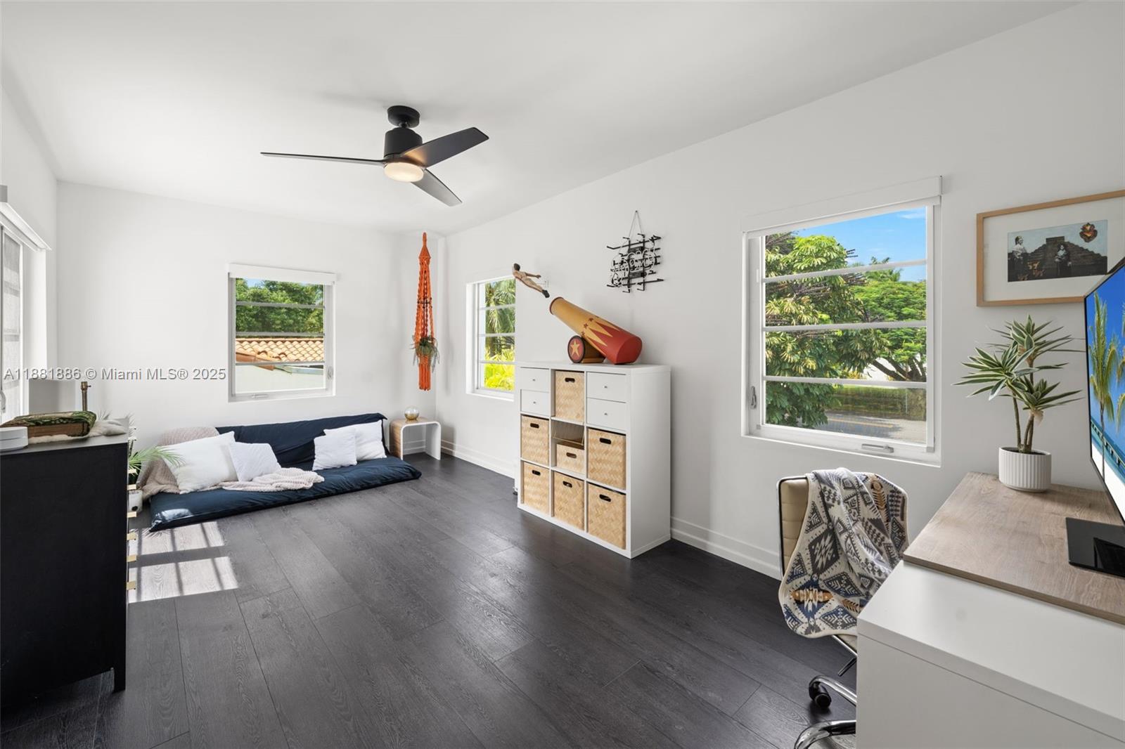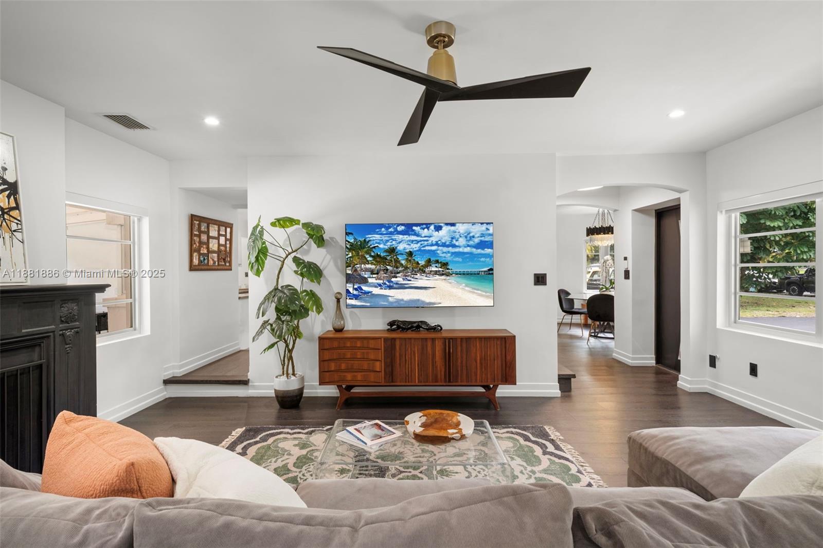 Remarkably renovated immaculate Art Deco home in the heart of one of Miami’s best neighborhoods, guard-gated Morningside. Original character meets contemporary living w/ family friendly flow-through floor plan featuring renovated eat-in kitchen, separate laundry & 3 bedrooms all upstairs. Spacious & bright primary suite offers convertible office space / den / nursery & access to oversized terrace. Enjoy new floors, new front door, & all impact glass throughout w/ gorgeous fireplace adorning the living room, hedge-lined backyard, oversized heated pool, covered patio & 2-car garage. Located on one of the best streets in Morningside, just a block away from Biscayne Bay & Morningside Park - 40+ acres of green space w/ boat ramp, tennis & basketball courts, playground & stunning bay views.