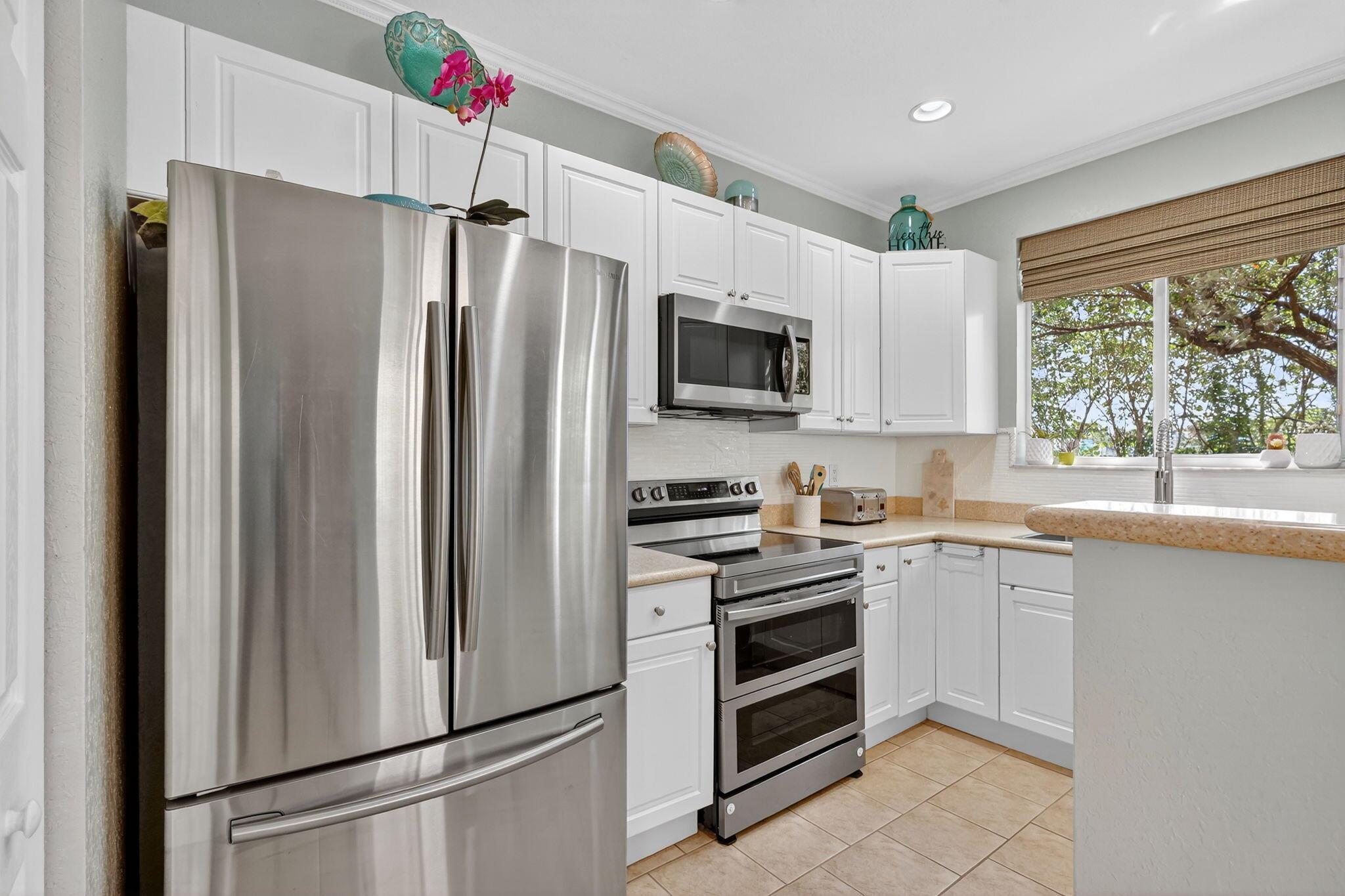 This clean and well-maintained townhome in the gated Villa Rosa community has been meticulously cared for and upgraded by its original owner. In addition to a newer A/C, stainless steel kitchen appliances and front-loading Maytag washer and dryer, this pristine residence also has a recently renovated primary bathroom complete with dual vessel sinks and walk-in rainfall shower with frameless glass enclosure. Relax at the community pool or on your private patio. Convenient location close to great shopping and food. Valuable HOA covers roof maintenance, pool, building insurance, lawn care, pest control and more. Schedule your private showing today and experience the comfort and upgrades this home can offer you!