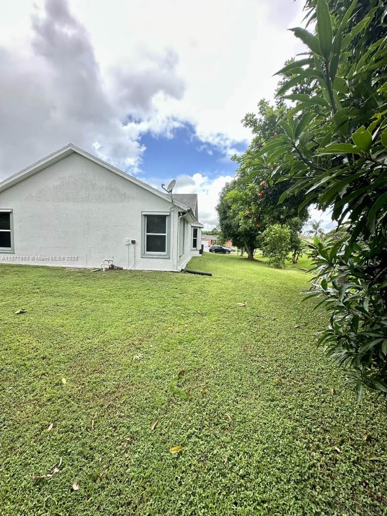 Welcome to this stunning one story custom home located in SE Port St Lucie. This elegant property offers a perfect blend of luxury, comfort, and sophisticated living. This home features a split floor plan with 3 bedrooms and 2.5 bathrooms, providing ample room for a growing family or for those who love to entertain. This well-designed floor plan includes a formal dining area, and a generous family room plus den, laundry room, 2 car garage with ample lighting & skylight. Step outside to tranquility with numerous fruit trees, herbs and a private lake. This home is an entertainer's dream come true, property is over 1/2 an acres with plenty of space for a pool or outdoor living. Offering a sense of privacy while still being a part of a vibrant community. Close to restaurants, etc.