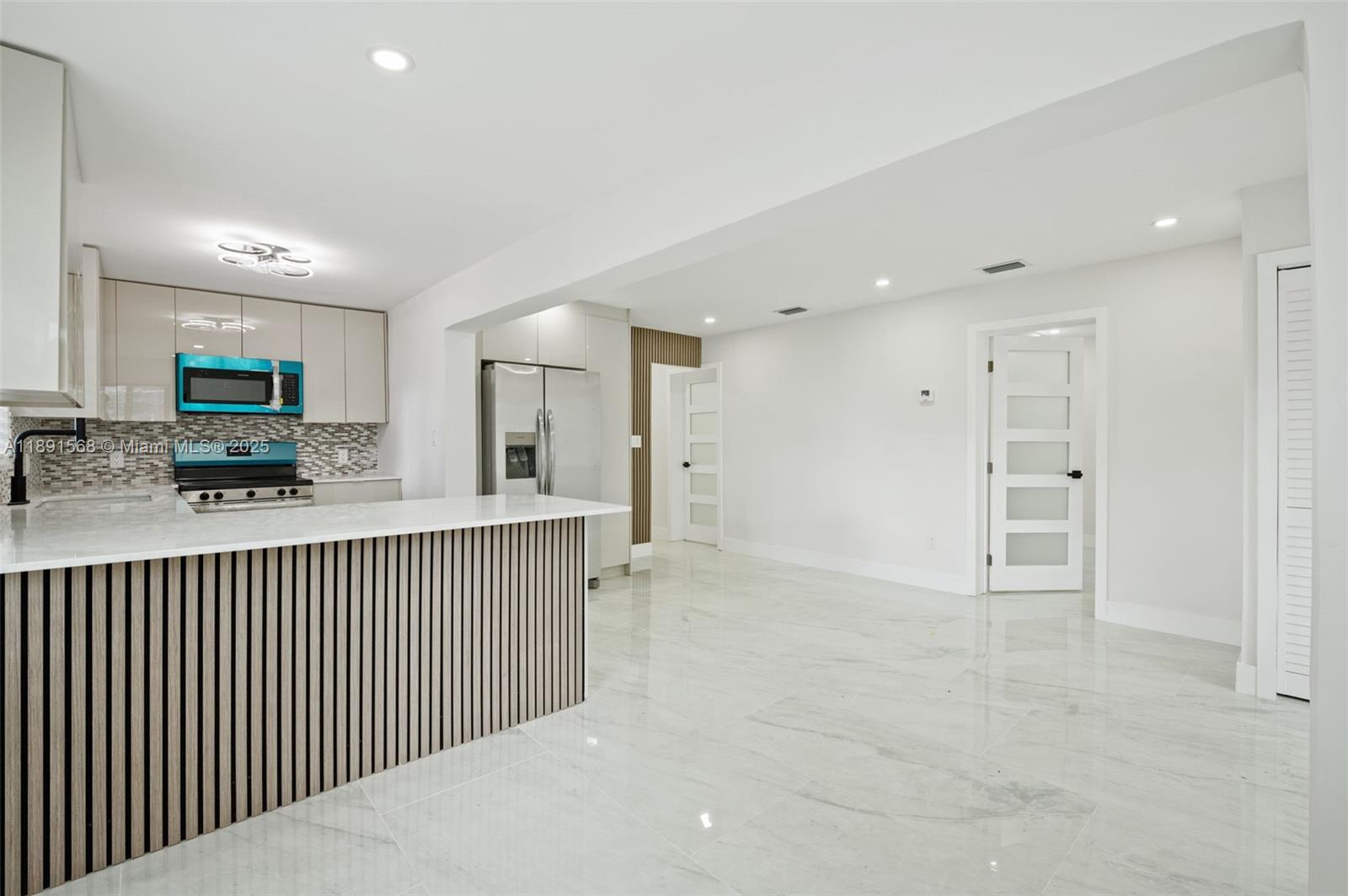 Spectacular newly remodeled cozy home with lots of features and HUGE lot of almost 16,000 sqf!!! Ready to move in and bring your toys like boat, RV, jet ski, etc. Make it your home or airbnb, close to the beach. 2025 roof, new A/C, impact windows, new European stile kitchen w/quartz countertops, SS appliances, new bathrooms, recessed lighting, tankless water heater, porcelain floors 48X24, designed doors with glass all-throughout, concrete area in backyard for pergola for parties and family gatherings.