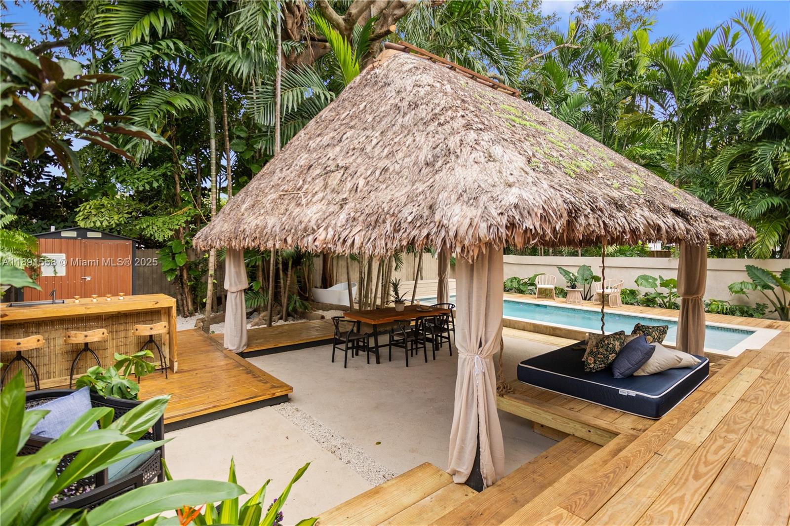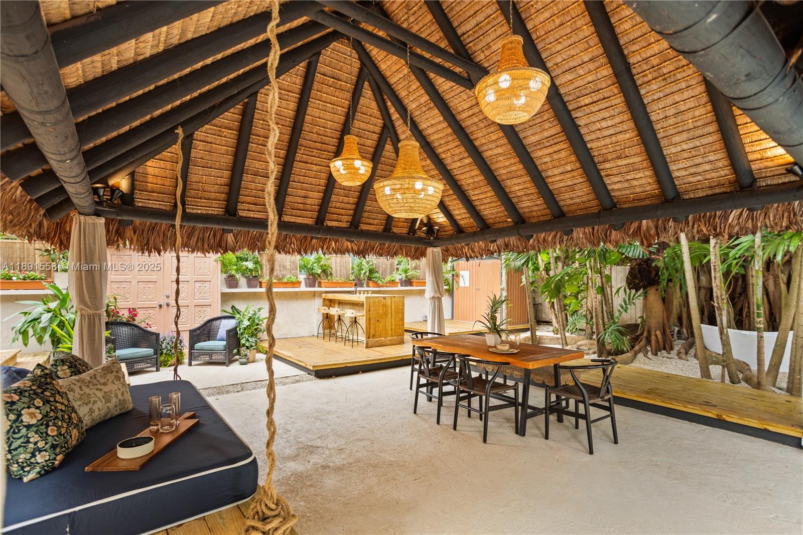 Escape the fast pace of Miami in this Bali-inspired tropical retreat located in Shorecrest, just minutes from Miami Shores and North Bayshore Park. Featuring a new pool with deck, in-ground jacuzzi, outdoor cold plunge & soaking tub under the palms, Tiki lounge area, and zoning for short-term rentals. This fully renovated 3-bed, 3-bath home features one suite with a private entrance and bathroom, plus a spacious den that can easily be converted into another bedroom. The property has all-new plumbing, electrical, ceilings, and walls, as well as impact doors and windows — all with closed permits. Enjoy low Miami-Dade taxes, serene outdoor spaces, and the perfect blend of design, comfort, and investment potential. Furniture and decoration shown in photos available separately.