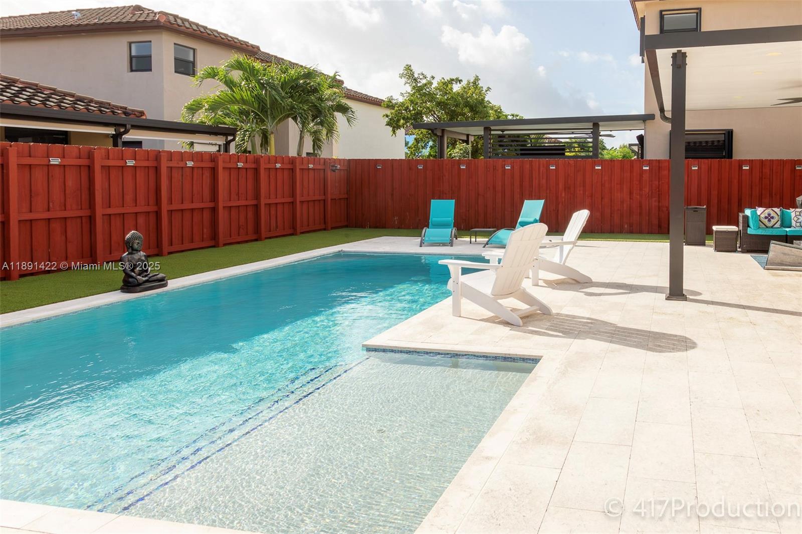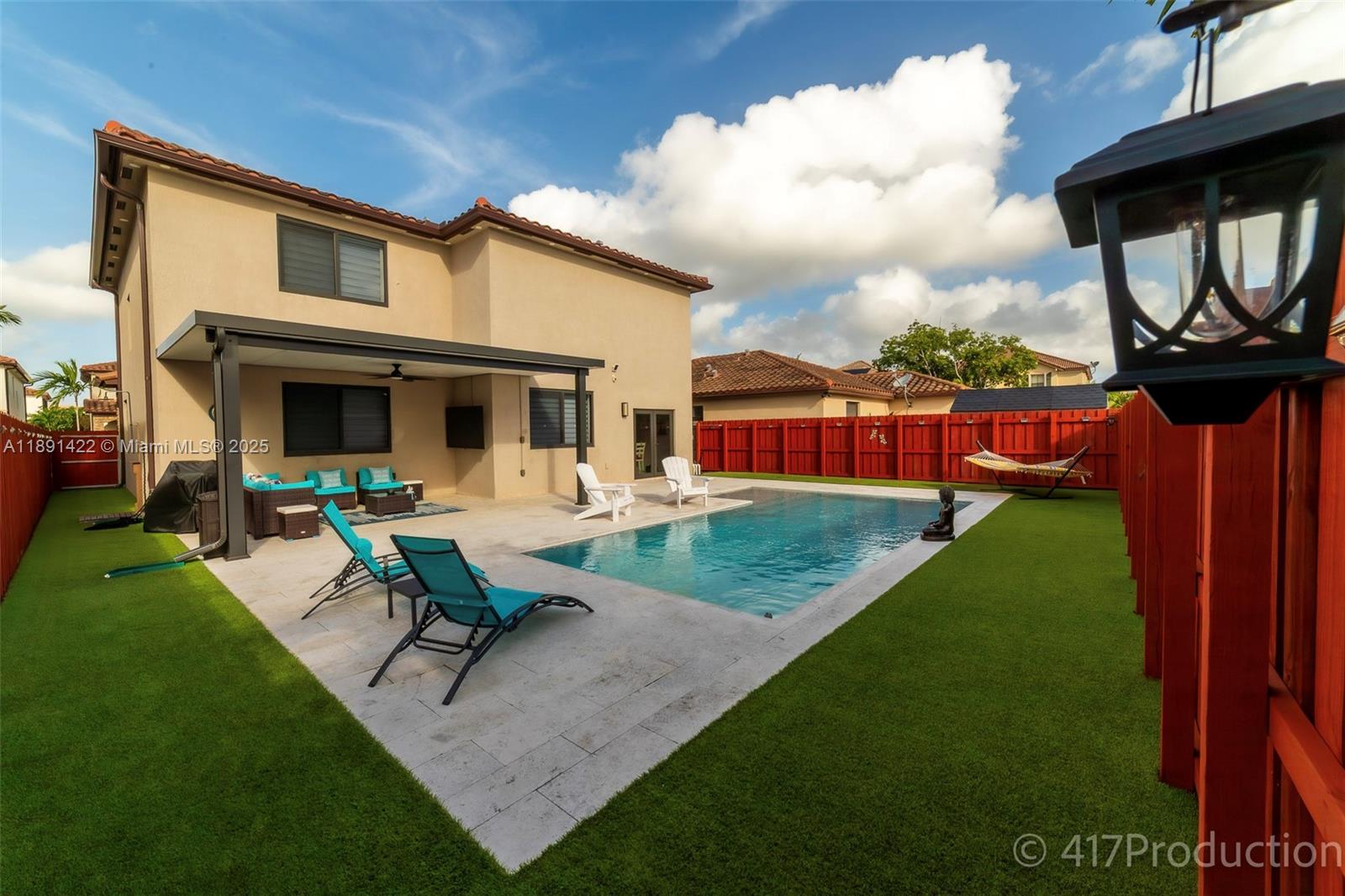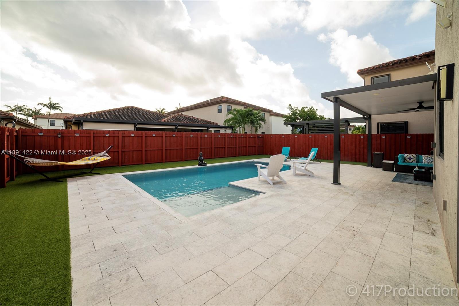 Property only 5 years old built in a quiet, central neighborhood WITHOUT ASSOCIATION!!! Double Garage plus a wide driveway where you won't have to worry about not having space to park. This property is meticulously maintained, you just have to arrive to live! Enjoy the spaciousness of each of its spaces, comfortable rooms with spacious closets! Two bathrooms upstairs and another 1/2 bathroom on the first floor for the comfort of your guests. Spacious kitchen with a large island for your comfort! Enjoy and relax in this beautiful patio with a newly built pool so you can relax in the comfort of your NEW HOME! The seller is willing to leave some items if the buyer is interested included in the same price.