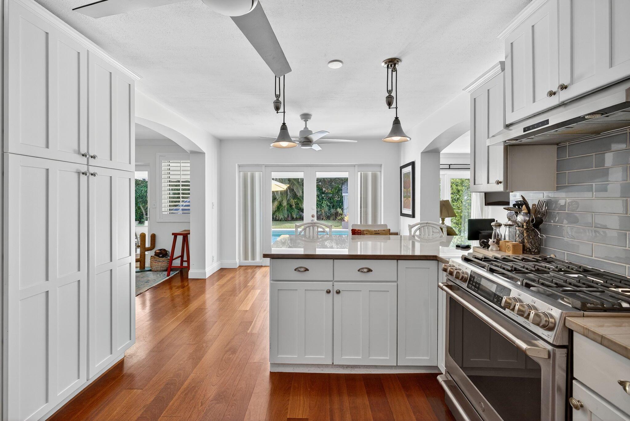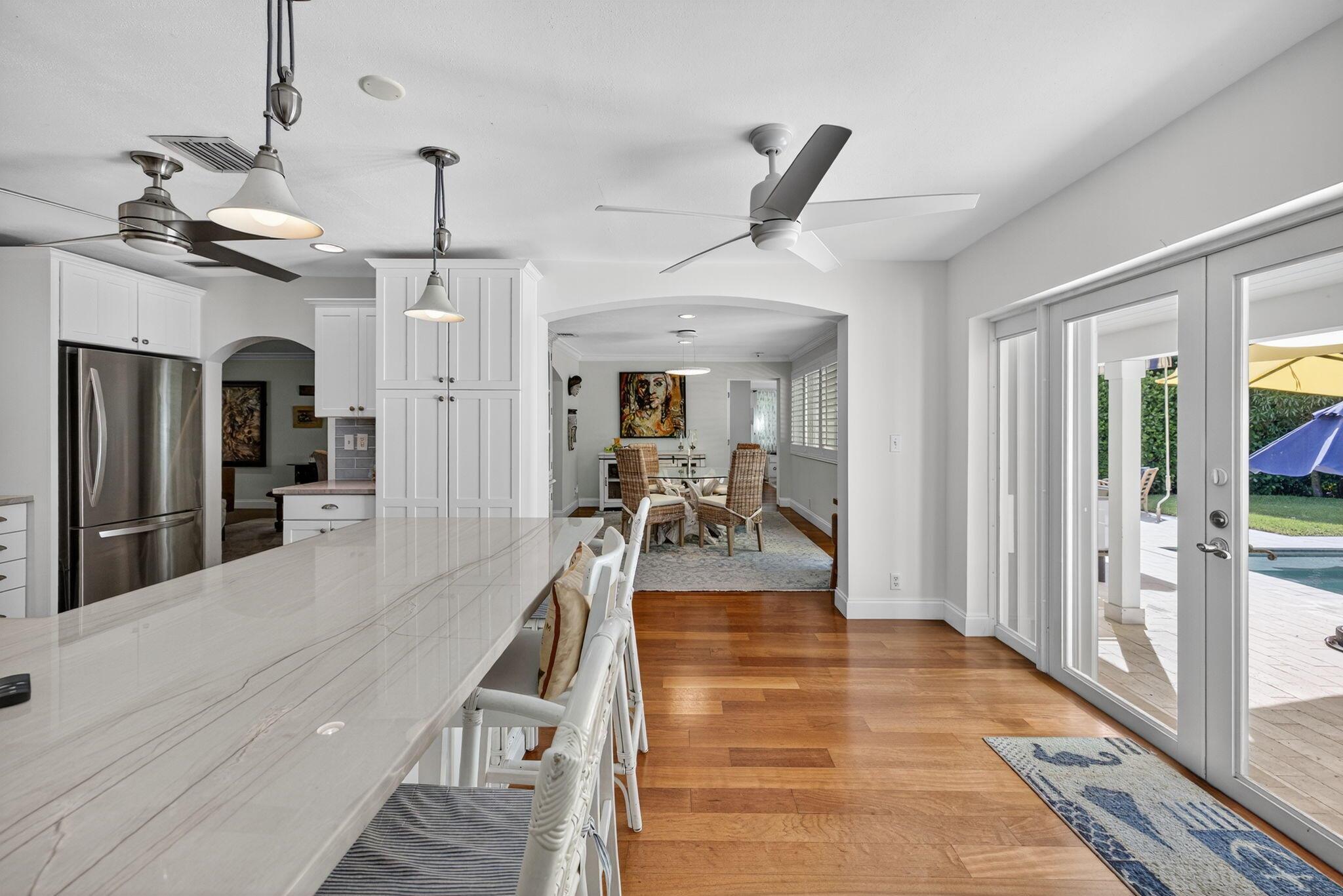 Welcome to this beautifully updated 4-bedroom pool home on Seacrest Circle, just a quick golf cart or bicycle ride from downtown Delray & the beach. As you enter, you're greeted with an abundance of natural light, open living space, beautiful arches & a view of your crystal blue pool and large private backyard oasis. Recent upgrades include updated plumbing & bathrooms, a whole-home water filtration system, and a new exterior awning adding shade and style. The home also features full impact glass protection. The kitchen overlooks the backyard and features stainlesssteel appliances and a gas stove. With 4 bedrooms and a den/ family room, this residence offers ample space to entertain or to simply relax.