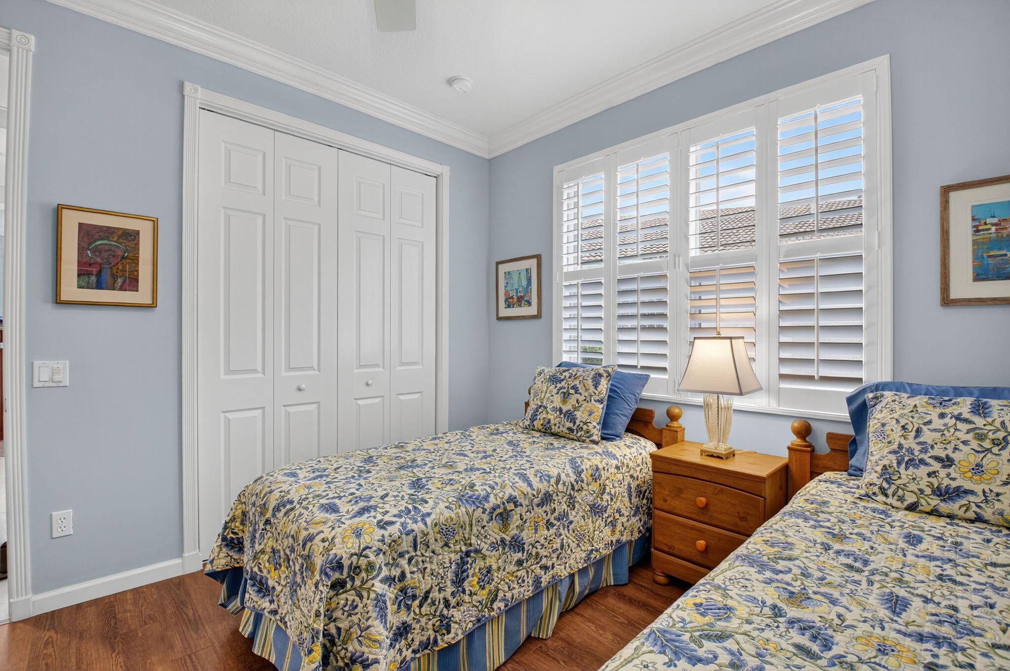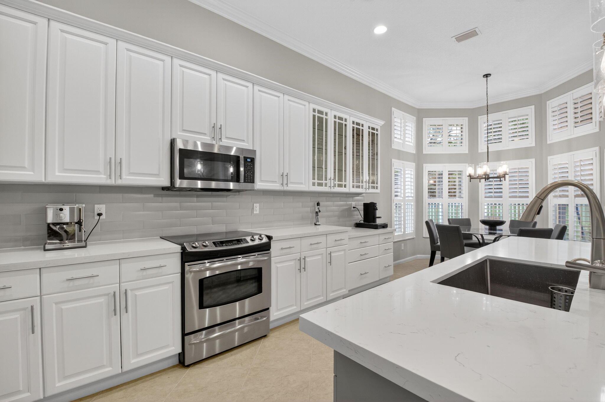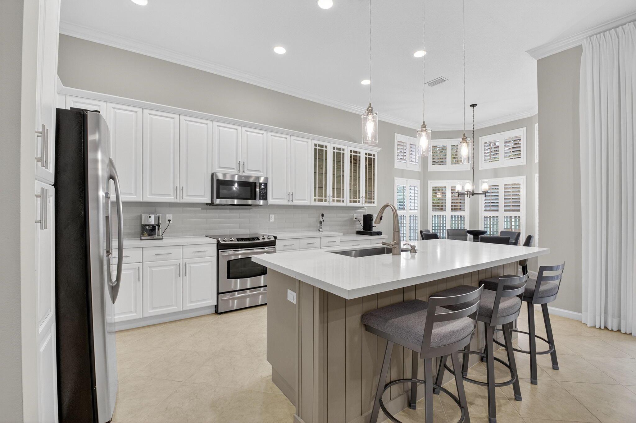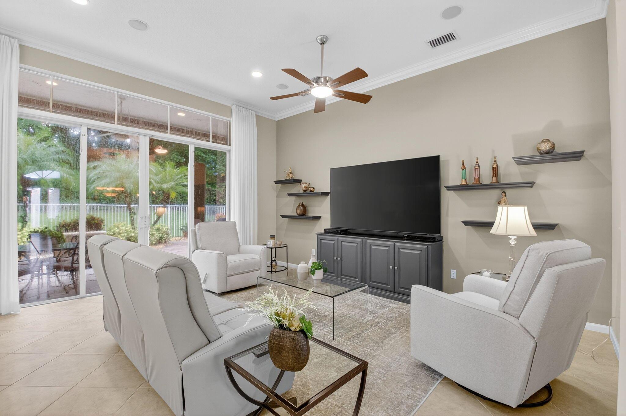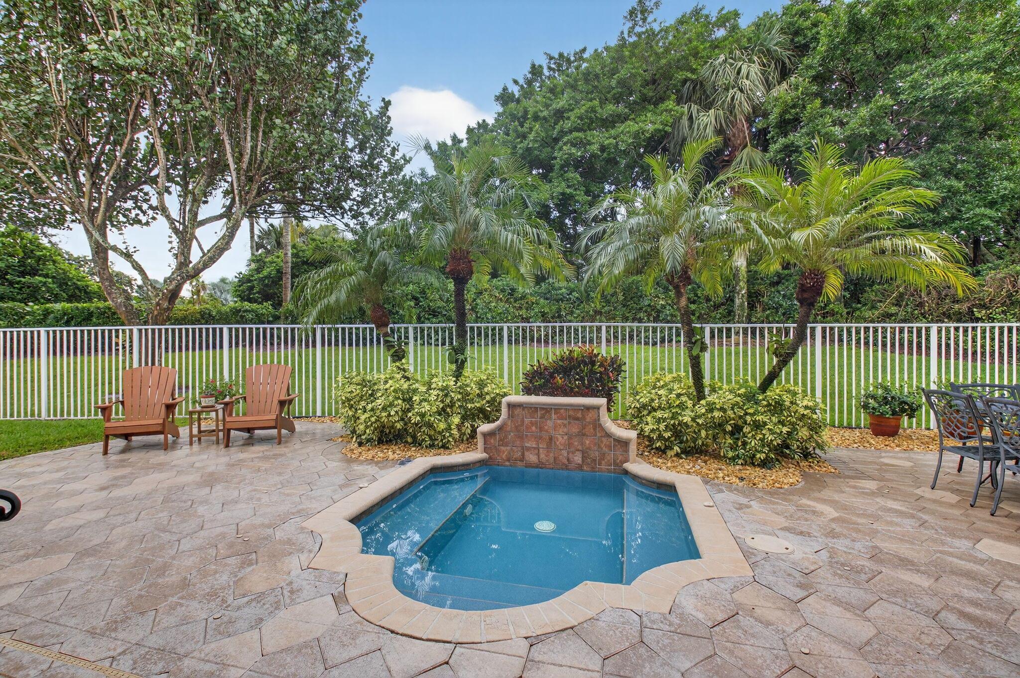 Fabulous updated 4BR/2.1BA Gibraltar model w/wall opening sits on oversized fenced in lot (8396 sq ft) w/room for a pool. Enjoy your private in-ground SPA with new heater & pump, plus 20' motorized retractable awning perfect for relaxing or entertaining. Contemporary kitchen w/quartz counters, updated island & pullouts in all cabinets, Both kitchen & baths shine with quartz finishes. Plantation shutters add timeless style. Additional highlights include custom closet systems for organized living, extended garage w/epoxy flooring, accordion shutters for all windows, . With its open, modern layout and luxurious touches, this home truly stands out--move-in ready! Enjoy resort-style clubhouse, cafe, fitness center, lap & resort pools, tennis, pickleball, bocce, billiards, social events & more.