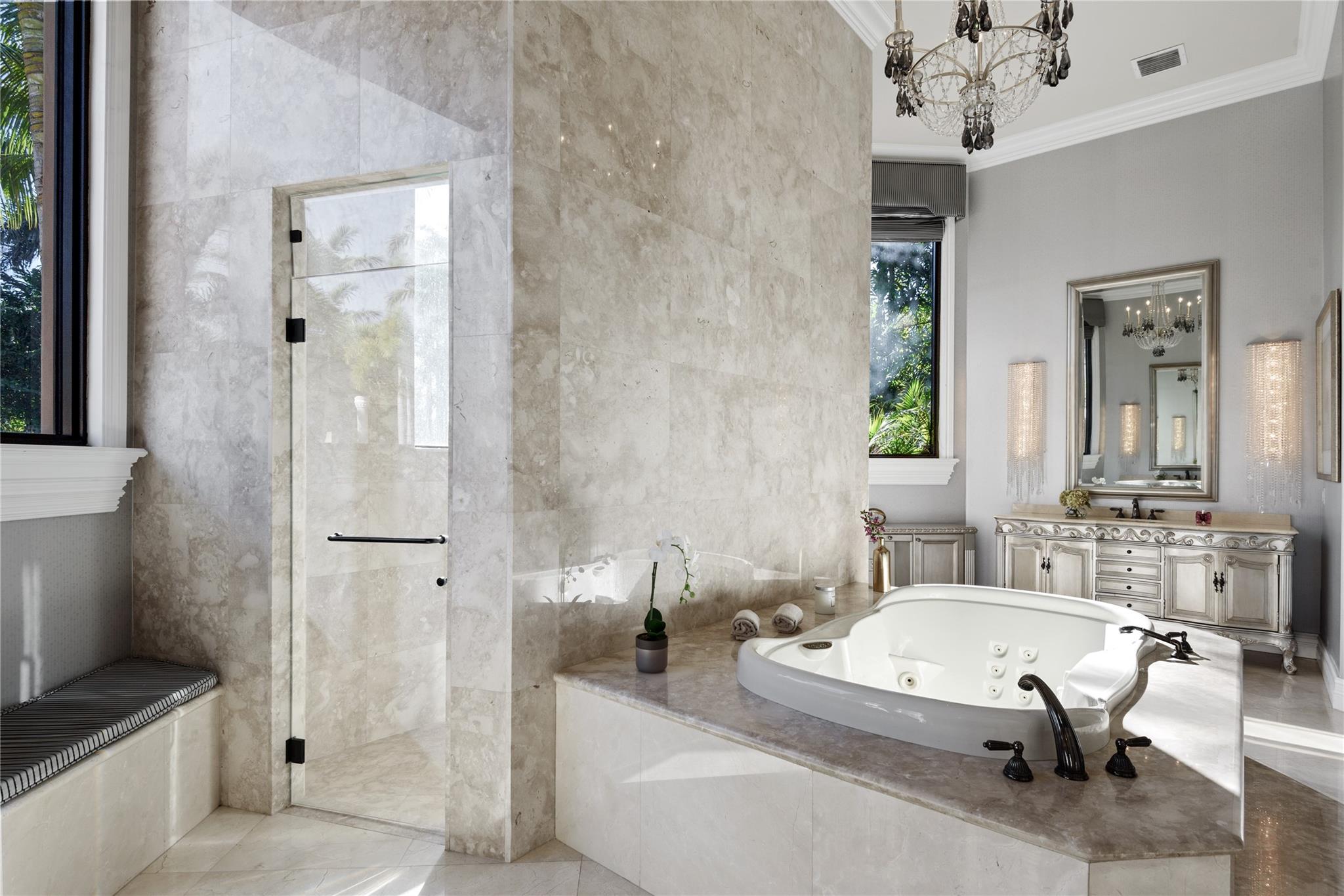 Experience grandeur and sophistication in this stunning estate within exclusive Landmark Ranch Estates. Set on 2.348 acres of meticulously landscaped grounds, the gated residence features a long private drive and resort-style pool. Perfect for entertaining, it offers a covered summer kitchen, expansive patio, soundproof theater, custom bar, sound system, two offices, and a separate 2-bedroom guest house. Car enthusiasts will love the porte-cochere and 9-car garage. The luxurious primary suite boasts a custom one-of-a-kind closet, sitting area, bonus room, and spa-inspired bath. The chef’s kitchen includes 4 ovens, 6-burner gas range, dual dishwashers, and walk-in pantry. The main house offers 4 bedrooms and 5.5 baths. New roof (2023), impact glass, and generator.