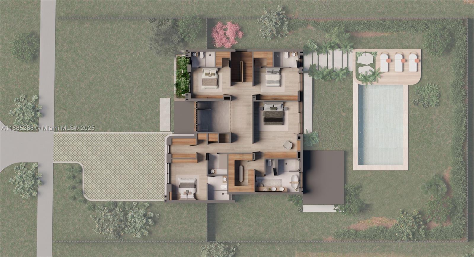 COMPLETION DECEMBER 2025. Stunning new construction 5-bed, 6-bath home with 3,904 SF of living space. Built with concrete block construction, 9' ceilings on both floors, and high-impact windows. Features a gourmet Italian kitchen with Pompei Quartz countertops and backsplash, SubZero/Wolf appliances, 24"x48" porcelain tile, and refined finishes throughout. All bedrooms include en-suite baths and a luxurious master suite. Enjoy a covered terrace, 44” Bull summer kitchen, outdoor shower, and sleek 8.5’ x 31’ pool ideal for entertaining. Minutes from Coral Gables, Coconut Grove, Brickell & major highways.