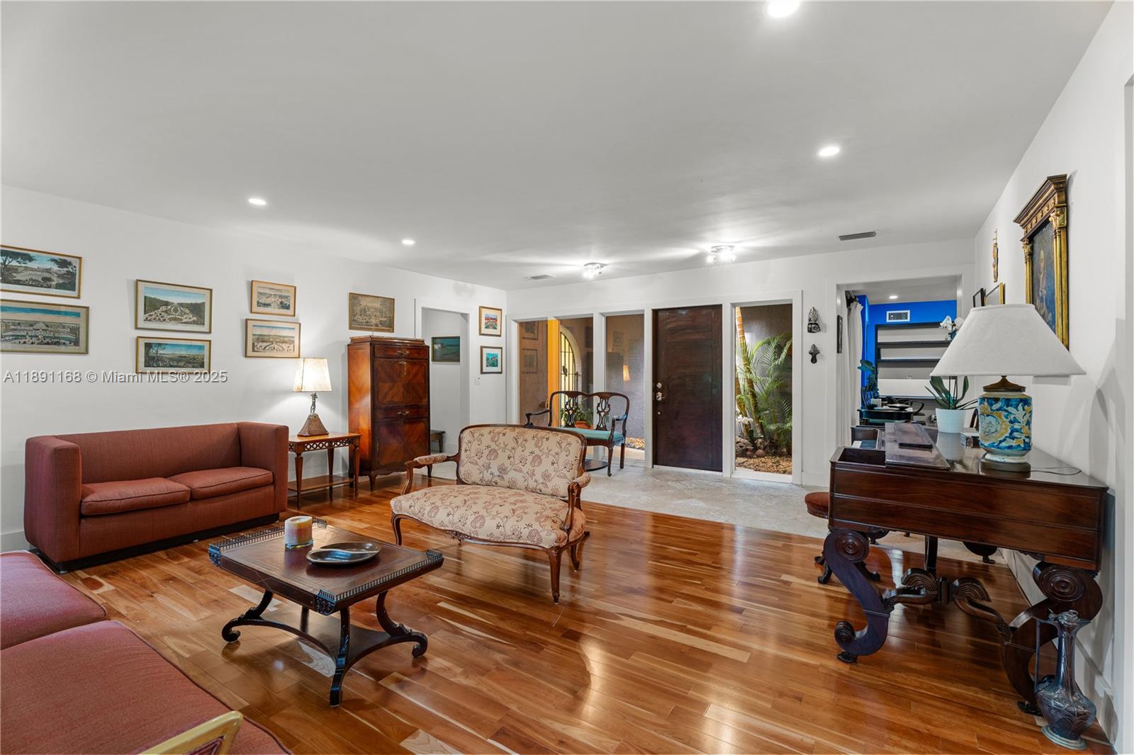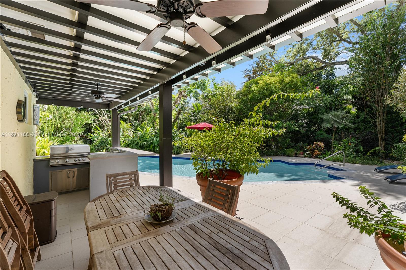 Set in one of the most desirable locations on a 17,700 sq. ft. lot, this home is surrounded by lush tropical landscaping, creating a private sanctuary moments from top schools and city conveniences. The single-story residence features a thoughtful 4/3 layout designed for comfort and ease of living with wonderful formal & informal living areas, a spacious separate guest suite & a large primary suite. Outdoor spaces inspire refined entertaining with a peaceful screened Fla room, a covered terrace with BBQ-bar & a sparkling pool framed by mature foliage. A 2-c garage offers abundant storage. Whether hosting under the stars, enjoying a quiet evening or relaxing poolside, this retreat delivers both vibrancy and tranquility, inviting you to enhance, expand, or simply enjoy its timeless appeal.