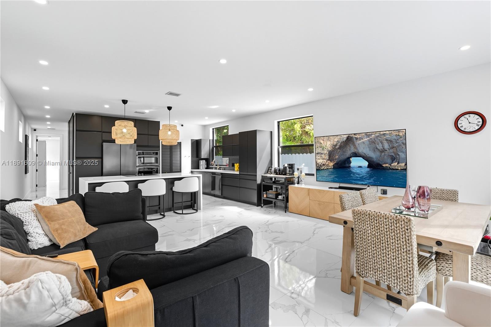 Exceptional new-construction modern home just minutes from Coral Way, Brickell, and Coconut Grove. This 4-bedroom, 4.5-bath residence perfectly blends elegance, comfort, and functionality. The main level features an open living and dining area flowing into a designer kitchen with custom cabinetry, premium appliances, and a large island. A private guest suite with its own entrance and a stylish half bath complete the first floor. Upstairs, three spacious bedroom suites include custom closets and private baths, while the primary suite offers a spa-inspired bathroom and walk-in closet with built-ins. Additional highlights include impact windows and doors, a 240V car charger, and a signed pool project with transferable credits.