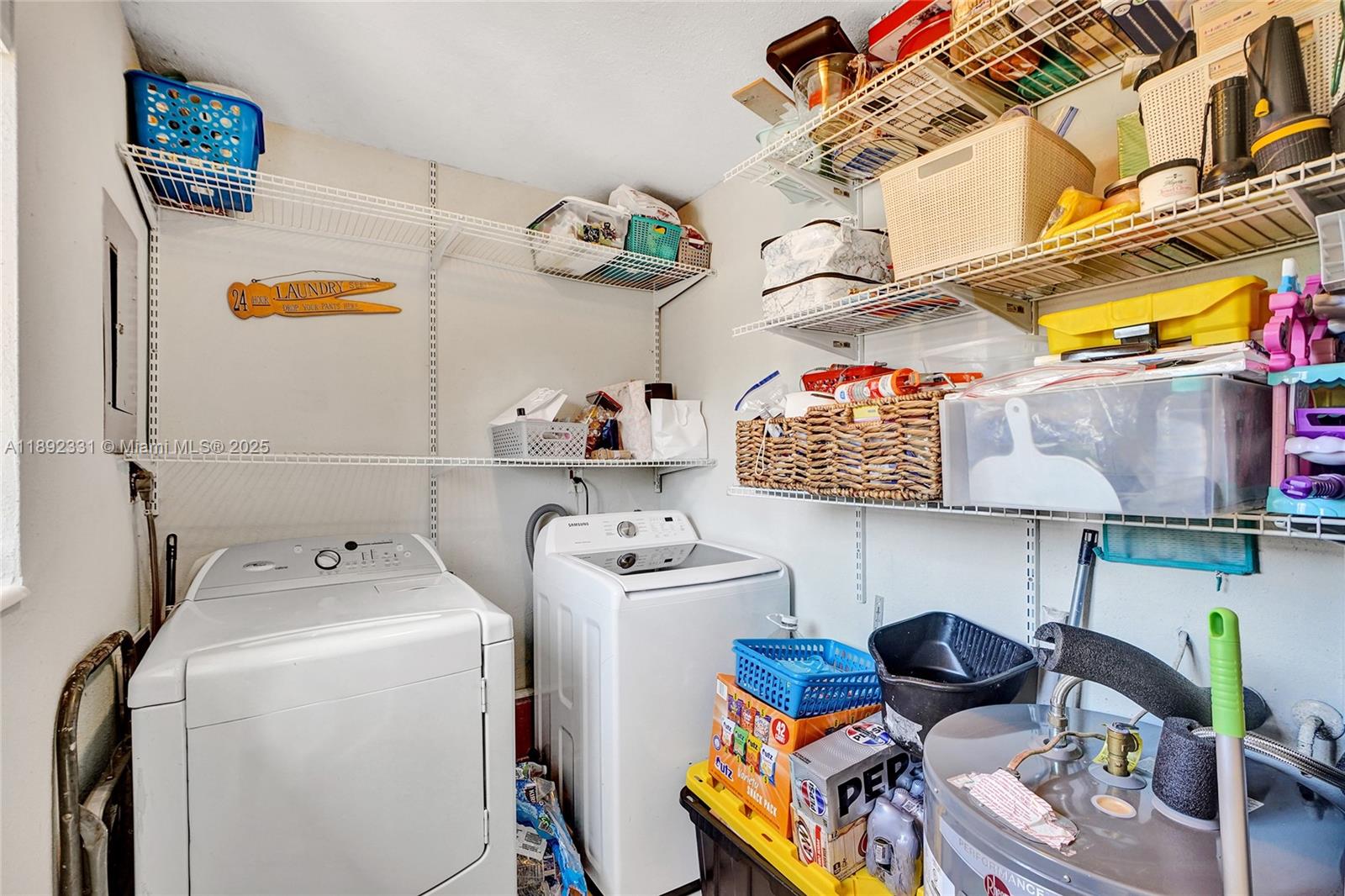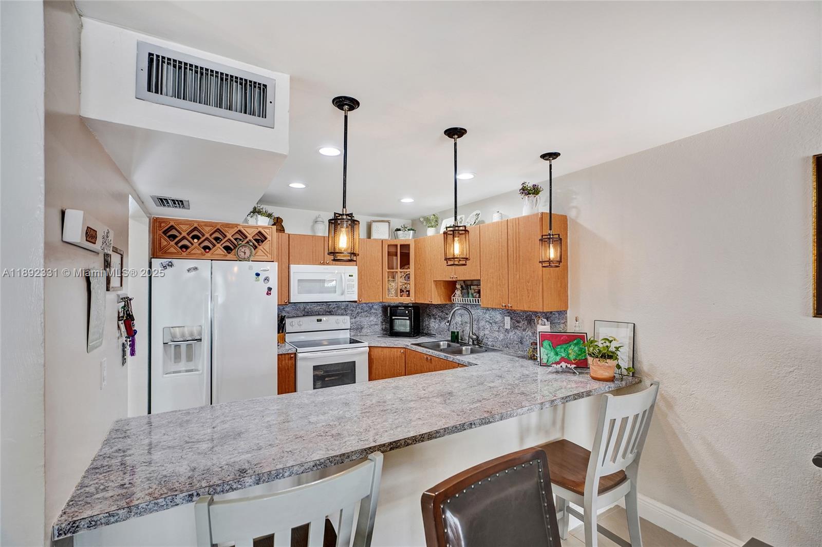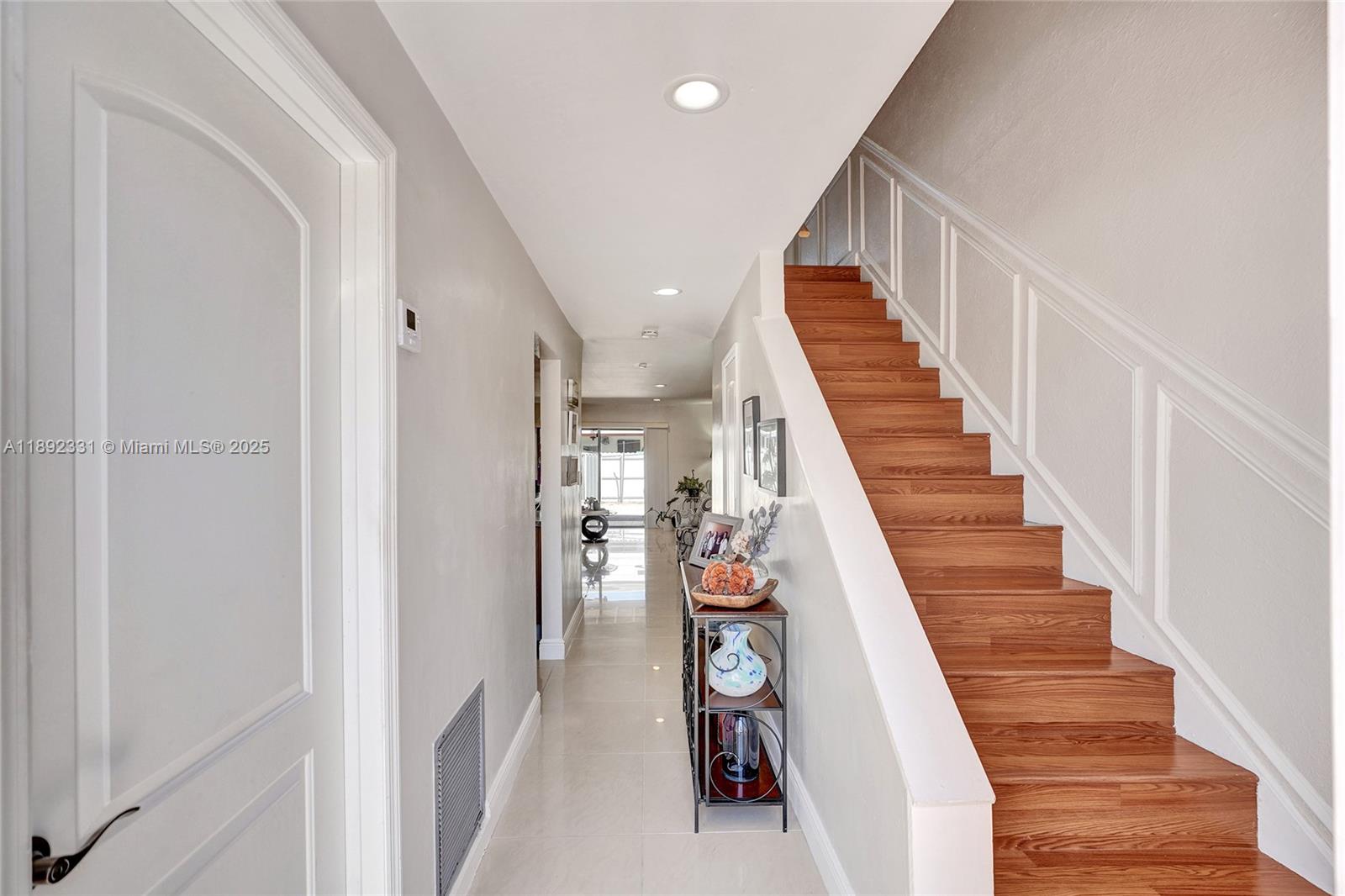 Elegant 2/2.5 townhouse in highly desirable West Hialeah, with NO HOA!! This beautifully maintained 2-story residence features 1,408sqft with 2 spacious bedrooms - both with private ensuite bathrooms - and tons of closet space! Porcelain tile floors on the ground level and modern laminate throughout the second floor. Open kitchen with breakfast counter overlooking livingroom / dining area for easy entertainment! Convenient half bath and dedicated laundry room located on the first floor. Private & fenced back yard, dedicated parking for 2 cars and accordion hurricane shutters throughout the property. New roof in 2020 + new A/C in 2021. Centrally located near shopping & dining, plus easy access to major expressways! Amazing value, move-in ready, will not last!!